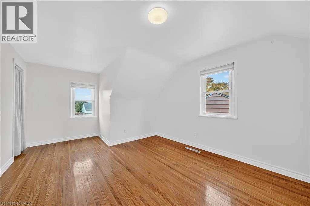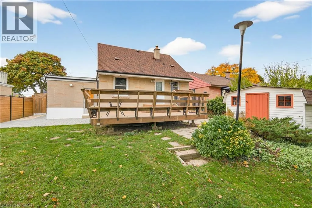 Upper Gage Ave. to Mohawk Rd. E to East 36th St. Welcome to this charming 1.5-storey home nestled on a quiet, tree-lined street in the highly sought-after Macassa neighbourhood. Full of warmth and character, this inviting home sits on a beautiful 50 x 150 ft lot surrounded by greenery, offering space and serenity in the heart of the Hamilton Mountain. The bright main floor features a separate dining room, cozy living room, 4-piece bath, and a kitchen with stainless steel appliances. Upstairs, you'll find two generous bedrooms with charming nooks, while the fully finished basement adds even more living space with a rec room, office, 3-piece bath, and laundry. Step outside to enjoy the large two-tier deck, lush yard, and powered shed, perfect for relaxing or entertaining. With an attached garage, parking for four cars, and a location just minutes from the LINC, Limeridge Mall, great schools, and steps from Macassa Park, this move-in-ready home is ready to welcome its next family. (id:27476)