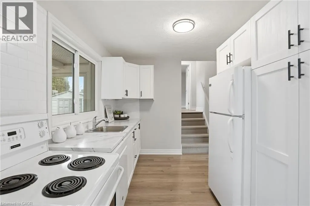 Mohawk Rd E to Lawfield Dr to Coral Dr Turn-key, newly updated home in prime Central Mountain location! This bright & beautiful home was lovingly maintained by its original owner for 63yrs & has now been professionally renovated from top to bottom, a true gem ready for its next chapter. The main level features a sun-filled living room w/ cozy gas fireplace, dining area with walk-out to a tranquil & inviting 3 season sunroom & brand-new kitchen showcasing modern finishes & thoughtful design. Upstairs, youâll find three spacious bedrooms & updated 4pc bath. A separate rear entrance to the lower level offers excellent flexibility & future potential. The fully renovated lower level includes a large rec room, laundry, utility room & ample crawl space storage. Major renovations completed in 2025 include all new flooring, baseboards, trim, interior doors, lighting, kitchen, bathroom, fully stripped & refinished basement rec room & updated electrical. Additional notable updates include roof (2021), windows (approx. 9yrs), furnace / A/C (approx. 9yrs), professional waterproofing (2013) &updated sunroom (2024). Situated on a generous 60 x 97 ft lot, the property features a double-wide aggregate driveway accommodating 4+ vehicles, inground sprinkler system & private fenced yard perfect for relaxing or entertaining. Located in a family-friendly neighbourhood close to shopping, schools, rec centres, transit & minutes to highway access, this home offers exceptional value, comfort & convenience. (id:27476)