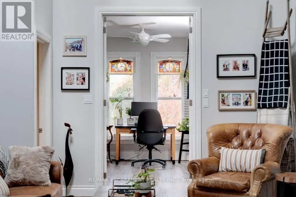 Main St W to Queen St S to Homewood Ave Tucked along a tree-lined street in Hamilton's beloved Kirkendall neighbourhood, this stately legal duplex tells a story of character, versatility, & opportunity. Behind its charming façade lies over 2,500 square feet of living area, thoughtfully separated into three distinct suites that adapt as life does. On the main level, a self-contained one-bedroom apartment at the rear and a dedicated home office at the front create endless possibilities. The recently renovated apartment offers a private space for parents or a tenant who wants a true home feeling. The office provides the perfect setup for professionals seeking a separate, client-ready workspace - ideal for a therapist, doctor, hair stylist, or lawyer who wants the convenience of working from home without sacrificing privacy. On the upper levels, natural light pours in through skylights and stained-glass windows, highlighting 18-foot ceilings, historic woodwork, and a wrap-around covered balcony made with Trex decking - a peaceful escape in the middle of the city. With two bedrooms, a loft, and two full bathrooms upstairs, it's a bright, welcoming home with timeless charm. Outside, the yard continues the character of the home with water features, a stained-glass art piece, and a restored church pew, creating a one-of-a-kind setting for entertaining or relaxing under the trees. Whether you're hosting friends or enjoying a morning coffee surrounded by art and greenery, this backyard is made for connection and celebration. Behind the charm lies confidence in the updates - a metal roof (2019), all-new windows (2023), high-end appliances, and independent heating and cooling systems for each level, ensuring comfort and efficiency year-round. Set in one of Hamilton's most sought-after neighbourhoods, steps to Locke Street's cafés, boutiques, and parks, 7 Homewood Ave is more than a home - it's a lifestyle, a workspace, and an investment in one of the city's most vibrant communities. RSA. (id:27476)