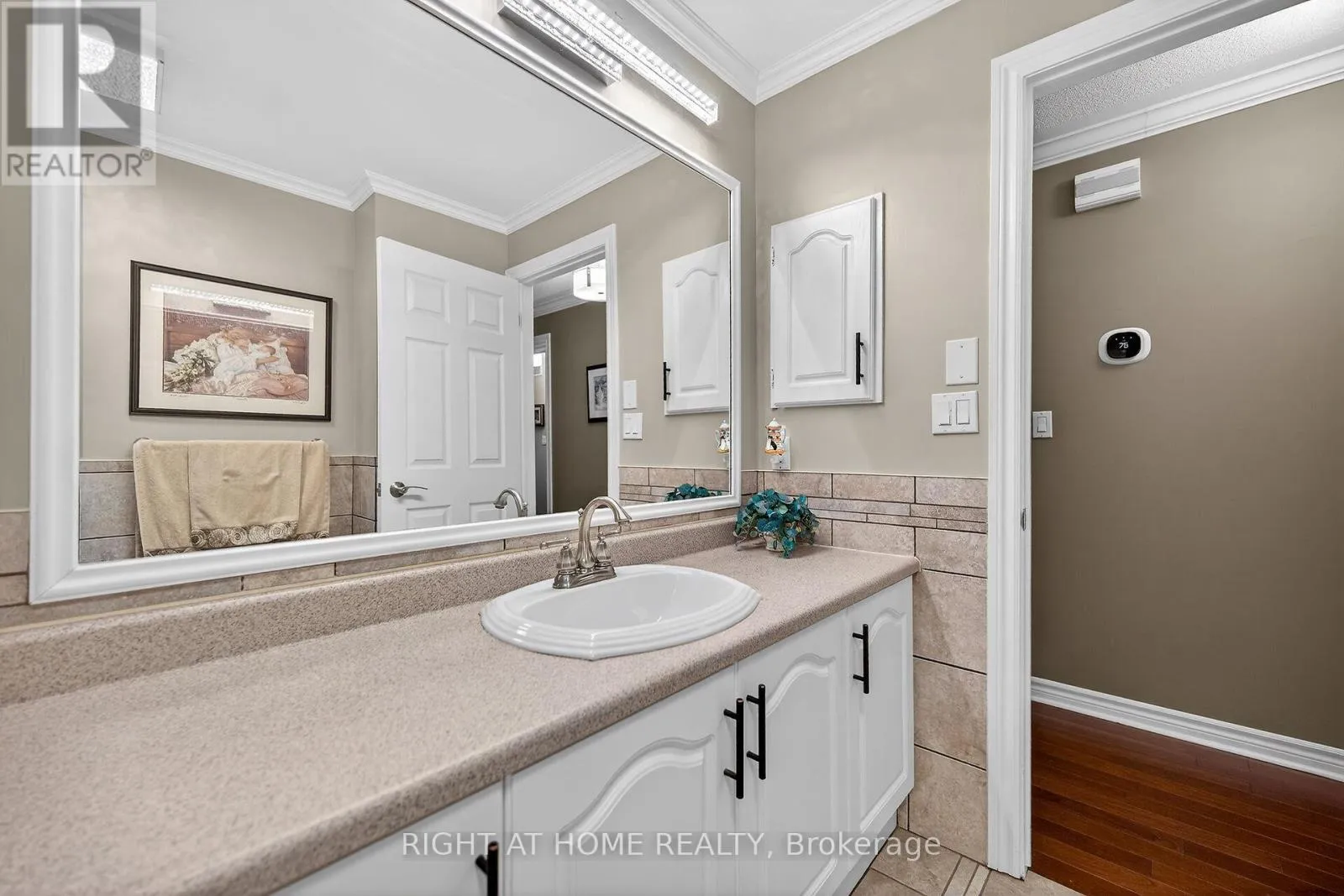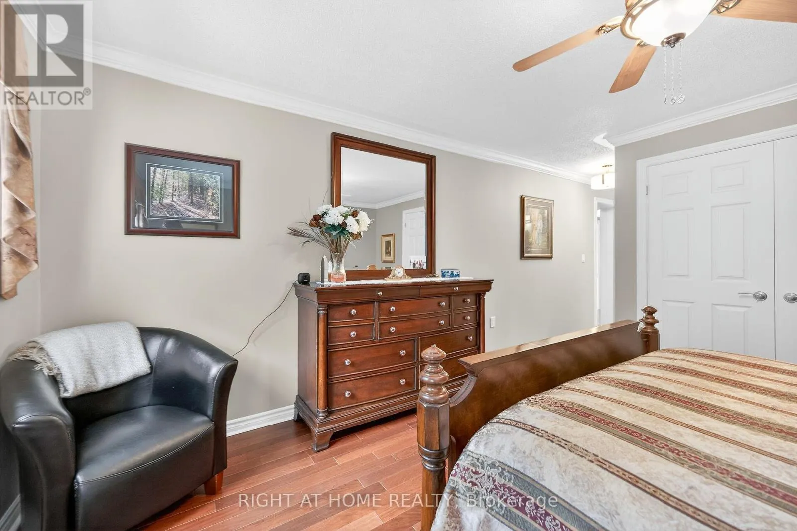 Cross Streets: Concession 8 E. ** Directions: Garron to Kilroot. Welcome to the Gem of Antrim Glen! This exquisitely finished bungalow with a double car garage is set on a desirable private lot backing onto tranquil green-space. Impeccably maintained & tastefully updated, the home offers 3,100 sq. ft. of total living space. The main level showcases a grand living room with gas fireplace, flowing effortlessly into the dining area, an ideal setting for hosting friends & family. The chef inspired kitchen is a true highlight, featuring custom cherrywood cabinetry, leather-finish granite counters, a solar light, breakfast nook, & professional-series stainless steel appliances, including a built-in induction cooktop & wall oven with microwave. The kitchen opens to a spacious family room filled with natural light & providing a walk-out to the spectacular yard. Two generous bedrooms & two full bathrooms complete the main floor, including a primary retreat with a spa-like walk-in jetted soaker tub & integrated sound system. The fully finished lower level continues to impress, offering an additional bedroom, home office, fitness area, expansive rec room with electric fireplace, bathroom with a shower, workshop, & abundant storage. The exterior of the property is exceptional with custom stone double driveway, front & rear stone patios, professionally landscaped gardens, wireless in-ground sprinkler system, & serene views of mature trees. Additional features include hardwood, main-floor laundry, insulated double garage with inside entry, brand-new furnace & A/C, leaf-filter eaves, central vac, water filtration system, & water softener. A complete list of updates & upgrades is available. Antrim Glen provides a vibrant lifestyle community with a wide range of amenities, including heated saltwater pool, sauna, BBQ area, residents' lounge & kitchen for large gatherings, billiards, shuffleboard, library, craft room, horseshoes, vegetable garden plots, & scenic walking trails. Move in ready, simply unpack & enjoy! Monthly Land Lease: $1210.16. (id:27476)