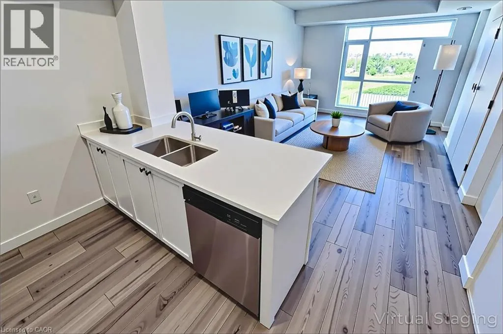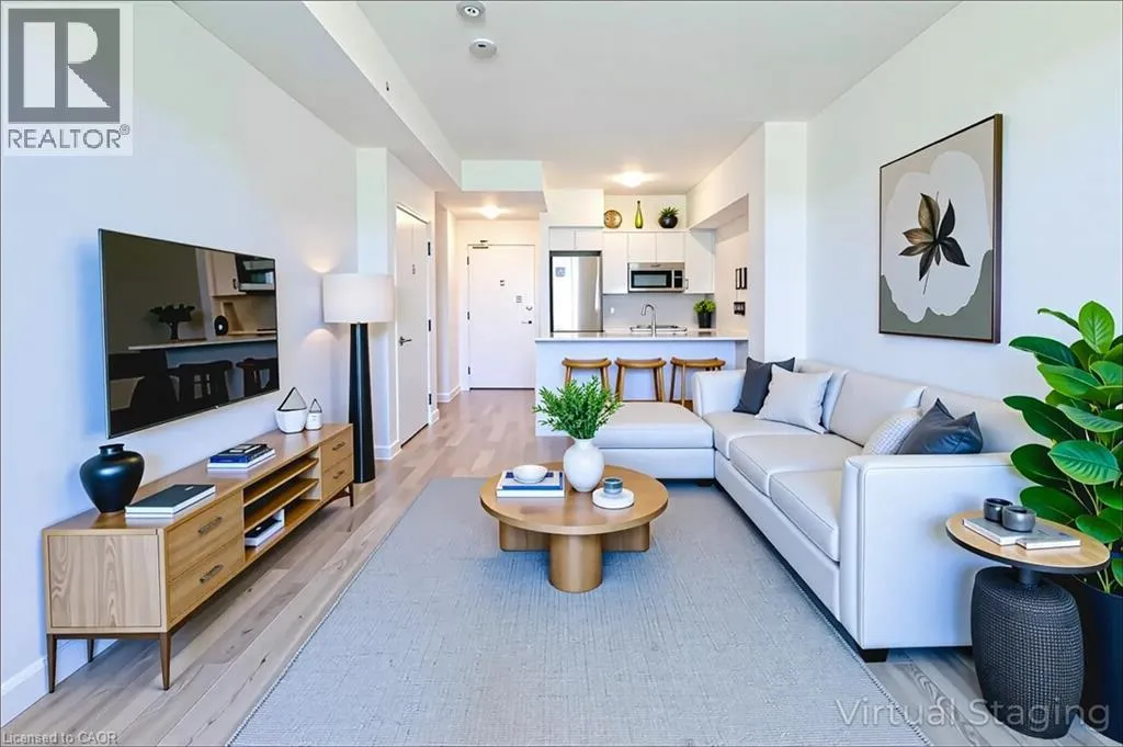 Lakeview and Fruitland Experience the epitome of modern coastal living in the newly completed and vibrant CoMo Condos. This beautifully designed 1-bedroom, 1-washroom unit has stunning waterfront views that create a calming ambiance throughout. The spacious layout features a sleek kitchen with a breakfast bar, an enclosed balcony ideal for relaxation, and a generously sized washroom. For added convenience, the unit includes one parking space and one locker. CoMo Condos also has an exceptional amenities such as a pet spa, an off-leash pet area, a media and gaming room, a party room, automated package pick-up, and a rooftop patio perfect for entertaining or unwinding. Ideally located with easy access to highways, schools, shopping, and dining, this home is perfect for those seeking style, comfort, and convenience. Donât miss your chance to enjoy breathtaking waterfront living every day. (id:27476)
