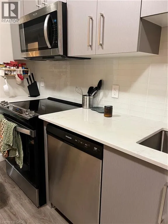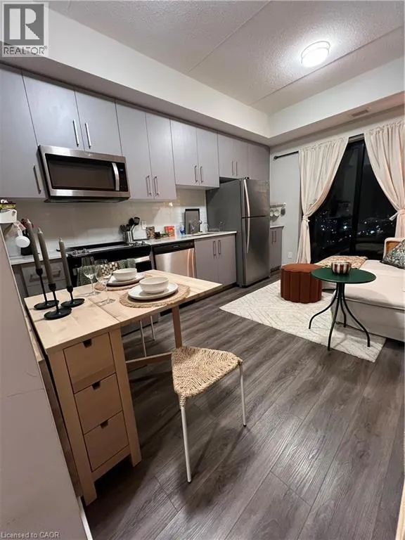 ON THE CORNER OF KING ST & QUEEN ST S Welcome To Platinum Condos! Laminate flooring, 9Ft ceilings, stainless steel appliances, open concept kitchen and convenient ensuite laundry. Bright Floor to ceiling windows, view of Lake Ontario. 1 storage locker, great amenities include a party room with kitchen, yoga deck, fitness room, landscaped rooftop terrace, bike storage. A 95 Walking Score, 10 min transit ride to McMaster University, allows for an urban lifestyle; live and work in the downtown, a close walk to tasty and fancy restaurants, Hess Village, breweries, shopping, cafes, HWY access, steps to the future Queen Street LRT station and much more. A walkable lifestyle is awaiting you with the perks of easy access transportation. Minutes From Hwy 403, McMaster University, Mohawk College, Hospitals, steps to the proposed LRT line and minutes from the Go Transit System. Unit leased furnished or unfurnished for $1,850. (id:27476)