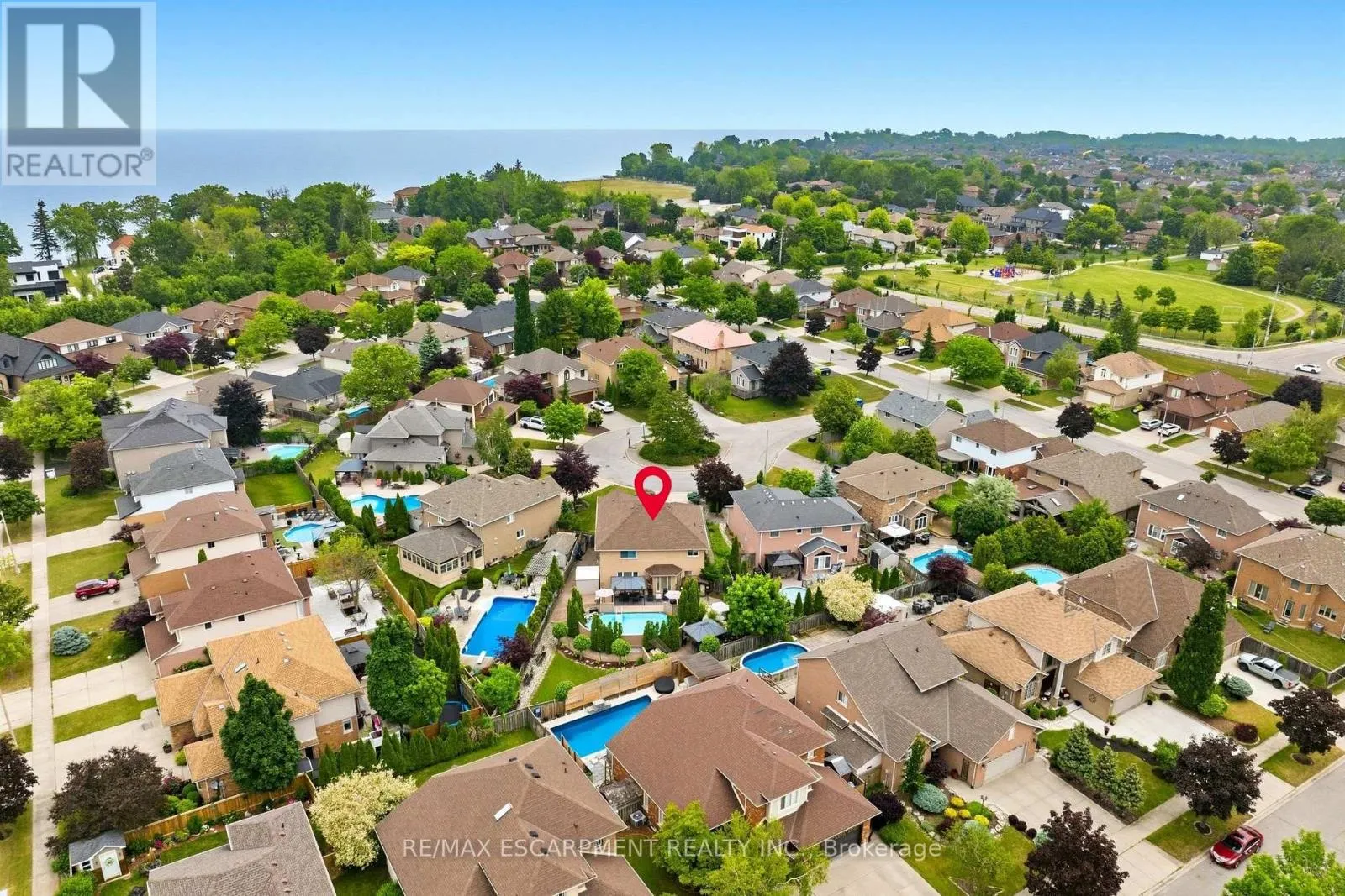 Cross Streets: Riviera Ridge. ** Directions: North Service Rd-Bellavista Gate-Riviera Ridge-Sugarberry Crt. Steps from Lake Ontario, this custom-built four-bedroom home is located in the prestigious Beach Community and Fifty Point neighbourhood of Stoney Creek. Meticulously maintained and fully finished on all levels, the home offers a functional layout with multiple living areas designed for everyday living and entertaining. The kitchen features granite countertops and abundant cabinetry, while the spacious primary bedroom includes a private ensuite and two walk-in closets.The versatile lower level provides additional living space ideal for a home theatre, gym, or games room. A double-car garage and driveway offer ample parking. Professionally landscaped front and rear yards enhance the home's curb appeal, and the private backyard retreat features an above-ground pool surrounded by mature greenery.Situated on a quiet court with an approximate lot size of 47 x 171 feet, this property offers an exceptional lifestyle with close proximity to schools, lakefront trails, marinas, highway access, GO Transit, shopping, and dining. A rare opportunity in one of Stoney Creek's most desirable locations. (id:27476)