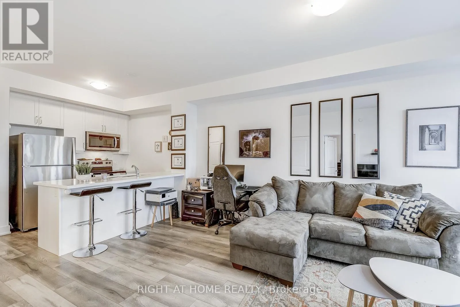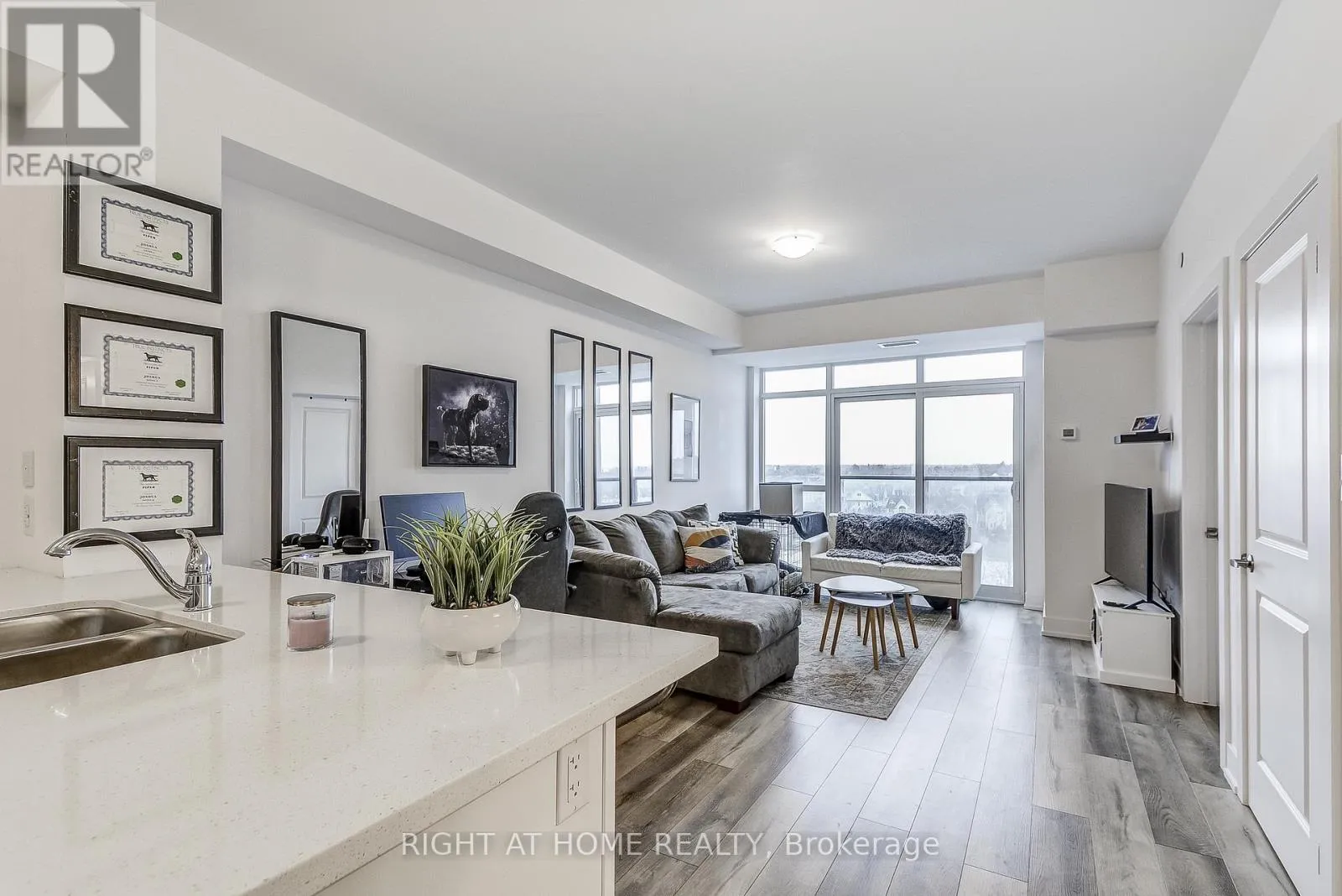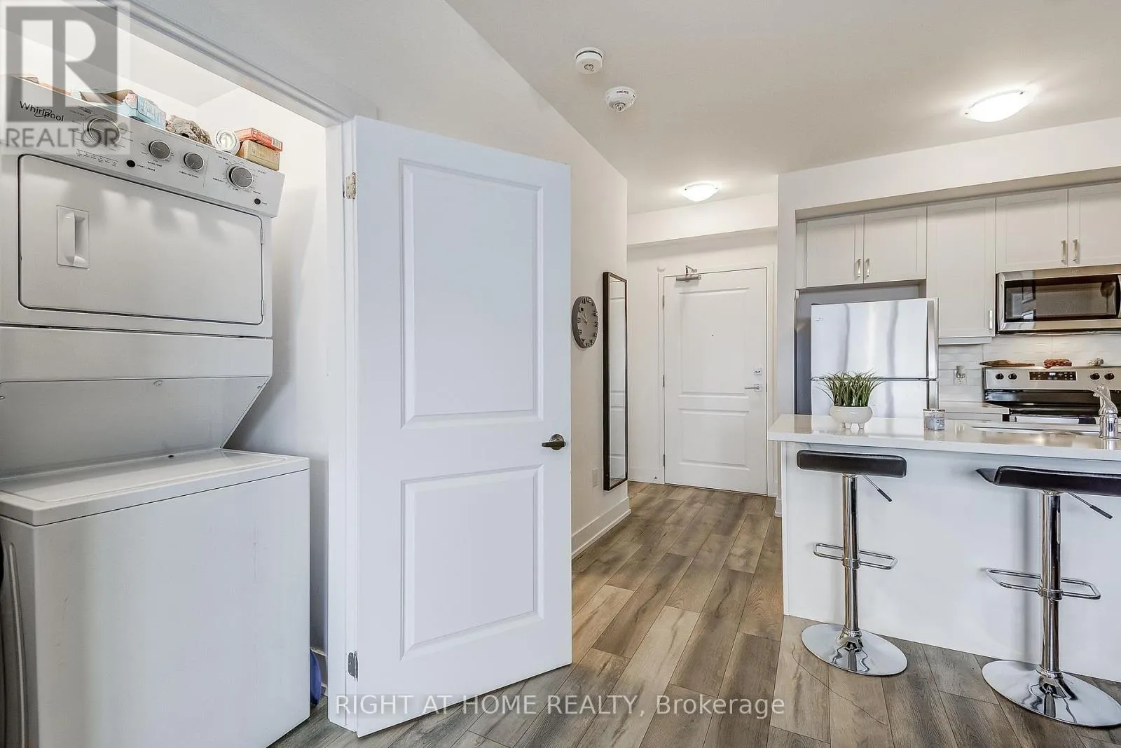 Dundas/Mallard Welcome to the highly sought-after Trend 3 community in the heart of Waterdown! This bright and inviting 1-bedroom condo offers an open-concept layout that seamlessly connects the modern kitchen and living area. The kitchen features brand-new stainless steel appliances, quartz countertops, and a stylish breakfast bar, creating an ideal space for cooking and entertaining. A well-appointed 4-piece bathroom and the convenience of in-suite laundry complete this thoughtfully designed suite. Enjoy a lifestyle of comfort and convenience with exceptional building amenities, including vibrant party rooms, a state-of-the-art fitness centre, scenic rooftop patios, and secure bike storage. Situated just minutes from top-rated dining, shopping, schools, and picturesque parks, this location is perfect for those seeking walkable urban living. One owned surface parking space and an owned locker are included, providing added ease and extra storage. Experience contemporary living at its finest in this exceptional condo! (id:27476)
