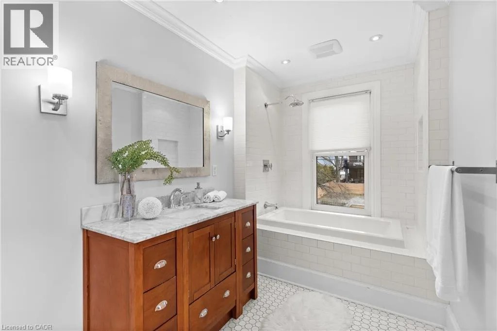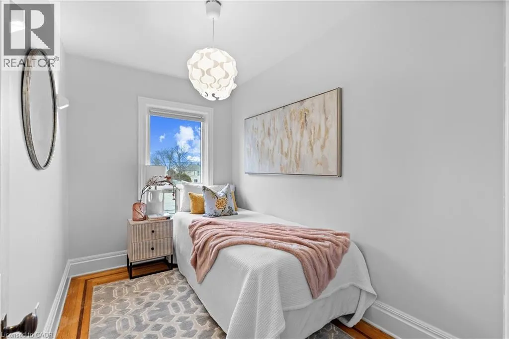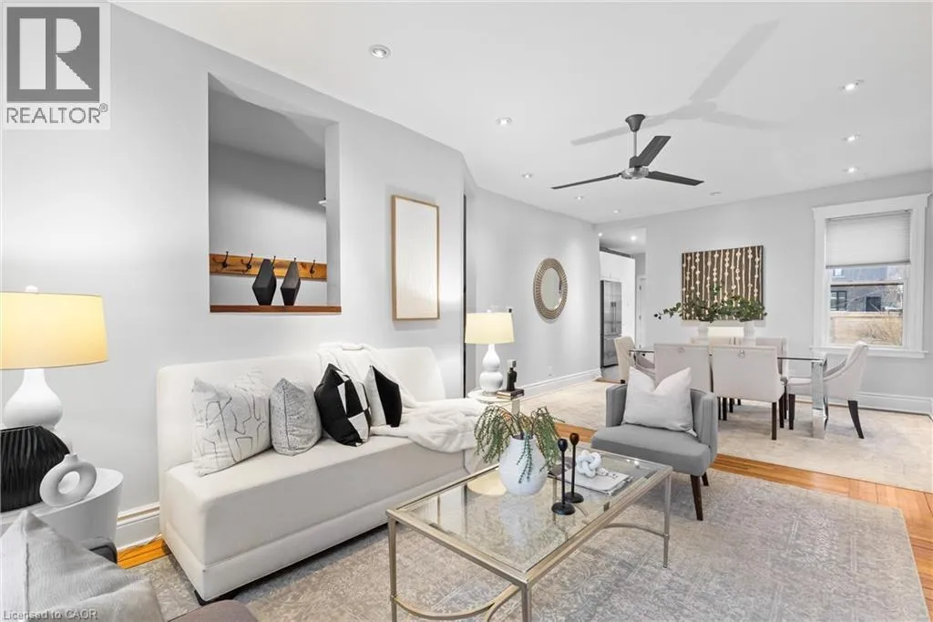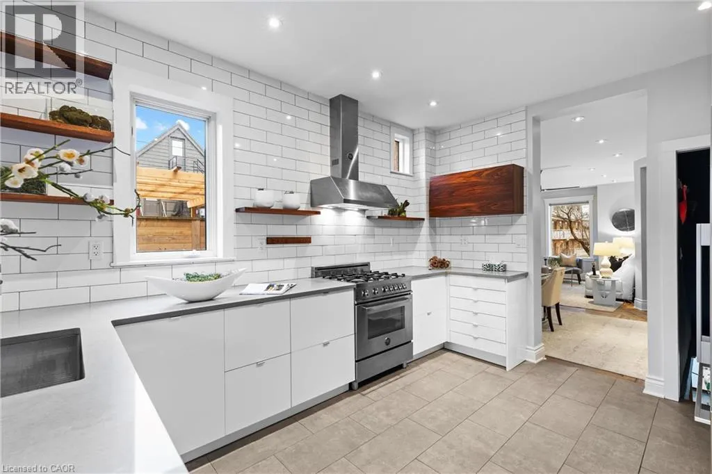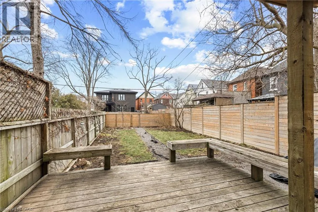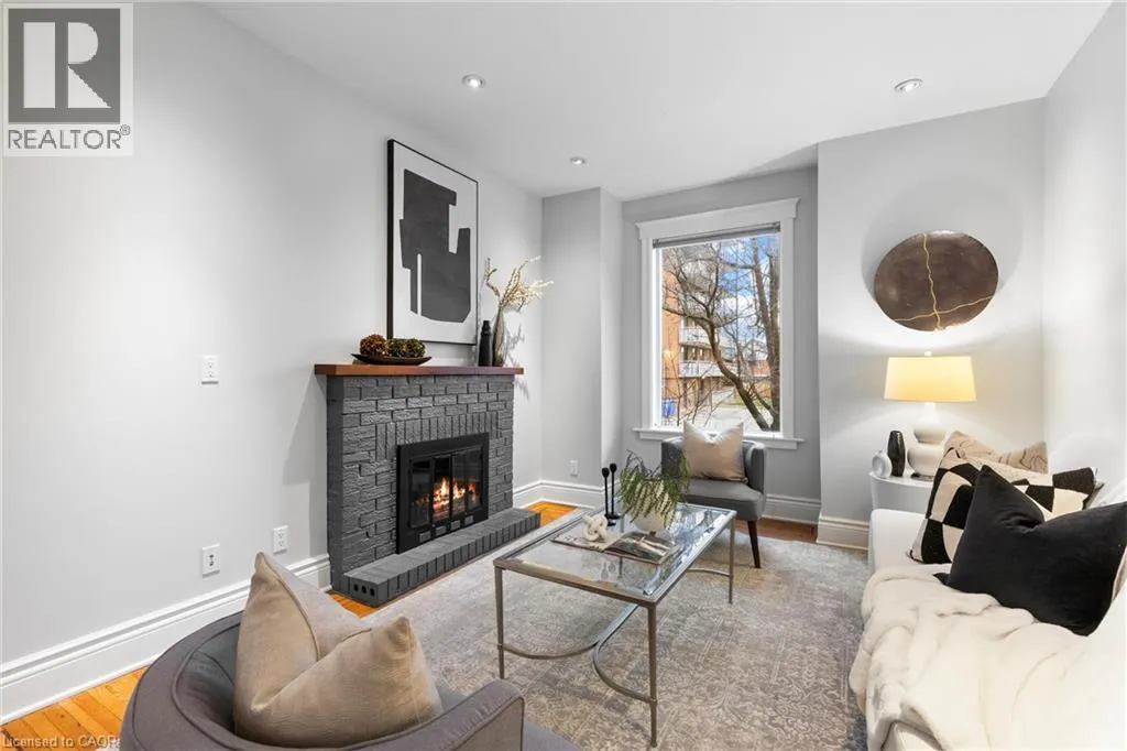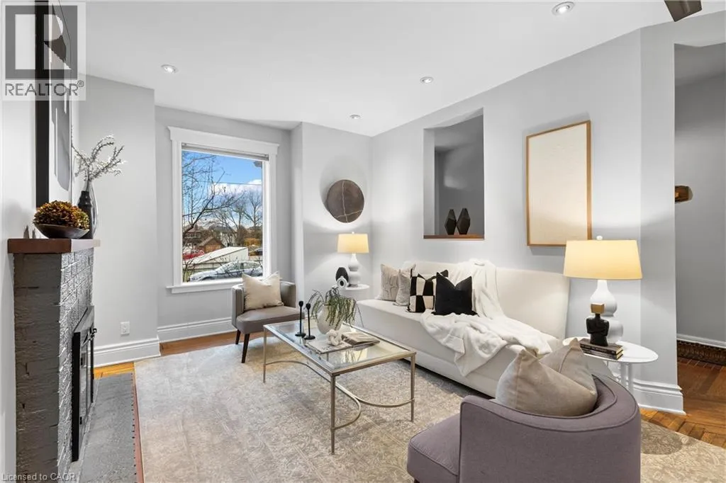 STANLEY-WEST OF LOCKE STREET Coveted Kirkendall neighbourhood, solid brick 19th Century Victorian home with absolutely stunning renovations while maintaining its charm and character. Main floor features a bright, open-concept living and dining area with original hardwood floors, soaring ceilings, pot lights, and a fireplace. The impressive modern kitchen showcases a sleek contemporary design with Caesarstone quartz countertops, white lower cabinetry paired with custom black walnut upper cabinets and shelving, a Bertazzoni professional gas range, Fisher & Paykel refrigerator, and Miele dishwasher. A full-height subway tile backsplash, porcelain floor tile, pantry cabinetry, pot lights, abundant natural light, and walk-out to a raised deck and backyard complete this exceptional space. Upstairs offers three well-appointed bedrooms plus a versatile home office nook or walk-in closet, all featuring original hardwood floors, large windows, and a thoughtful mix of original and replica baseboards and trim. The beautifully updated full bathroom is both spacious and elegant, with a soaker tub, marble vanity, pot lights, and plenty of natural light. Enjoy outdoor living with a raised deck and covered porch off the kitchen overlooking a fully fenced backyard offering excellent privacy. Parking for two cars is available and easily accessible. Numerous updates include electrical wiring, insulation, select windows, fencing, kitchen, and bathroomâmaking this a truly turnkey home in a prime location. Steps from Locke St, enjoy the best of dining delights and truly the best part of the city. A five minute walk from Earl Kitchener Elementary School, all amenities, public transit and parks makes this location second to none. (id:27476)