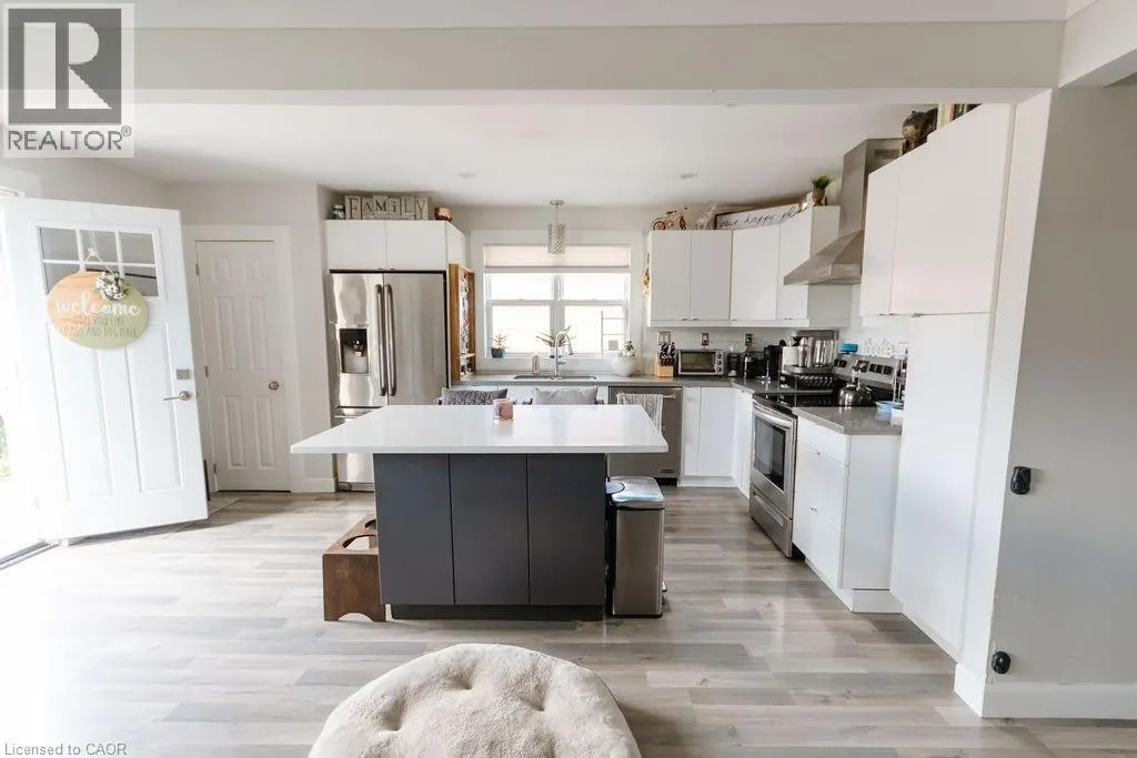 South of Fennell Ave E Beautifully renovated brick bungalow in a prime Central Mountain location! This main floor unit features 3-bedrooms and a bright, open-concept layout designed for todayâs lifestyle. The stylish kitchen is equipped with sleek white cabinetry, quartz countertops, a contemporary backsplash, dishwasher, and an island with breakfast bar - perfect for everyday living and casual entertaining. Quality flooring flows throughout the unit, complemented by a beautifully finished 4-piece bathroom. One parking space in the driveway is included. Shared laundry on site. The fully fenced yard provides outdoor space to relax and unwind. Conveniently located minutes to the mountain brow, parks, schools, shopping, transit, and more! (id:27476)