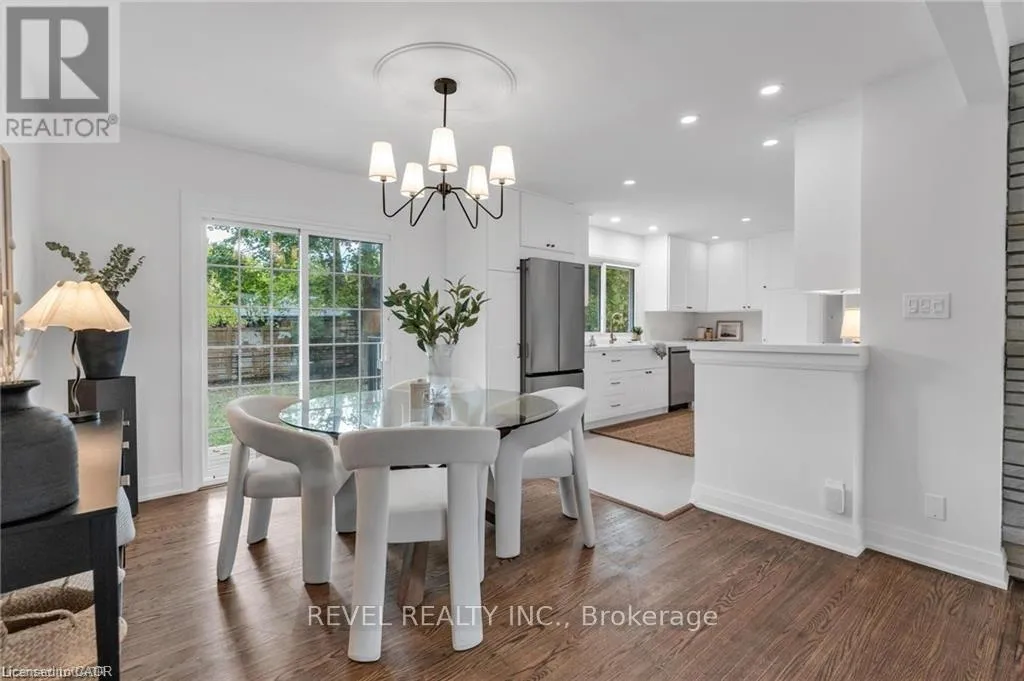 Cross Streets: Old Mohawk Rd and Seneca. ** Directions: Off Old Mohawk Rd. Welcome to the popular and charming Old Meadows neighbourhood in Ancaster! This spacious bungalow features a fantastic layout, stunning updated kitchen and bathroom, 3 bedrooms on the main floor, hardwood floors throughout the main level along with large windows filling the home with natural sunlight. A walk-out from the dining room leads to a large backyard, perfect for building family memories or weekend entertaining with friends. Nestled on a LARGE 80' x 120' lot, you're just a short distance from the Old Ancaster Village charm and amenities while having easy highway access and minutes to Meadowlands Shopping Centre. This updated bungalow includes a separate entrance to the basement with a second kitchen AND separate laundry room as well as two additional bedrooms. A must-see property! (id:27476)