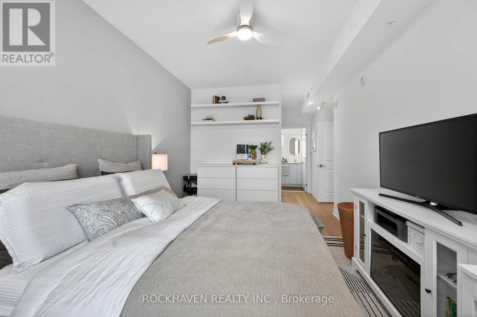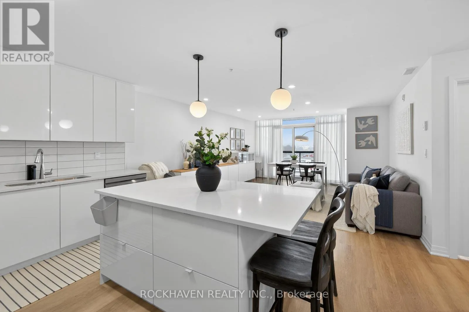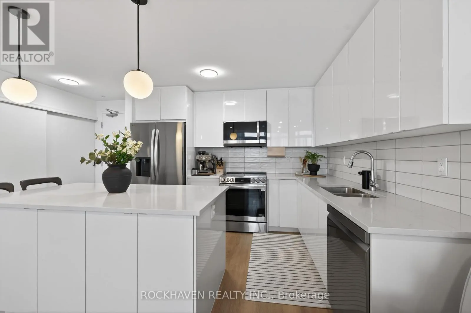Cross Streets: Dundas St E & Hamilton St N. ** Directions: 5 Hamilton St N. This bright and modern unit features neutral colors throughout, quartz countertops, and pot lights creating a warm and inviting atmosphere. Step out onto your private balcony to enjoy the afternoon sun. This open-concept unit features upgraded appliances and lighting throughout. The kitchen features a new ceramic backsplash and large island that offers seating and well as additional storage. Upgraded cabinetry throughout. In-suite laundry with upgraded washer and dryer is also included. Adjacent to the primary bedroom you will find a large walk-in closet and spacious 4-piece ensuite with oversized shower, upgraded counter-height vanities with quartz tops, LED mirrors and double sinks. A heated underground parking space and a storage locker are included. The building features a party room and bike room for secure storage. Enjoy the convenience of living at 5 Hamilton Condos, perfectly situated in the vibrant Waterdown core. Just steps away from your front door you'll enjoy local shops, services and restaurants including a pharmacy and grocery stores. Within walking distance, you will discover the charm of Waterdown including scenic trails, Smokey Hollow Waterfall, and Memorial Park. With shopping and services nearby and easy access to highways, this location offers both convenience and connectivity. This condo offers the perfect balance of comfort, convenience, and low maintenance living in one of Waterdown's most desirable locations. (id:27476)