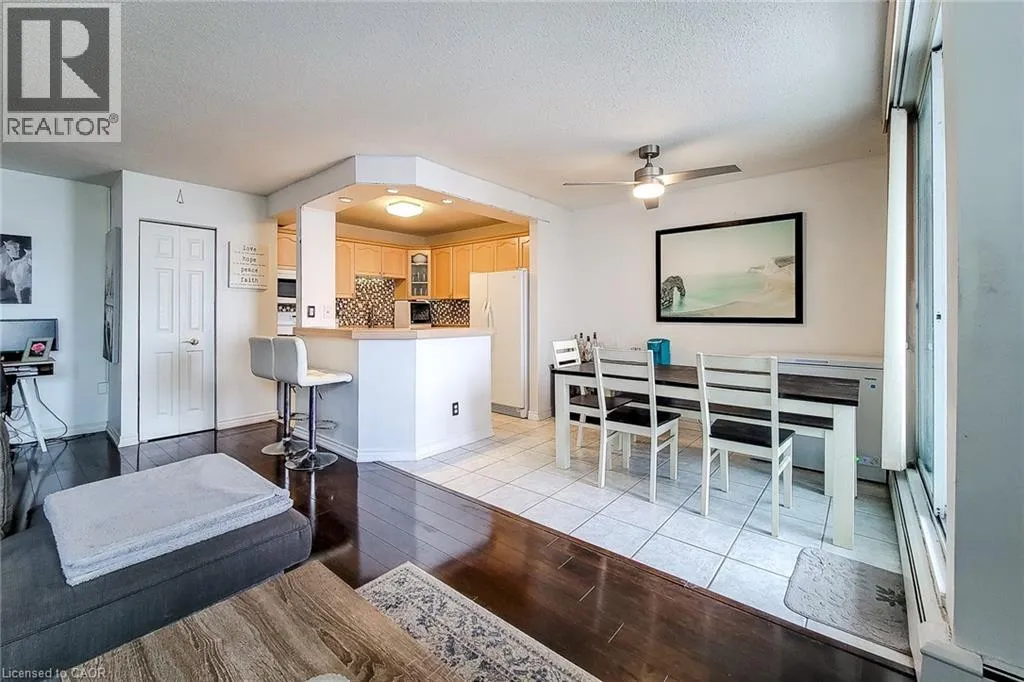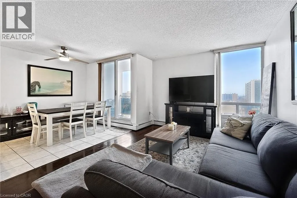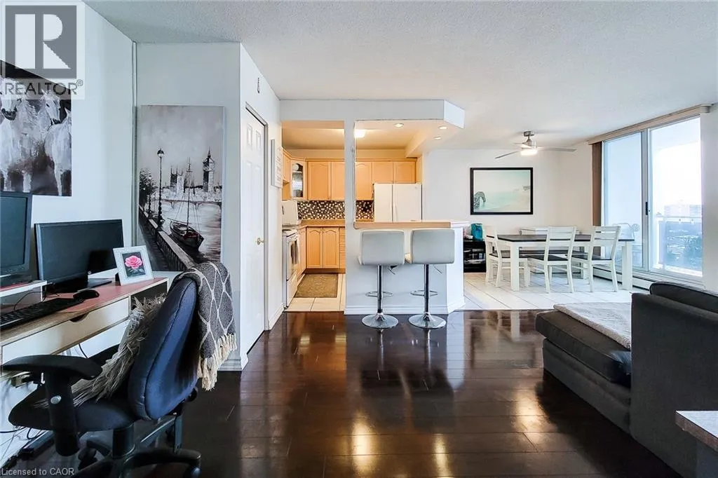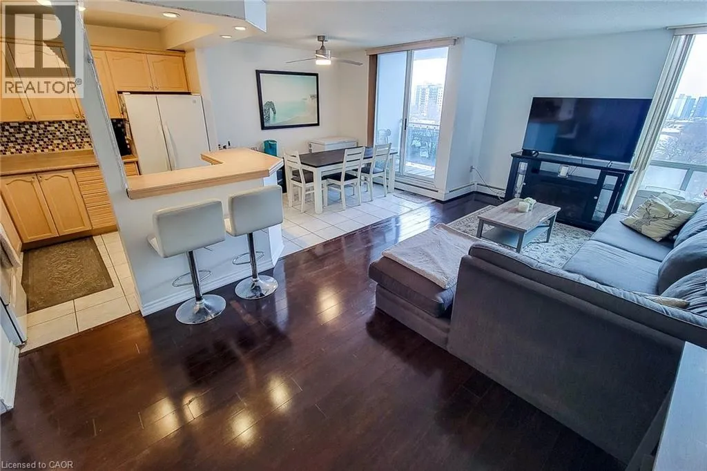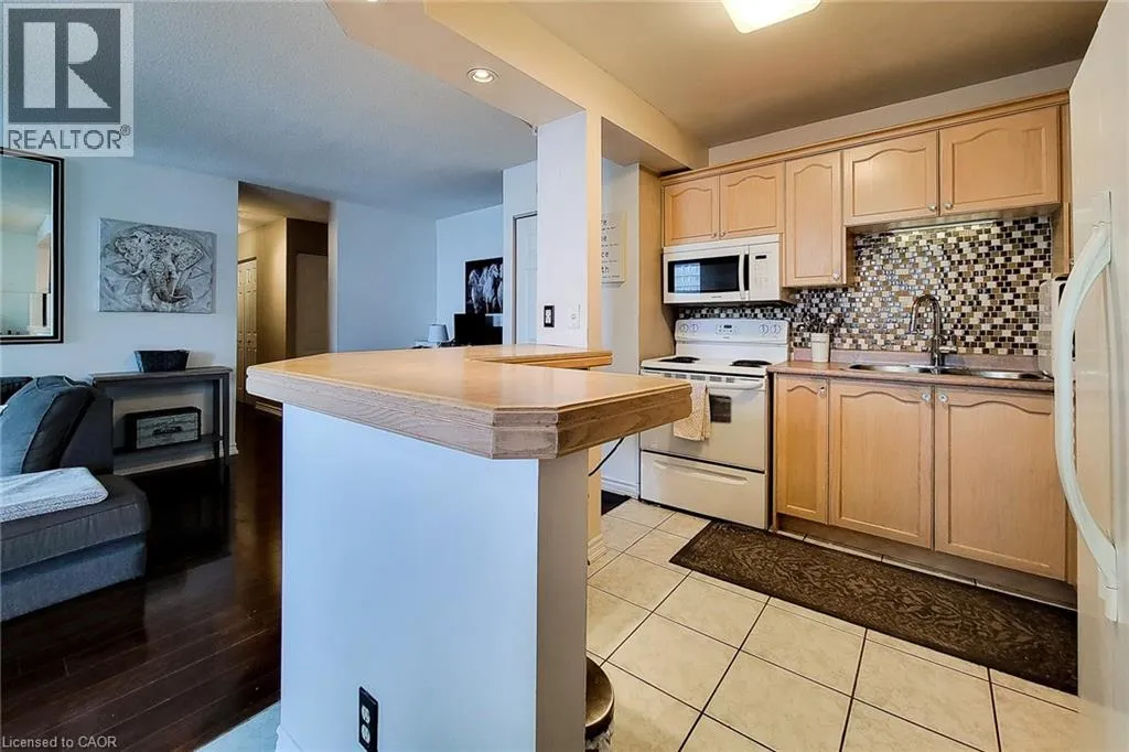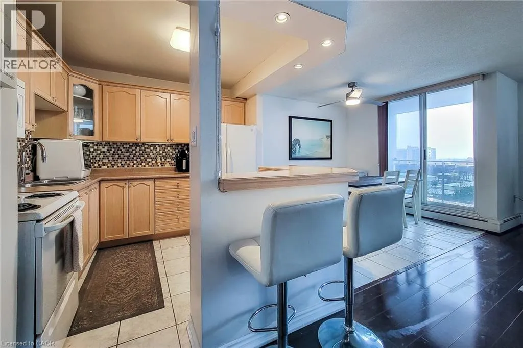 Open concept, bright apartment located at very prime location on East Hamilton. This 9th floor apartment with great floor plan features 8x6 balcony for gorgeous view, 2 good sized bedrooms, 4 piece bath, ensuite laundry open concept kitchen with breakfast bar and backsplash. Easy to maintain/clean laminate floors through out. Near to new GO stations, QEW exit, shopping malls, schools, public transit, and parks. Great opportunity for first time buyers, investors and empty nesters. Exclusive one parking space and locker for extra storage. Balconies replaced in 2025. (id:27476)