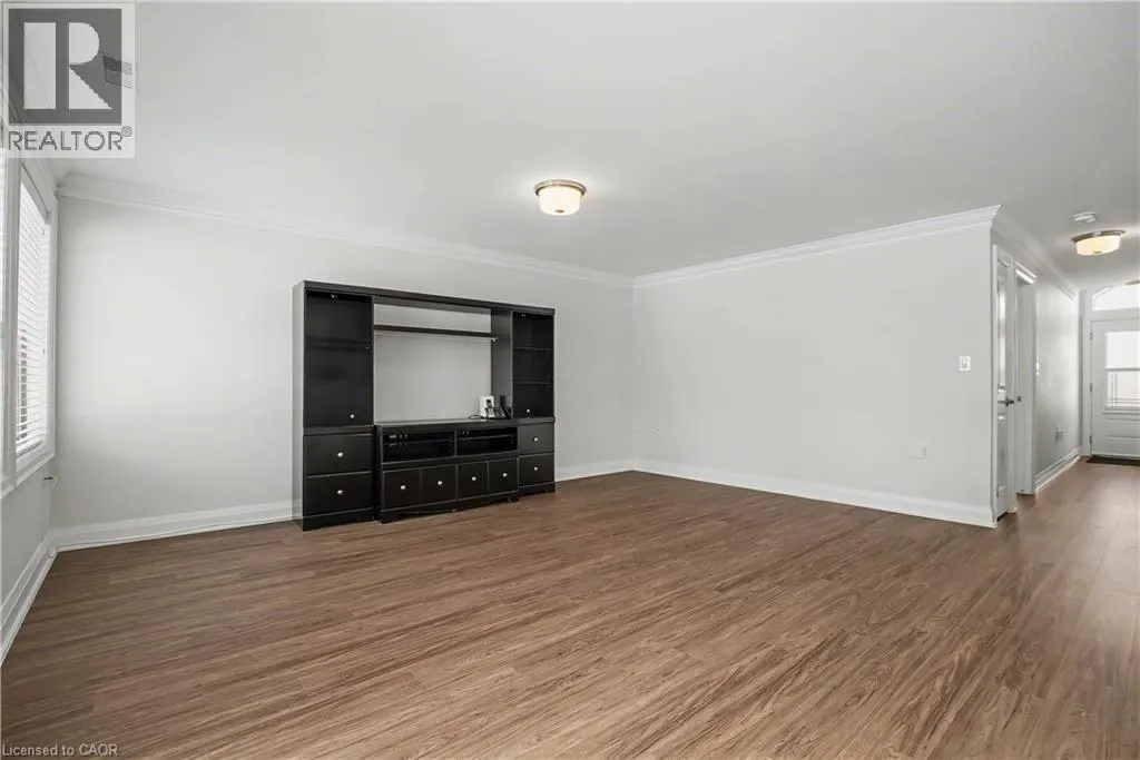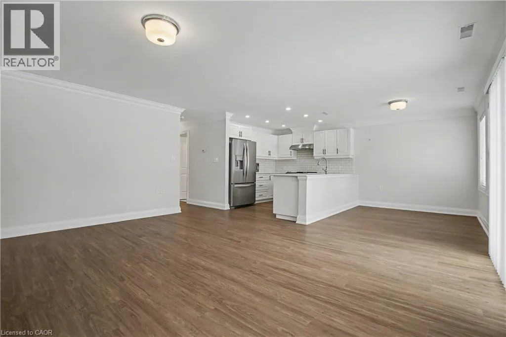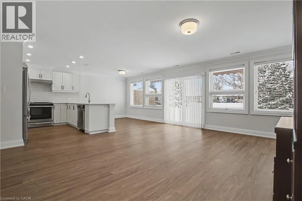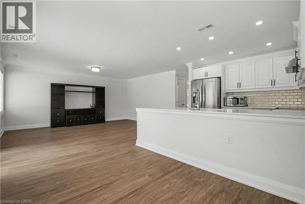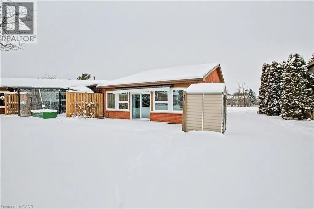 South East corner of Garth Street & Rymal Road West Welcome to this bright and welcoming corner bungalow in the gated 55+ community of St. Elizabeth Village. This 960 square foot one floor home offers a comfortable one bedroom, one bathroom layout with private parking and a peaceful water view overlooking one of the community ponds. The spacious kitchen features stainless steel appliances and quartz countertops and opens beautifully to the living and dining area. Wall to wall south facing windows fill the space with natural light throughout the day, creating a warm and cheerful atmosphere. Step outside to the backyard where a deck with a retractable awning is perfect for relaxing in the shade while enjoying the view, and a handy storage shed provides extra space. The bathroom includes a tiled walk in shower with grab bars for added comfort and support. This home is just a short walk to the Village amenities including the heated indoor pool, gym, saunas, hot tub and golf simulator. Residents also enjoy on site public transit, a woodworking shop, stained glass studio, doctors office, pharmacy and massage clinic. Located within a five minute drive to grocery stores, shopping and restaurants, with public transportation coming directly into the Village, this lovely bungalow offers both convenience and an active, friendly lifestyle. Property taxes, water, and all exterior maintenance are included in the monthly fees. Furnace, A/C and Hot Water Tank are on a rental contract with Reliance. RSA (id:27476)