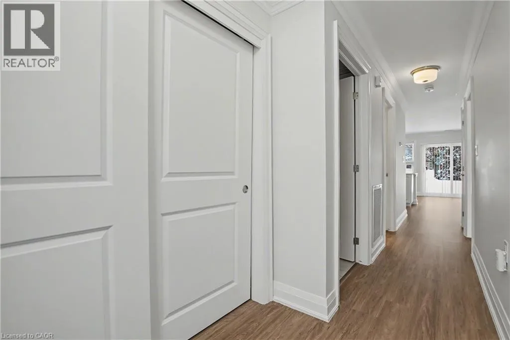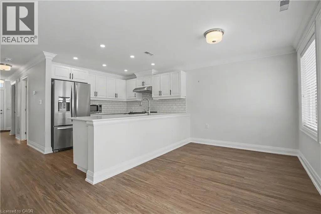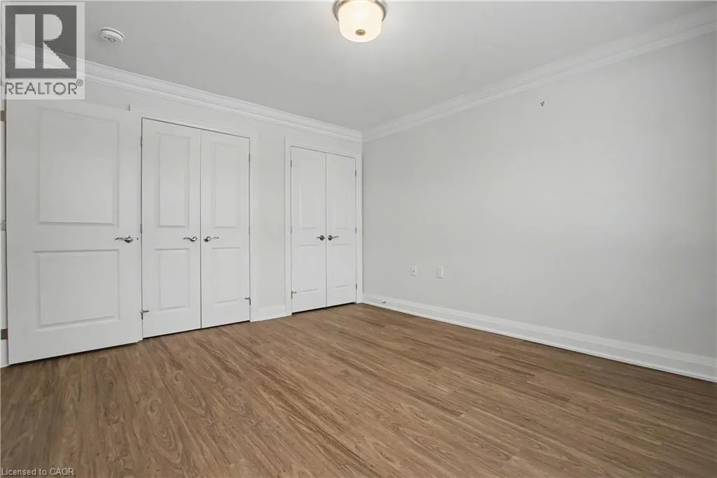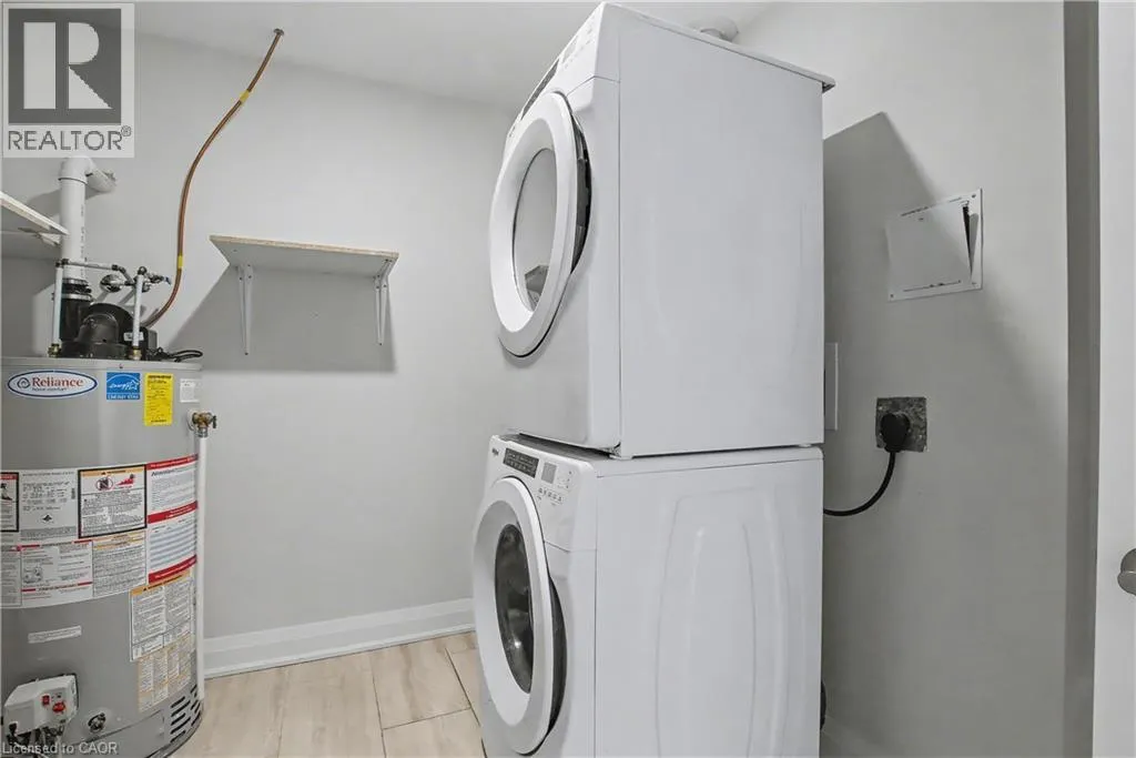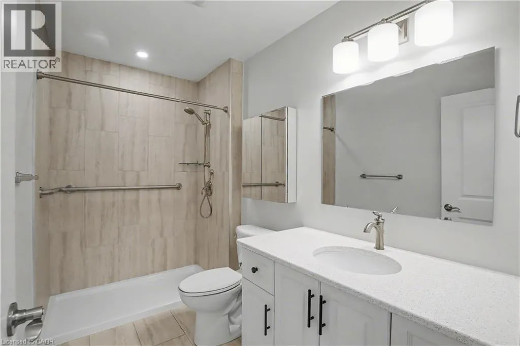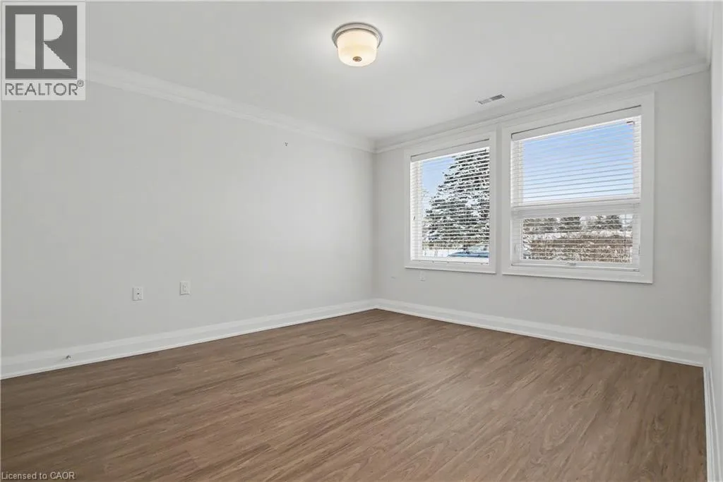 South East corner of Garth Street & Rymal Road West Welcome to this bright and welcoming corner bungalow in the gated 55+ community of St. Elizabeth Village. This 960 square foot one floor home offers a comfortable one bedroom, one bathroom layout with private parking and a peaceful water view overlooking one of the community ponds. The spacious kitchen features stainless steel appliances and quartz countertops and opens beautifully to the living and dining area. Wall to wall south facing windows fill the space with natural light throughout the day, creating a warm and cheerful atmosphere. Step outside to the backyard where a deck with a retractable awning is perfect for relaxing in the shade while enjoying the view, and a handy storage shed provides extra space. The bathroom includes a tiled walk in shower with grab bars for added comfort and support. This home is just a short walk to the Village amenities including the heated indoor pool, gym, saunas, hot tub and golf simulator. Residents also enjoy on site public transit, a woodworking shop, stained glass studio, doctors office, pharmacy and massage clinic. Located within a five minute drive to grocery stores, shopping and restaurants, with public transportation coming directly into the Village, this lovely bungalow offers both convenience and an active, friendly lifestyle. Property taxes, water, and all exterior maintenance are included in the monthly fees. Furnace, A/C and Hot Water Tank are on a rental contract with Reliance. RSA (id:27476)