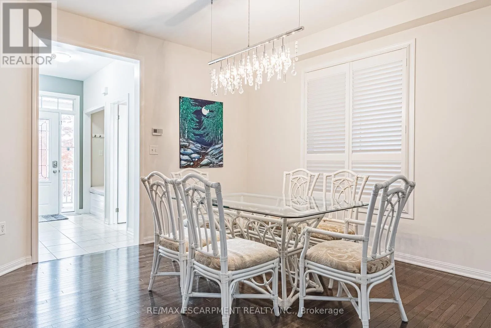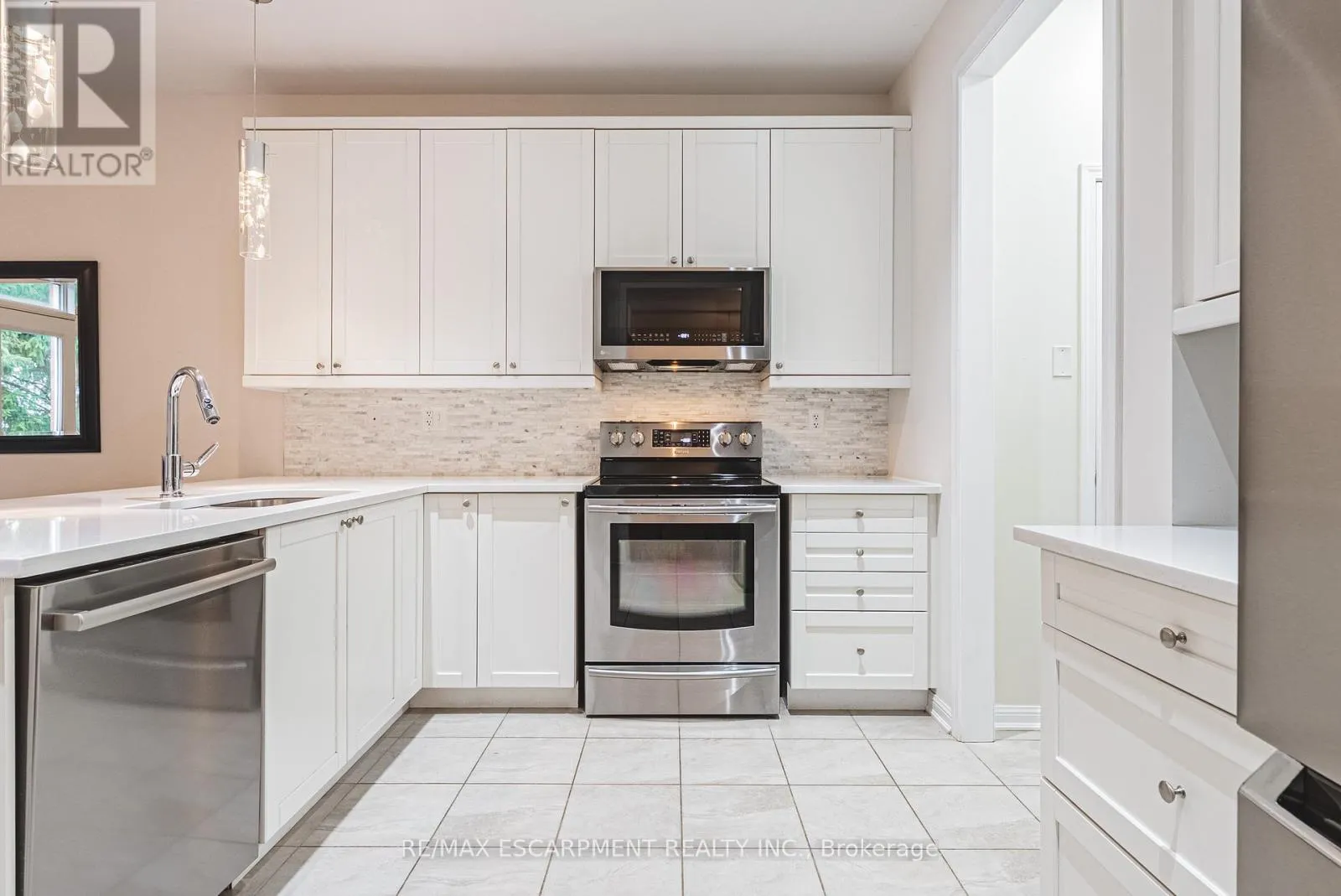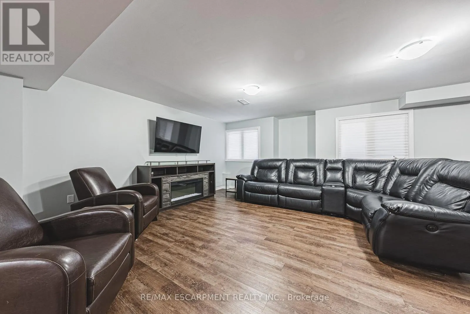 Cross Streets: Kitty Murray. ** Directions: Kitty Murray - Emick - Peer. Spectacular 4-bedroom home with walk-out basement, ideally located across from a park and within walking distance to schools. This beautifully designed residence features a sleek, open-concept layout with impressive kitchen including quartz countertops, stainless steel dishwasher and microwave, elegant marble backsplash, breakfast bar, kitchen dining area with patio doors to balcony, extended upper shaker cabinetry, full-wall pantry, pot drawers and a lazy Susan-perfect for both everyday living and entertaining. This family friendly home also offers a separate formal dining area, adding versatility and charm and open to the impressive great room showcasing coffered 9-foot ceilings, smooth finishes, rich dark-stained hardwood floors, and an abundance pot lighting, creating a refined, magazine-worthy ambiance. The welcoming foyer features a custom niche seating area and the main floor also includes a guest powder room. Enjoy this carpet free home with hardwood flooring & ceramic throughout the first and 2nd floors. The fully finished basement showcases laminate flooring, 4 piece bath, office, spacious Rec room with walk-out to the rear yard and ample storage. The second level boasts four generously sized bedrooms, including a luxurious primary suite with a spa-inspired ensuite featuring a glass shower, soaker corner tub, and elegant finishes. This 2nd floor also provides a second full bathroom and spacious laundry room for every day convenience. Close to all Ancaster has to offer, including shopping, restaurants, golf courses and more. Room sizes approximate. (id:27476)