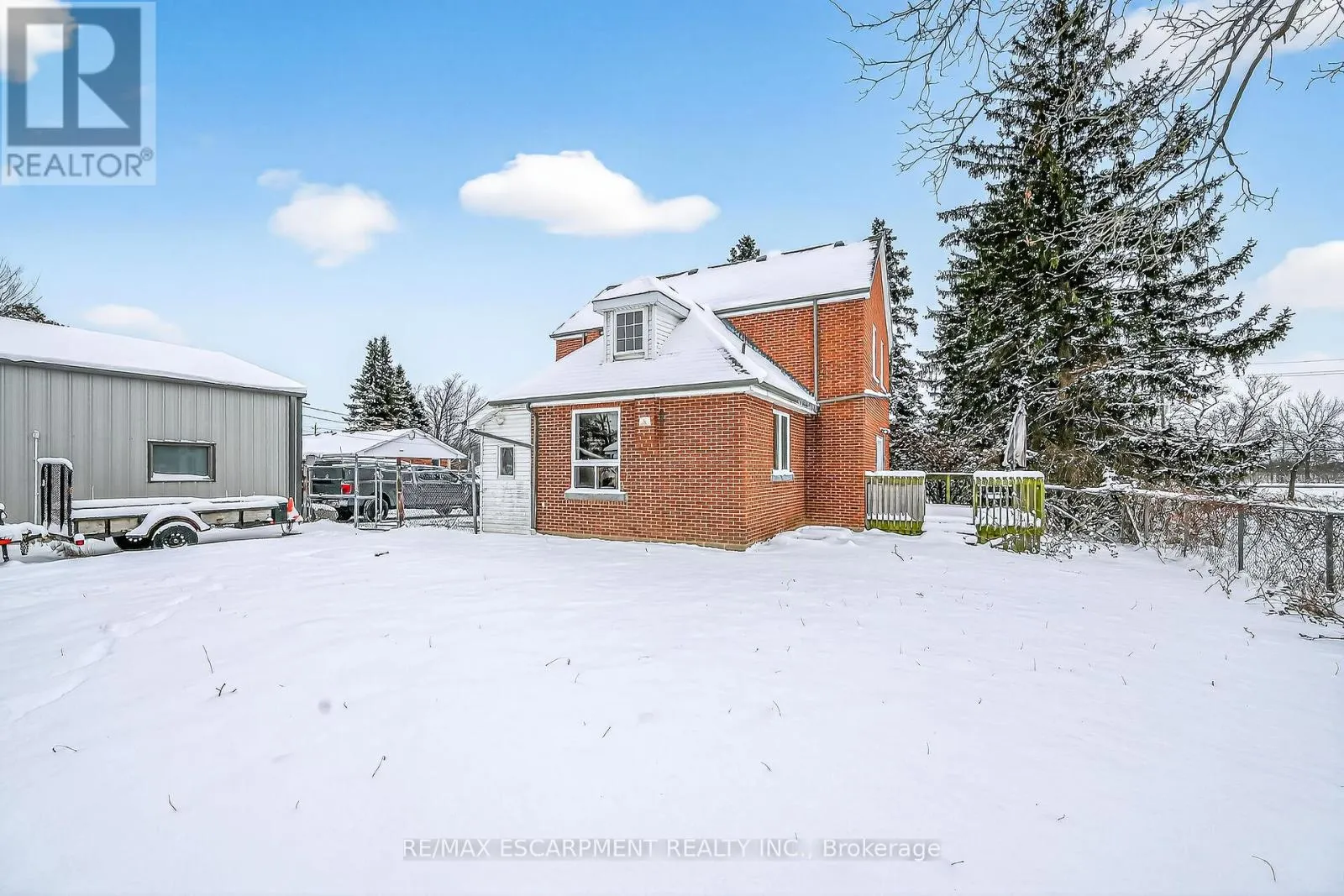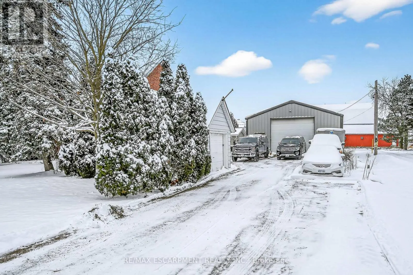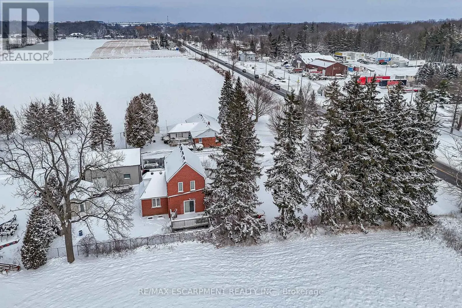 Binbrook/Cemetary Road Experience "Country in the City" here at 2250 Highway 56 located in the heart of Binbrook - less than a 10 minute commute to Stoney Creek & Hamilton's amenities with Binbrook's vibrant town center minutes south includes schools, churches, parks, eateries & shopping centers. Check out this 0.54 acre rural property showcasing well maintained 2 storey century home positioned handsomely on mature treed lot introducing 1786sf of tastefully presented living area offering large, bright, family-sized kitchen features convenient island, ample cabinetry & storage room - leads to formal dining room boasting 8.5ft coved plastered ceilings - continues past roomy front foyer to west side living room enjoying patio door walk-out to 12'x20' entertainment deck & private fenced side/rear yard. Centrally designed staircase ascends to spacious upper level includes 3 sizeable bedrooms, unique multi-purpose room suitable for office or 4th bedroom completed with updated 4pc bath. The vintage dwelling's classic interior sports gleaming original hardwood flooring complimented with beautiful gum-wood doors, trim & baseboards. Hi & dry 653sf service-style basement houses efficient n/g hot water boiler-2007 includes laundry room & open storage/workshop space. Aspiring Mechanics, Truckers or Landscapers will salivate once entering the metal clad 30'x35' insulated "Dream" shop features free span I-beam construction, vaulted hoist worthy ceilings, concrete floor, 200 amp hydro, 12'x14' & 9'x7' insulated roll-up doors & wood stove (AS IS). Looking for extra space - there is 12'x20' versatile wood clad building-2014 features concrete flooring, 40 amp hydro & roll-up door plus 12'x20' detached garage. Extras - roof covering-2007, large parking compound, 2 portable AC units, 100 amp hydro, all appliances, cistern & septic system. Incredible well priced package with something for everyone! (id:27476)