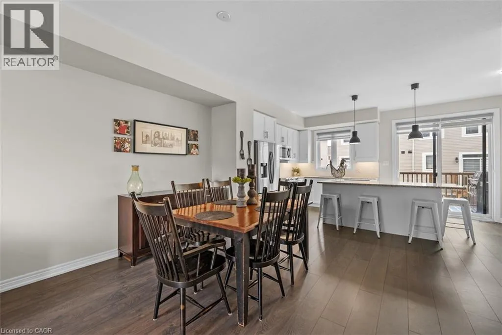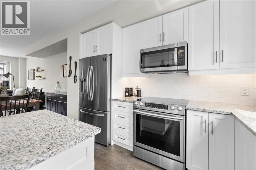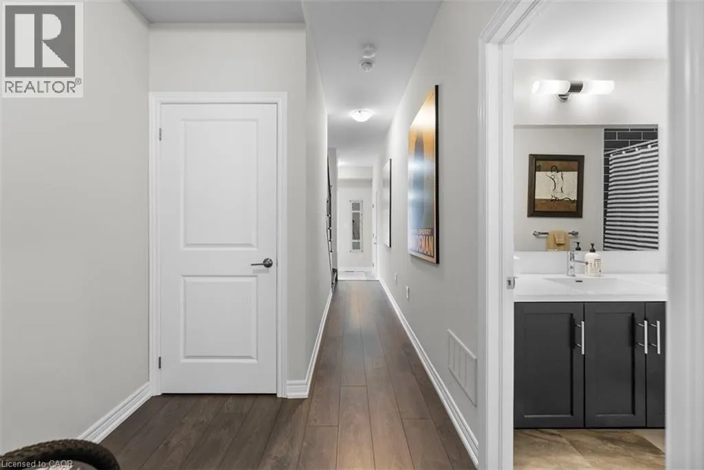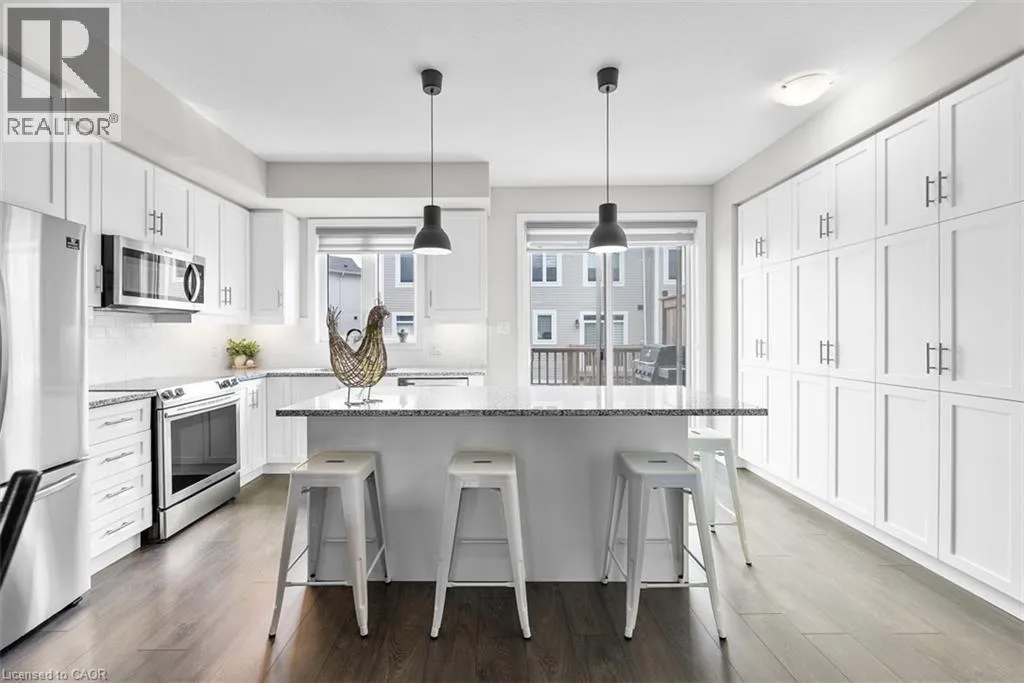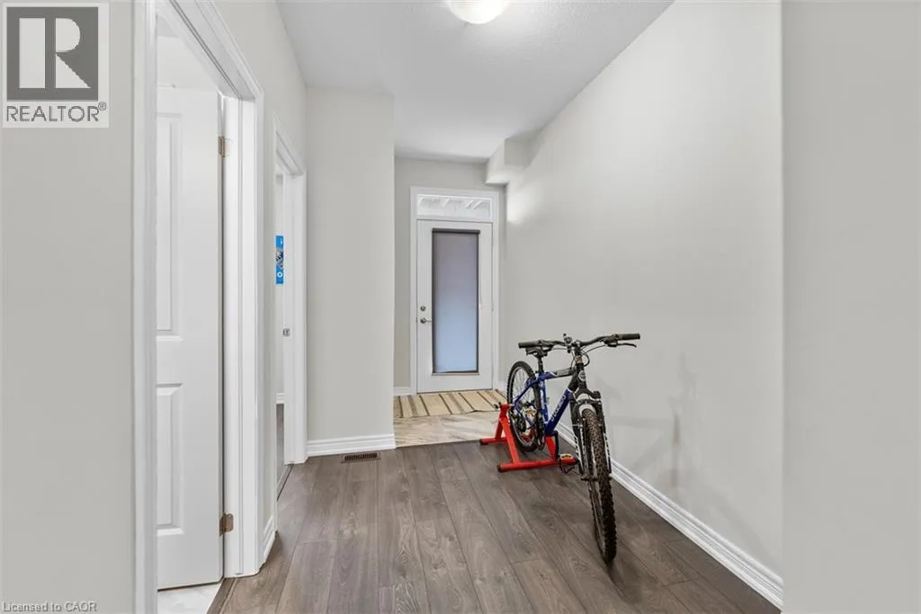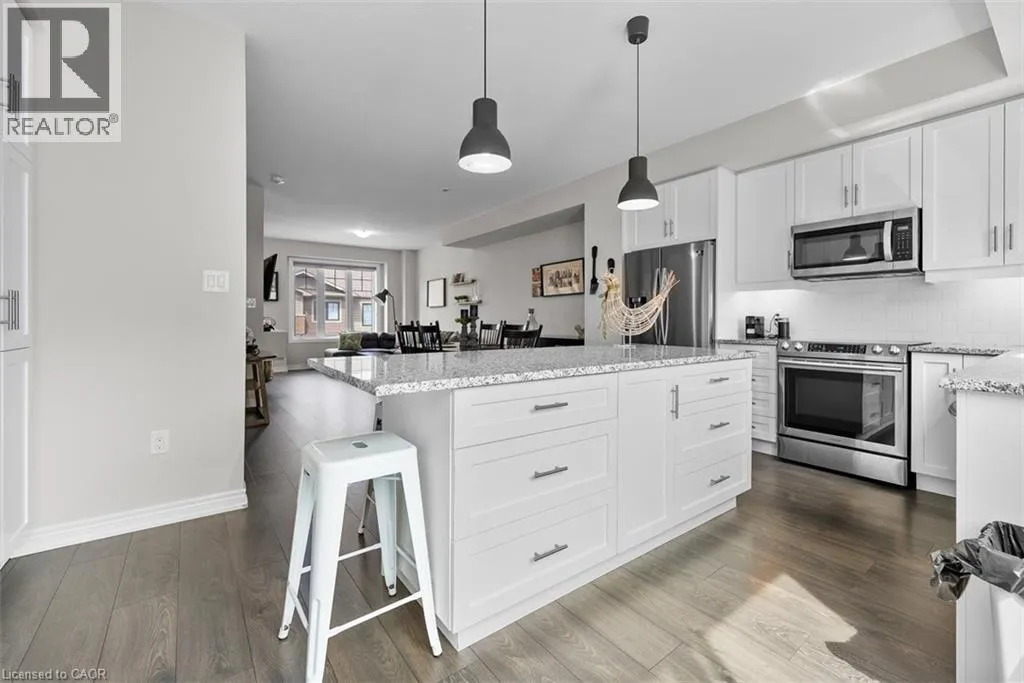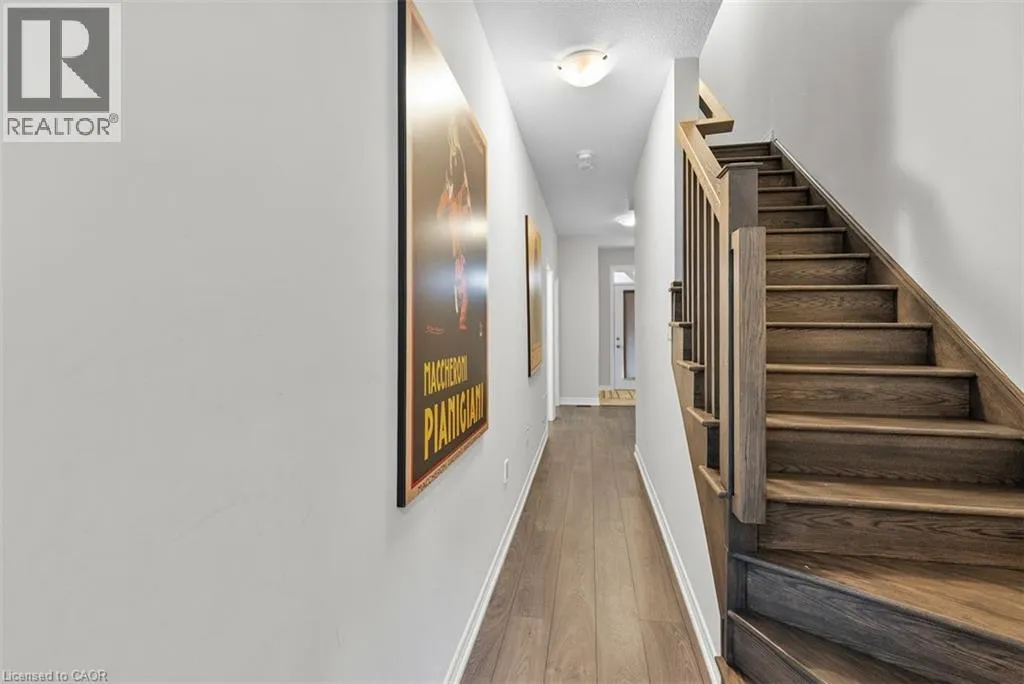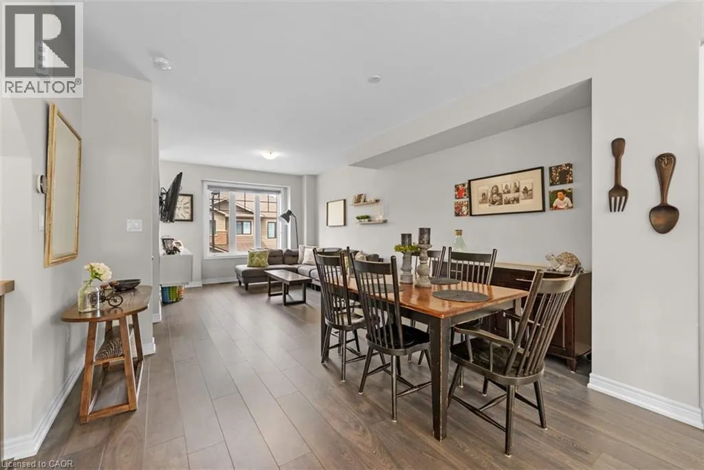 King St. to Quigley Rd. to Albright Rd. to Hibiscus Ln. Rare 4 bedrooms 4 Baths Stunning 3 storey Upgraded Townhome in a sought after neighborhood of East Hamilton conveniently located close to public transportation, schools, GO Station, Hospital, Parks & Amenities. Welcome to modern living with open concept layout and large windows feeling the home with sunlight featuring 9 foot ceilings, carpet free floors on main & 2nd floor. The main floor features a Bedroom and full bathroom which can be used as in law suite or a private office with access to the garage, basement and backyard. The 2nd floor via oak stairs features a gourmet kitchen with lots of pantry space, quartz counter top with undermount sink, subway tile backsplash, valence lighting, a huge island with pendant lighting, access to patio deck, open to the living/dining room and powder room. The 3rd floor via oak stairs features 3 bedrooms , 2 full baths with quartz counter tops vanities & Stacked Laundry closet. This home provides modern lifestyle living with practical space and the unfinished basement ready for your personal touch. (id:27476)