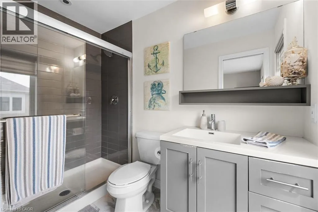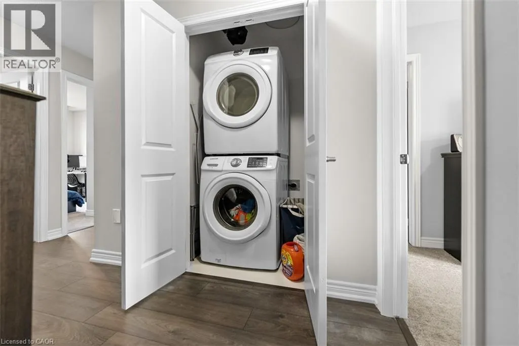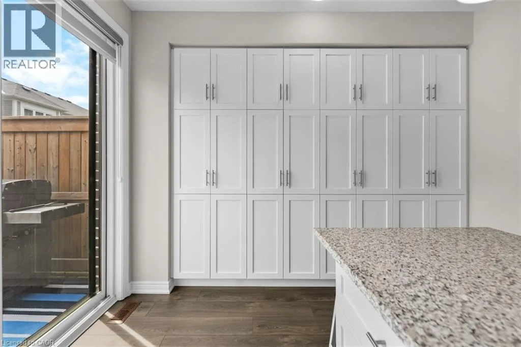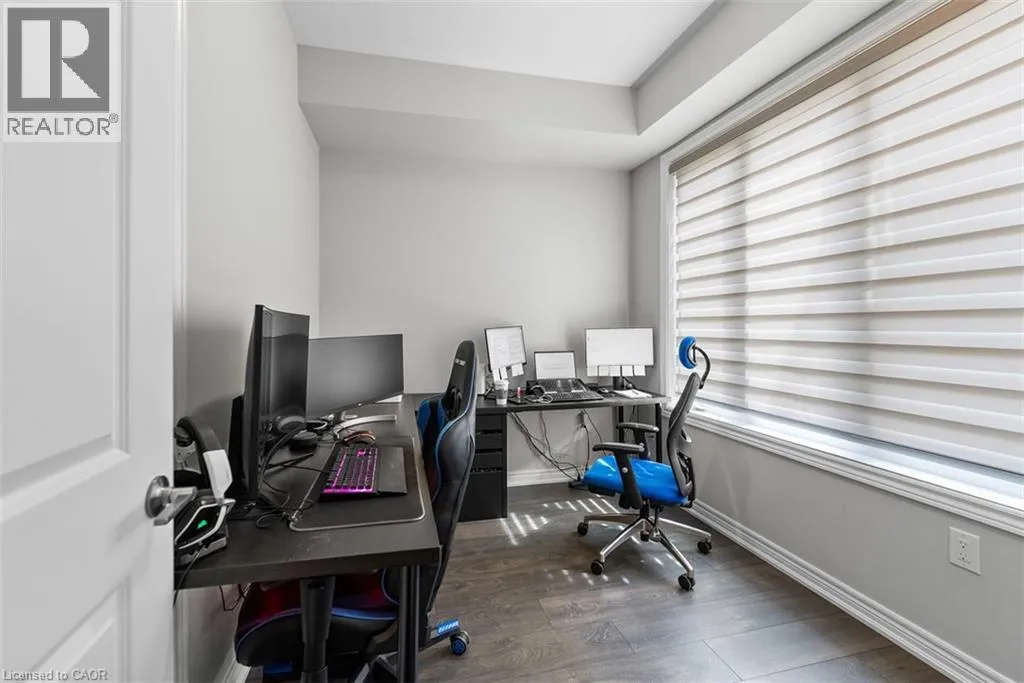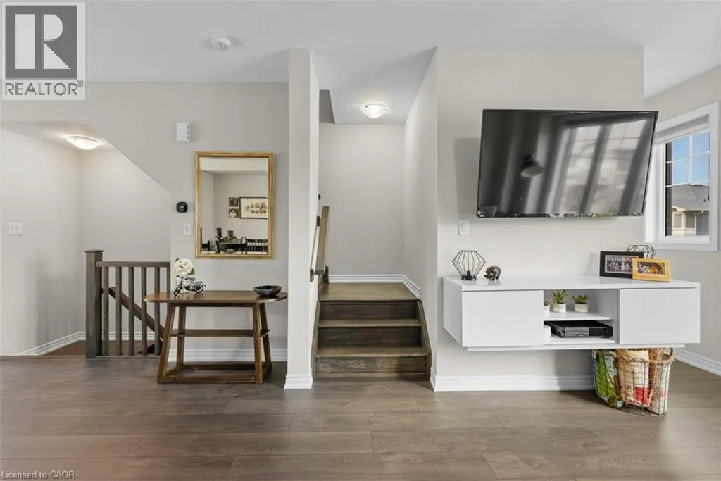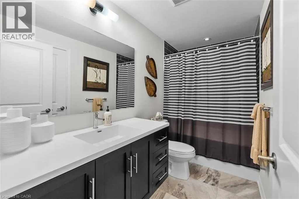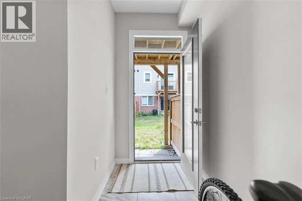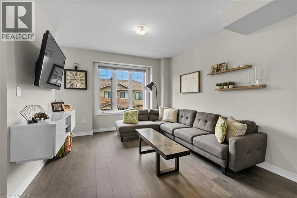 King St. to Quigley Rd. to Albright Rd. to Hibiscus Ln. Rare 4 bedrooms 4 Baths Stunning 3 storey Upgraded Townhome in a sought after neighborhood of East Hamilton conveniently located close to public transportation, schools, GO Station, Hospital, Parks & Amenities. Welcome to modern living with open concept layout and large windows feeling the home with sunlight featuring 9 foot ceilings, carpet free floors on main & 2nd floor. The main floor features a Bedroom and full bathroom which can be used as in law suite or a private office with access to the garage, basement and backyard. The 2nd floor via oak stairs features a gourmet kitchen with lots of pantry space, quartz counter top with undermount sink, subway tile backsplash, valence lighting, a huge island with pendant lighting, access to patio deck, open to the living/dining room and powder room. The 3rd floor via oak stairs features 3 bedrooms , 2 full baths with quartz counter tops vanities & Stacked Laundry closet. This home provides modern lifestyle living with practical space and the unfinished basement ready for your personal touch. (id:27476)