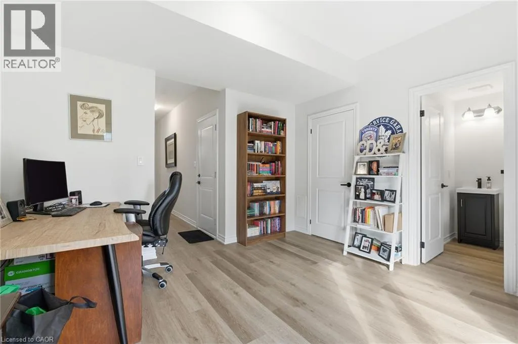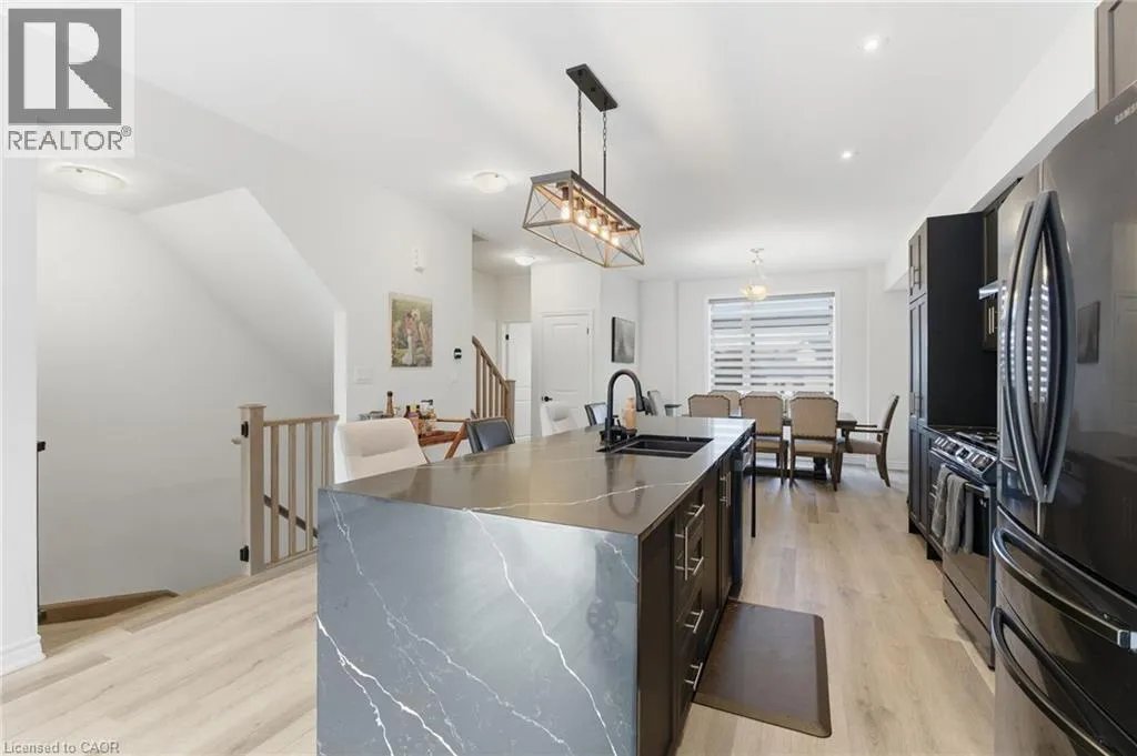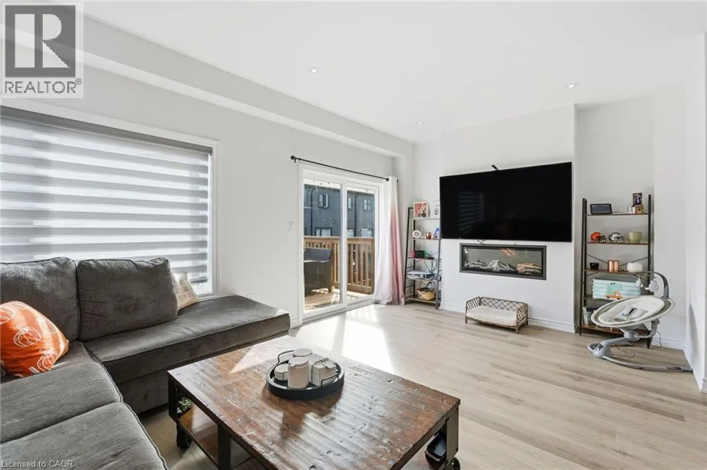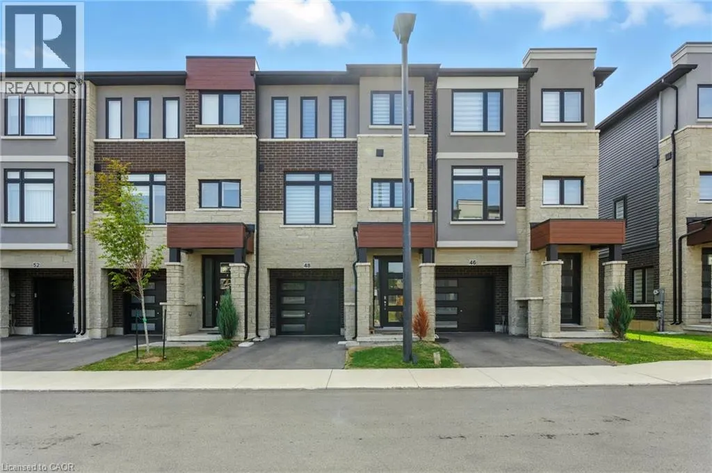 Sanatorium & Southam Welcome to this stunning three-storey townhome in the highly desirable Hamilton Mountain community! Only three years old, this bright and spacious home offers modern living at its best, featuring 3 bedrooms and 4 bathrooms in a beautifully designed layout. The main floor offers a versatile family room complete with a convenient two-piece bath â perfect for a home office, playroom, or additional living space. Sliding doors provide easy access to the backyard, creating seamless indoor-outdoor living. Upstairs, the open-concept second floor is filled with natural light and showcases a gourmet kitchen with a 10-foot island, stainless steel appliances, and a generous dining area. The spacious living room opens to an oversized deck, ideal for entertaining or relaxing outdoors. Upgraded pot lights throughout enhance the warm, inviting atmosphere. The third-floor features three generously sized bedrooms, including a primary suite with a walk-in closet and a stylish ensuite bathroom. Enjoy the convenience of a full-size washer and dryer located just off the primary bedroom. This home also offers access to fantastic community amenities, including a playground, bocce court, and putting green. Visitor parking is conveniently located right across from the home. Perfectly situated near shopping, schools, public transit, highways, and the LINC, this home combines comfort, functionality, and lifestyle â with nothing to do but move in and enjoy. (id:27476)