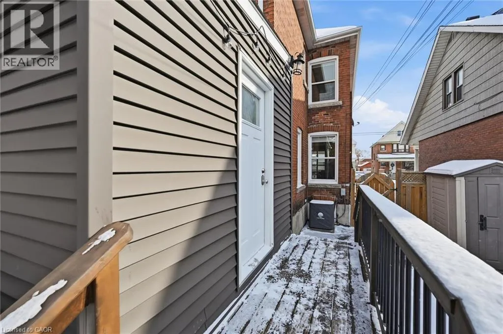 DUNSMURE AVE/BELLVIEW AVE Welcome home! This beautifully renovated detached century home offers 3 bedrooms and 2 full bathrooms, thoughtfully updated from top to bottom, inside and out. Step onto the newly replaced front porch and into a bright, open living and dining area showcasing refinished hardwood floors, crown moulding, and a cozy electric fireplace that highlights the homeâs timeless charm and character. The white eat-in kitchen has been replaced and features quartz countertops, stainless steel appliances, and direct access to a generous bonus space; perfect as a mudroom and pantry. The private, fully fenced backyard is a true retreat, complete with a newly replaced upper porch and lower deck surrounded by mature trees. Upstairs, the spacious primary bedroom features a bay window and a large closet with built-in organizers. Two additional spacious bedrooms, all with refinished hardwood floors, and a beautifully renovated 4-piece bathroom complete the second level. The fully finished lower level adds exceptional value with a comfortable recreation room, laundry area, large storage room, and a full 3-piece bathroom, ideal for guests or extra living space. Extensive updates include a replaced roof and eaves, siding, exterior doors, windows, driveway, porches, air conditioning, lead water service replacement, and backflow valve. Located in the heart of Downtown Hamilton, this beautiful, bright and spacious turnkey home is within walking distance to Gage Park and close to Hamilton GO, vibrant restaurants, shopping, and quick access to the QEW and Red Hill. A perfect opportunity to own in Hamiltonâs growing and dynamic market, do not miss it! (id:27476)