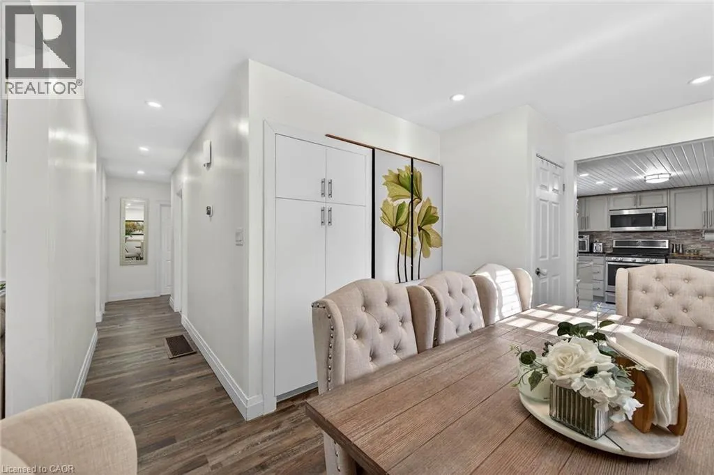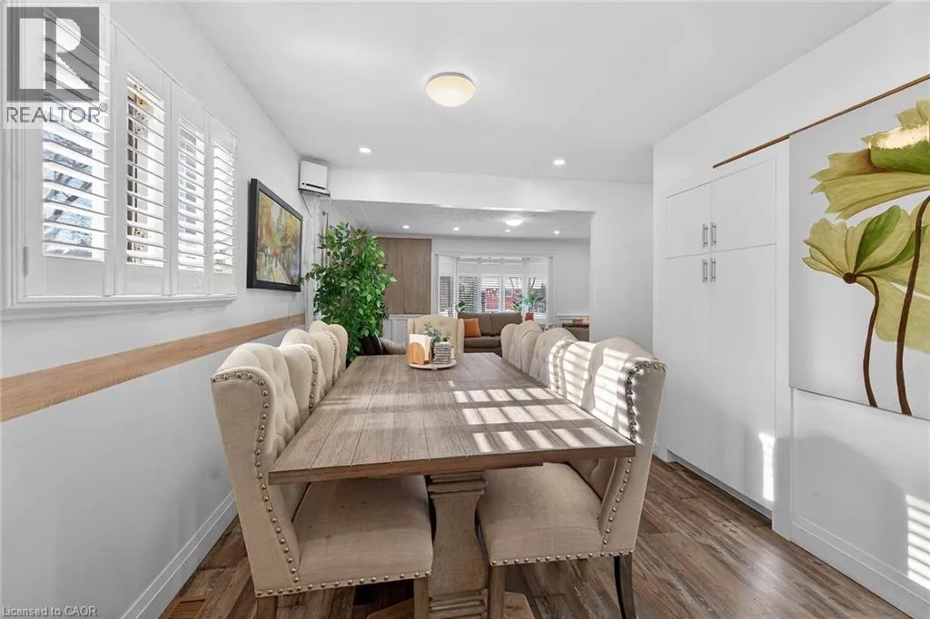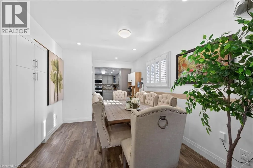 MOHAWK RD OR FENNELL RD TO MOUNTAIN BROW BLVD TO BROKER DR AND KING FOREST This beautiful home offers a flexible 3+2 bedroom layout, two bathrooms, and two kitchens. Basement has a separate entrance, kitchen and bathroom making it ideal for extended family (in-law suite) or added living space. Features include laminate and hardwood floors, numerous updates, and a spacious functional layout throughout. A long private driveway provides ample parking. Great Location by escarpment trail situated minutes to Arms Lookout park on Mountain Brow, Hamilton's most desirable neighbourhood. Sits on a beautiful tree-lined street and is close to Kings Forest Golf course and tons of trails & walking paths. Also walking distance to Mohawk Sports Complex, Liuna 4 Ice centre and Mount Albion Falls. Minutes to Red Hill Valley Parkway and Upper Mount Albion Power Centre and much more....... Direct bus to downtown Hamilton, Mohawk college and Lime Ridge Mall. The fully fenced rear yard is a true highlight, featuring perennial gardens, a dog run, excellent privacy, and plenty of potential. Meanwhile with great curb appeal and a prime location close to , this property offers comfort, convenience, and versatility. (id:27476)
