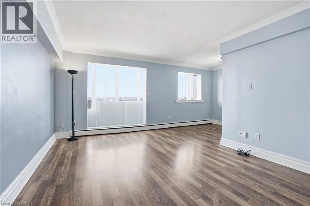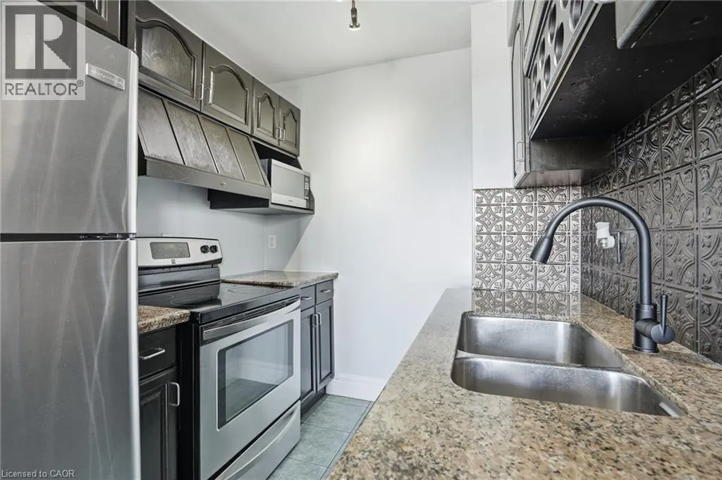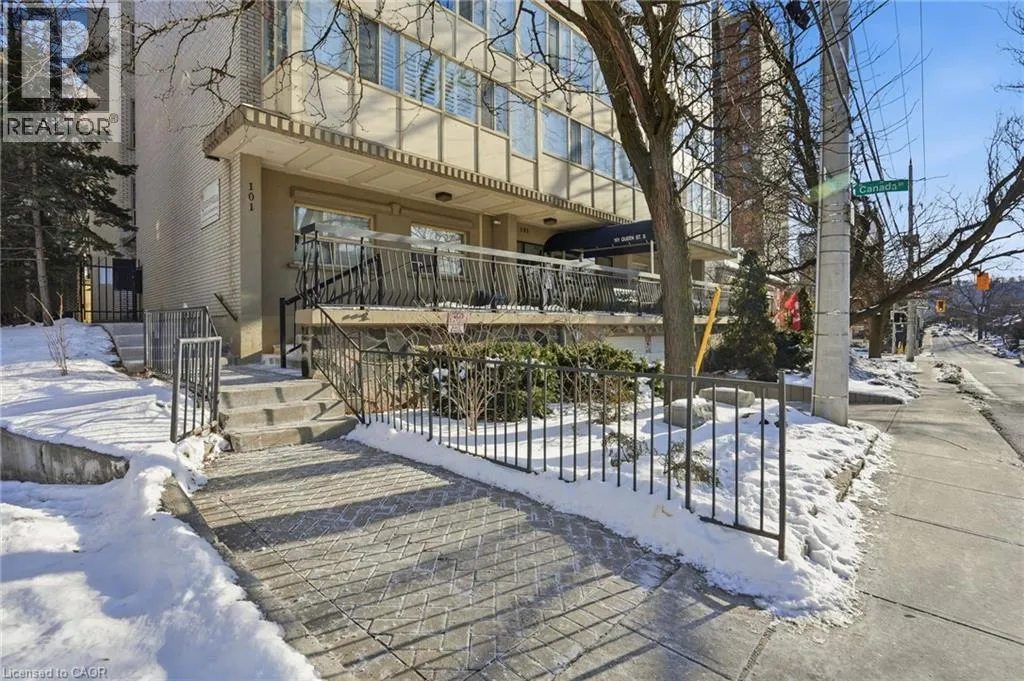 King St W to Queen St S before Hunter St W Welcome to this move in ready one bedroom, 8th floor penthouse that shows beautifully from top to bottom. The bright, carpet free layout offers a well appointed kitchen with stainless steel appliances, flowing nicely into the living space and out to a fully enclosed balcony perfect for year-round use while taking in scenic views of the escarpment. Located in a highly desirable West Hamilton neighbourhood, youâre just minutes from Locke Street and Hess Village, with their popular shops, restaurants, and cafes. The spacious bedroom features ensuite access to the bathroom, creating a comfortable and functional layout. Pride of ownership is evident throughout, making this an ideal option for first-time buyers, downsizers, or investors looking for a low-maintenance property. Easy access to Hwy 403, public transit, hospitals, schools, and everyday amenities adds to the convenience. The unit includes one parking space and one locker, and condo fees cover water, hydro, heating, and building insurance, offering excellent value and stress-free living. Donât be TOO LATE*! *REG TM. RSA. (id:27476)