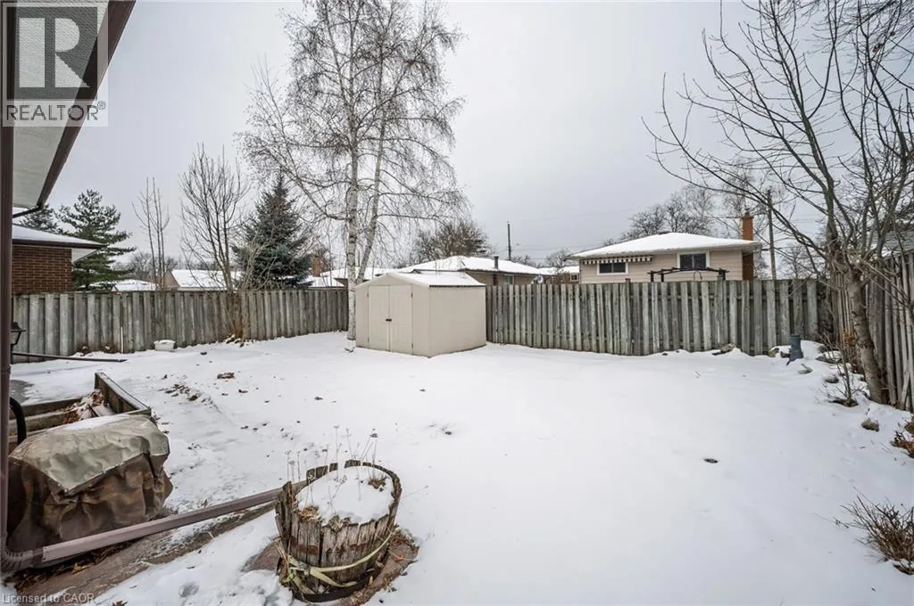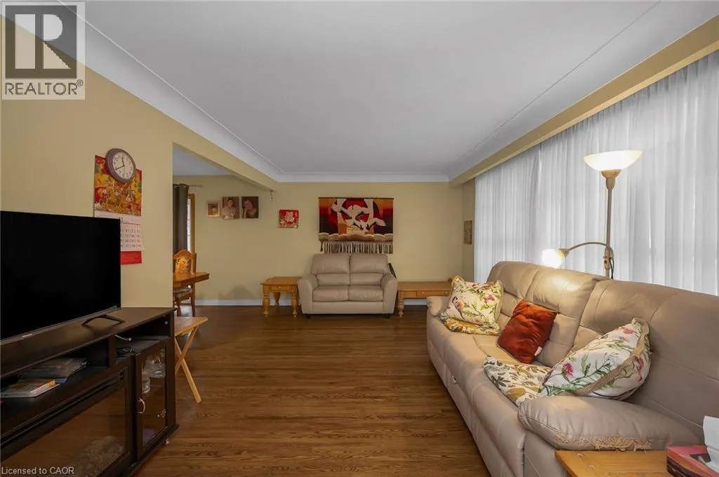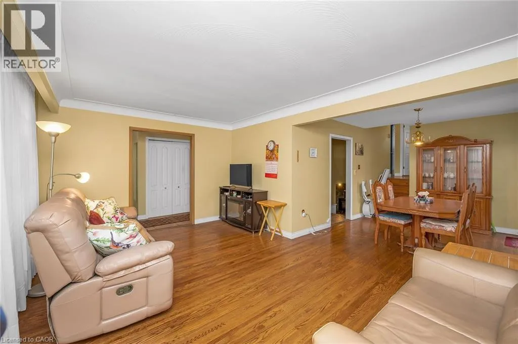 Tucked away on a quiet court in a family-friendly pocket of Stoney Creek, this detached backsplit offers space, flexibility, and outstanding value for growing families, first-time buyers, and savvy investors alike. The main level features a bright and spacious living room with oversized windows and hardwood flooring, a dedicated dining area with matching hardwood and a patio door that leads to both the side patio and rear yard, and a generous kitchen ready for your personal touch. Hardwood continues to the second level hall, where you'll find three well-sized bedrooms, including a large primary retreat, and a full 4-piece bath. The lower level adds exceptional versatility with a sprawling family room featuring a cozy gas fireplace, a 2-piece bath, and a large utility/storage area with a walk-out to the backyard-ideal for creating an in-law suite, teen retreat, or income potential. Located minutes from neighbourhood parks, playgrounds, and everyday conveniences, this home sits within catchments for nearby public and Catholic schools, making it a smart choice for families. Commuters will love the quick access to the Red Hill Valley Parkway, the LINC, QEW, and Highway 403, along with nearby transit and GO options for effortless travel across the GTA.A rare opportunity on a peaceful court-move in, personalize, and unlock the full potential of this home. Book your showing today before it's gone. (id:27476)