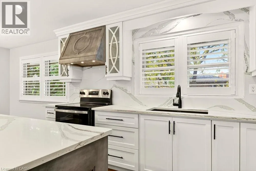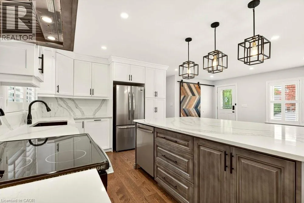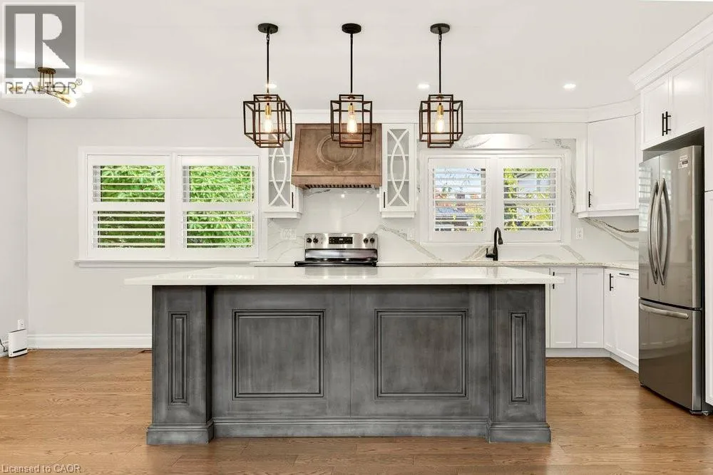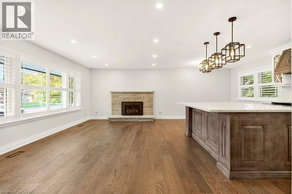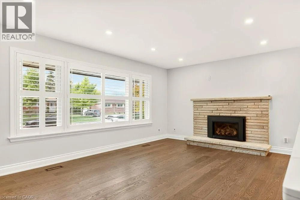 West of Garth St between Mountain Cres Ave and Westcliffe Ave *Main level unit. Experience refined living in this newly renovated mid-century bungalow, located in one of Hamiltonâs most sought-after escarpment neighbourhoods - Westcliffe East. This sprawling main floor unit offers exclusive use of the full double driveway and a beautifully landscaped yard. Inside, the home features an open-concept layout with a custom-designed kitchen, quartz countertops, and a large island with seating for five. Ideal for entertaining or casual dining. Enjoy brand-new stainless-steel appliances, engineered oak hardwood flooring, and a gas fireplace framed by the homeâs original stone surround, blending modern luxury with timeless character. The home includes three spacious bedrooms, each with ample closet space, and a designer bathroom complete with a rainfall shower, floating double vanity, and accent lighting for a spa-like experience. Additional highlights include in-suite laundry, premium finishes throughout, for effortless living. Nestled on a quiet street along the Niagara Escarpment, this address offers the perfect balance of nature and convenience. Steps to scenic lookouts, hiking trails, parks, tennis courts, and golf courses, while remaining close to shopping, restaurants, reputable schools, and quick access to downtown and major highways. (id:27476)