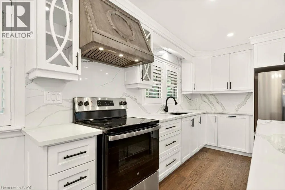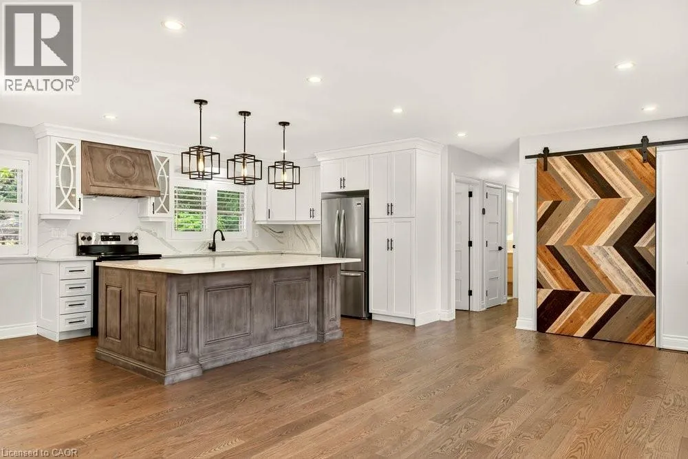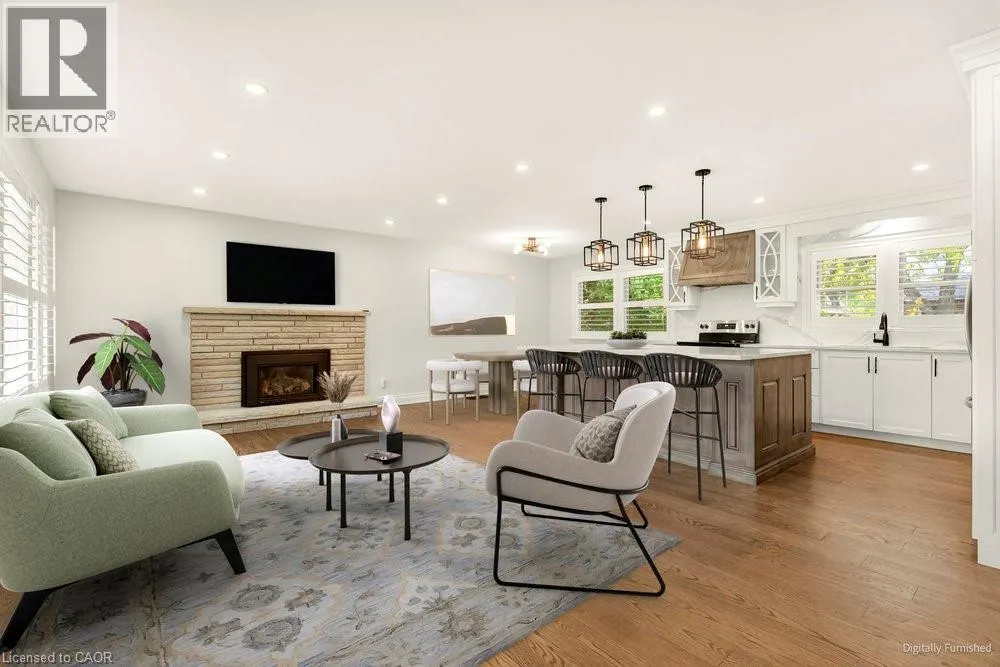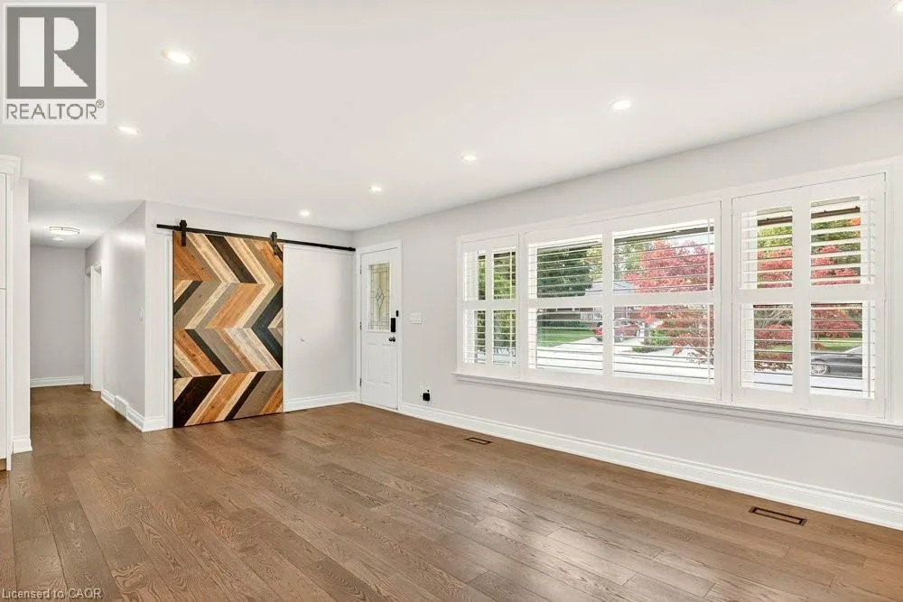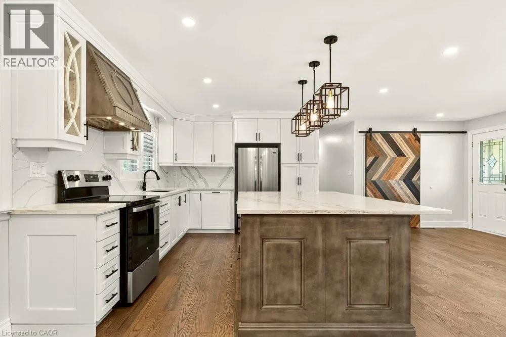 West of Garth St between Mountain Cres Ave and Westcliffe Ave *Main level unit. Experience refined living in this newly renovated mid-century bungalow, located in one of Hamiltonâs most sought-after escarpment neighbourhoods - Westcliffe East. This sprawling main floor unit offers exclusive use of the full double driveway and a beautifully landscaped yard. Inside, the home features an open-concept layout with a custom-designed kitchen, quartz countertops, and a large island with seating for five. Ideal for entertaining or casual dining. Enjoy brand-new stainless-steel appliances, engineered oak hardwood flooring, and a gas fireplace framed by the homeâs original stone surround, blending modern luxury with timeless character. The home includes three spacious bedrooms, each with ample closet space, and a designer bathroom complete with a rainfall shower, floating double vanity, and accent lighting for a spa-like experience. Additional highlights include in-suite laundry, premium finishes throughout, for effortless living. Nestled on a quiet street along the Niagara Escarpment, this address offers the perfect balance of nature and convenience. Steps to scenic lookouts, hiking trails, parks, tennis courts, and golf courses, while remaining close to shopping, restaurants, reputable schools, and quick access to downtown and major highways. (id:27476)