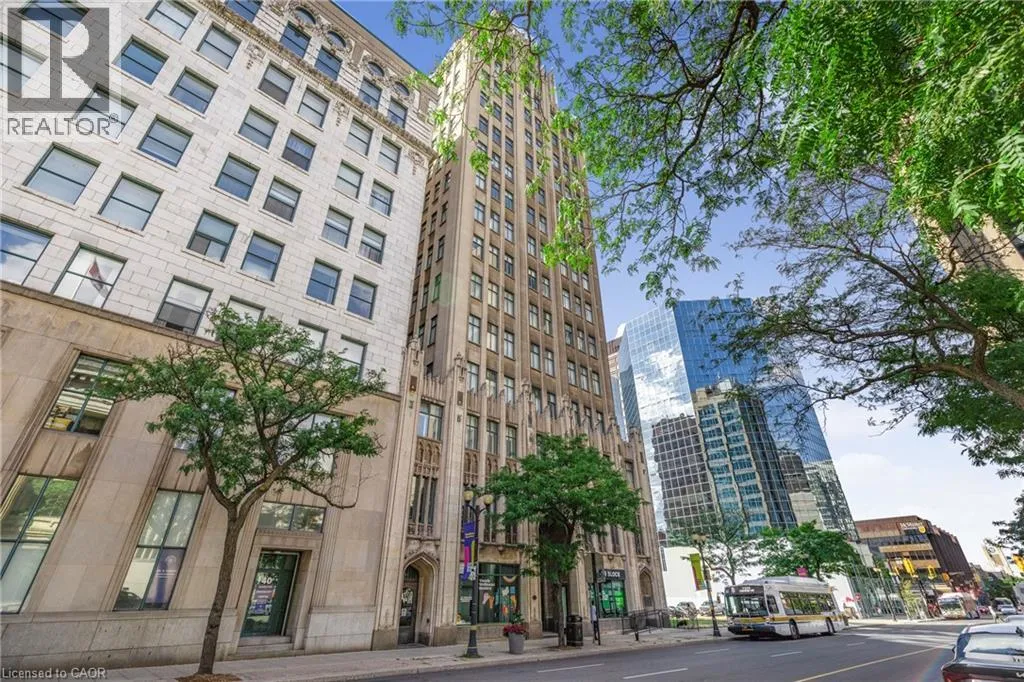 Beautiful open-concept condo in the iconic Pigott Building, blending modern updates with timeless character. Sunlight pours through oversized windows, highlighting the updated, neutral finishes and spacious layout. Enjoy generous closet space, including a large living room closet that can easily be transformed into a built-in media/TV area. Convenient in-suite laundry and fibre optic internet add everyday ease. Move-in ready with owned parking space and locker included. Many utilities and gym access are included in the condo fee. Own a piece of Hamilton history just steps to trendy shops and restaurants, the James St. N. arts district, transit and the GO Stationâplus minutes to hospitals, Mohawk College, and McMaster University. (id:27476)