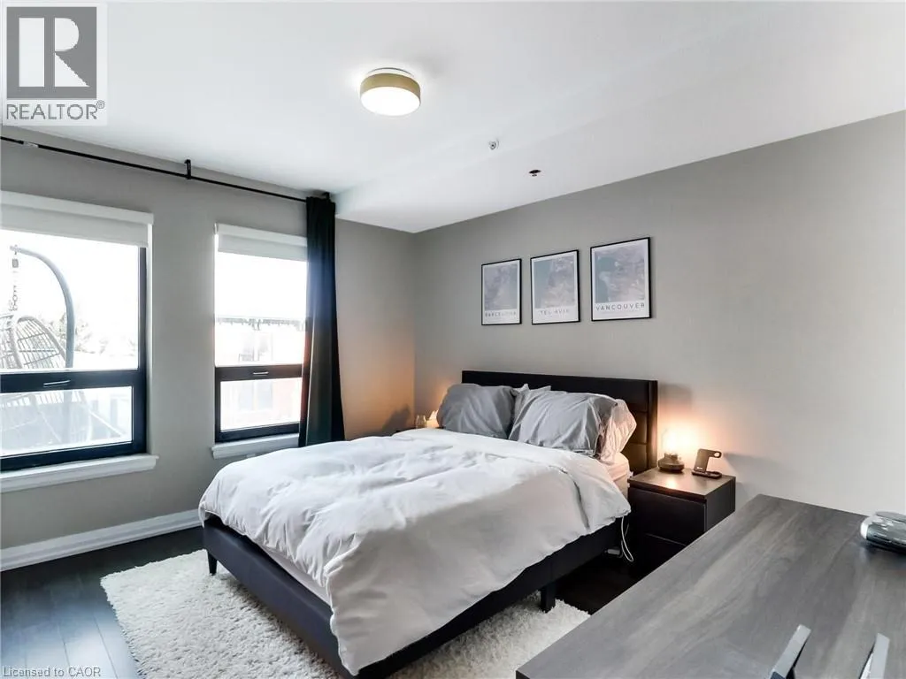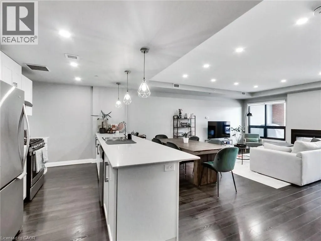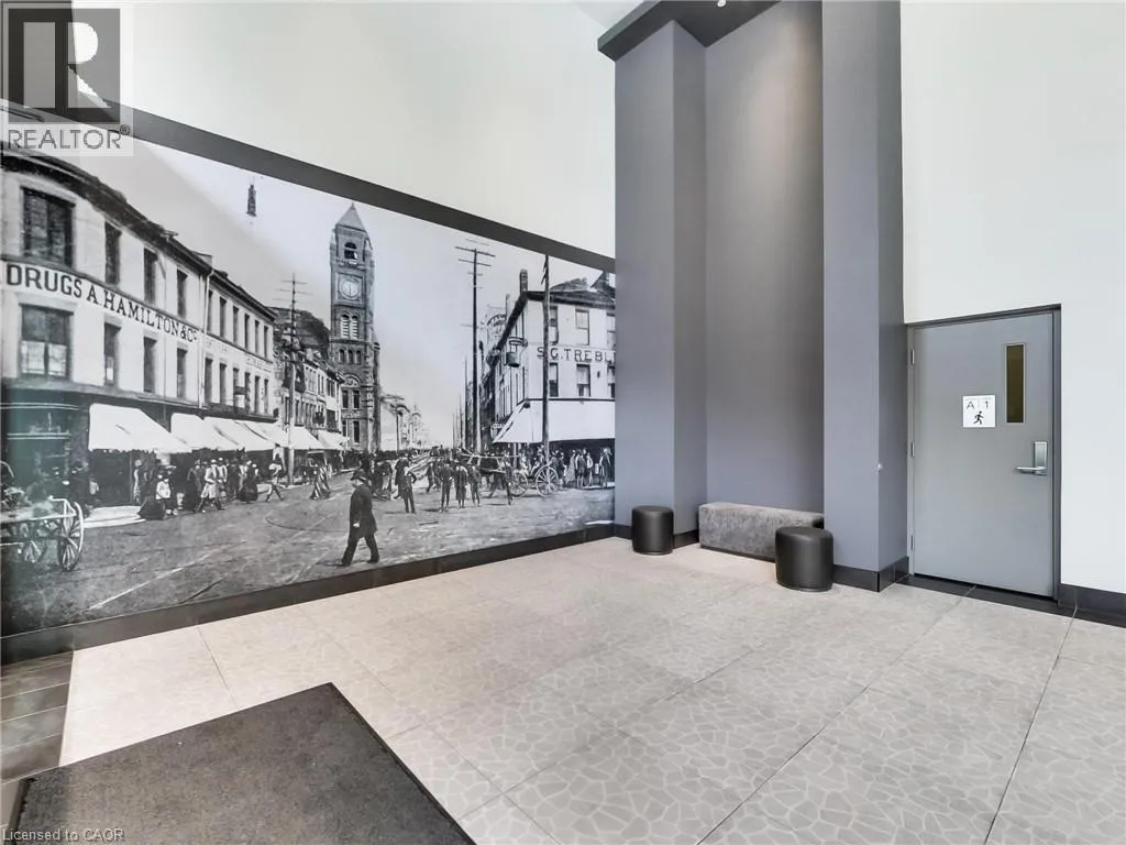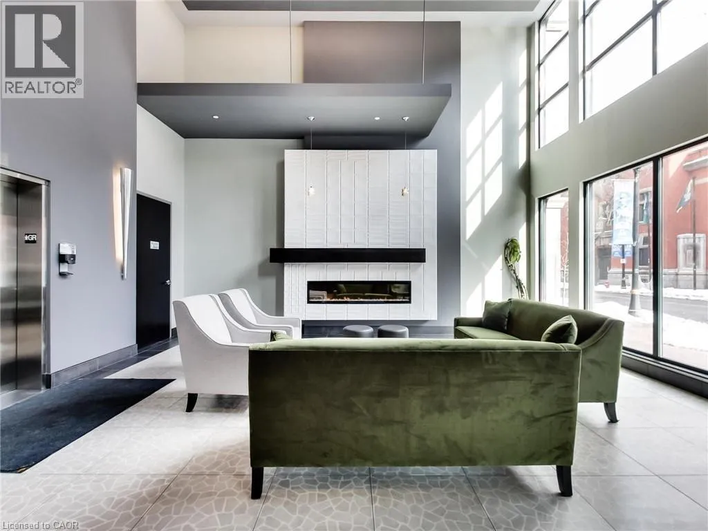 James Street between Cannon St W & Barton St W, at corner of Mulberry St Acclamation Condos - Boutique Downtown Living with Rare & expansive Outdoor Space that includes a Fireplace! Welcome to this exceptionally spacious 1 bedroom plus large solarium suite, offering 1087 sq ft of interior living space plus a rare 450 sq ft private terrace - an outdoor extension seldom found in downtown Hamilton condominiums. Designed for flexibility, the solarium functions as a true second room, ideal for a home office, guest space or studio, allowing this suite to live more like a small two-bedroom. The north-facing exposure provides consistent natural light without excessive heat, making both the interior and terrace comfortable and usable throughout the day. A standout feature of this suite is the dual-sided indoor / outdoor fireplace, creating a seamless connection between the interior living area and the terrace. Enjoy the fireplace from inside during cooler months, or while entertaining and relaxing outdoors - a rare architectural feature that elevates both comfort and lifestyle. The highlight of this home is the oversized terrace, large enough to accommodate full outdoor dining, lounge seating and container gardens. This is not a typical balcony, but a true outdoor room - ideal for entertaining, working from home or unwinding in a private setting. Your pet will love this feature! The unit includes one underground parking space and one locker. Located on vibrant James Street North, steps to cafés, restaurants, galleries, transit and the GO Station, this offering combines generous interior space, exceptional outdoor living, a rare fireplace feature, and income security in one of Hamilton's most dynamic downtown neighbourhoods. (id:27476)