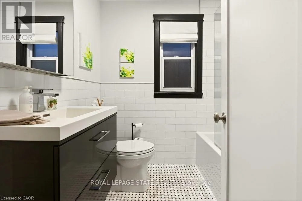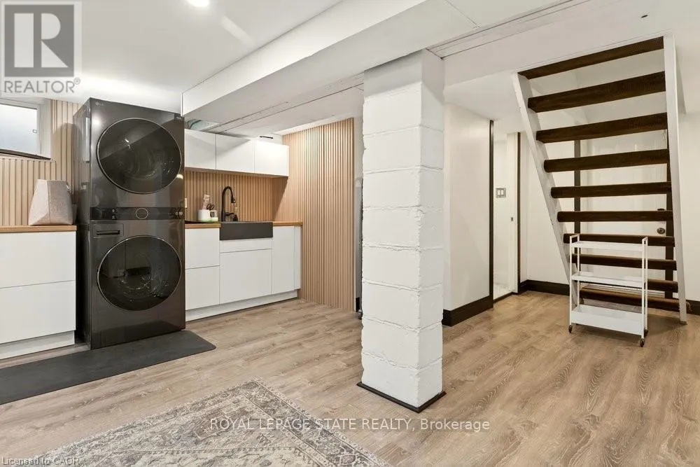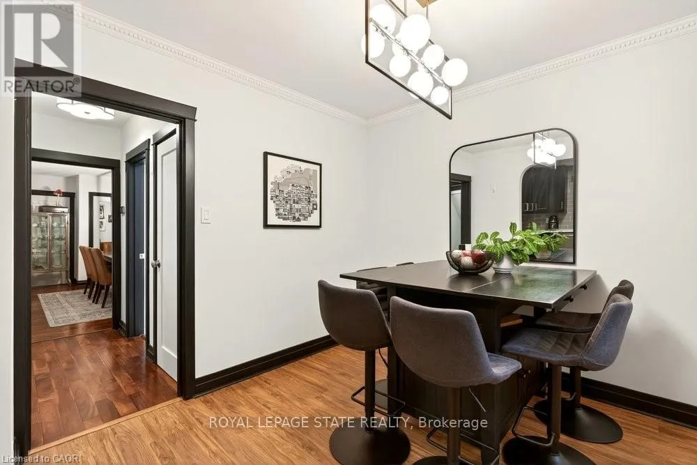 Cross Streets: Main St W. ** Directions: South side of Main St. W., Between Main St W & Westwood Ave. This beautifully updated 1 3/4-storey home is much larger than it appears and ideally located within walking distance to McMaster University, Westdale Village, schools, the Rail Trail, recreation centres, and GO access. Thoughtfully updated throughout, it blends timeless character with modern comfort and impressive versatility. Attractive curb appeal is enhanced by landscaped front gardens, while the fully fenced backyard with lawns and cement patio provides a private space to relax or entertain. Inside, the home is filled with natural light, fresh décor, and original details such as cove ceilings and gumwood trim. Stunning, professionally designed kitchen w/ built-in appliances, induction cooktop & double ovens, ample cabinetry, and a bright breakfast area with walkout to the enclosed porch and backyard. A main-floor bedroom (currently used as a dining room) and updated 4-piece bath allow for flexible or one-floor living. Upstairs are 2 bedrooms, including a spacious primary with w/in closet and electric fireplace, and updated 3-piece bath. This level offers both interior and separate exterior access-ideal for extended family or independent living. The finished lower level includes a bedroom, updated 3-piece bath, laundry, storage, and cabinetry with sink and fridge, offering in-law or kitchenette potential. The attached garage has an inside private entry to the basement for a private living area. A rare opportunity featuring location, flexibility, and updates, in a great West Hamilton neighbourhood! (id:27476)