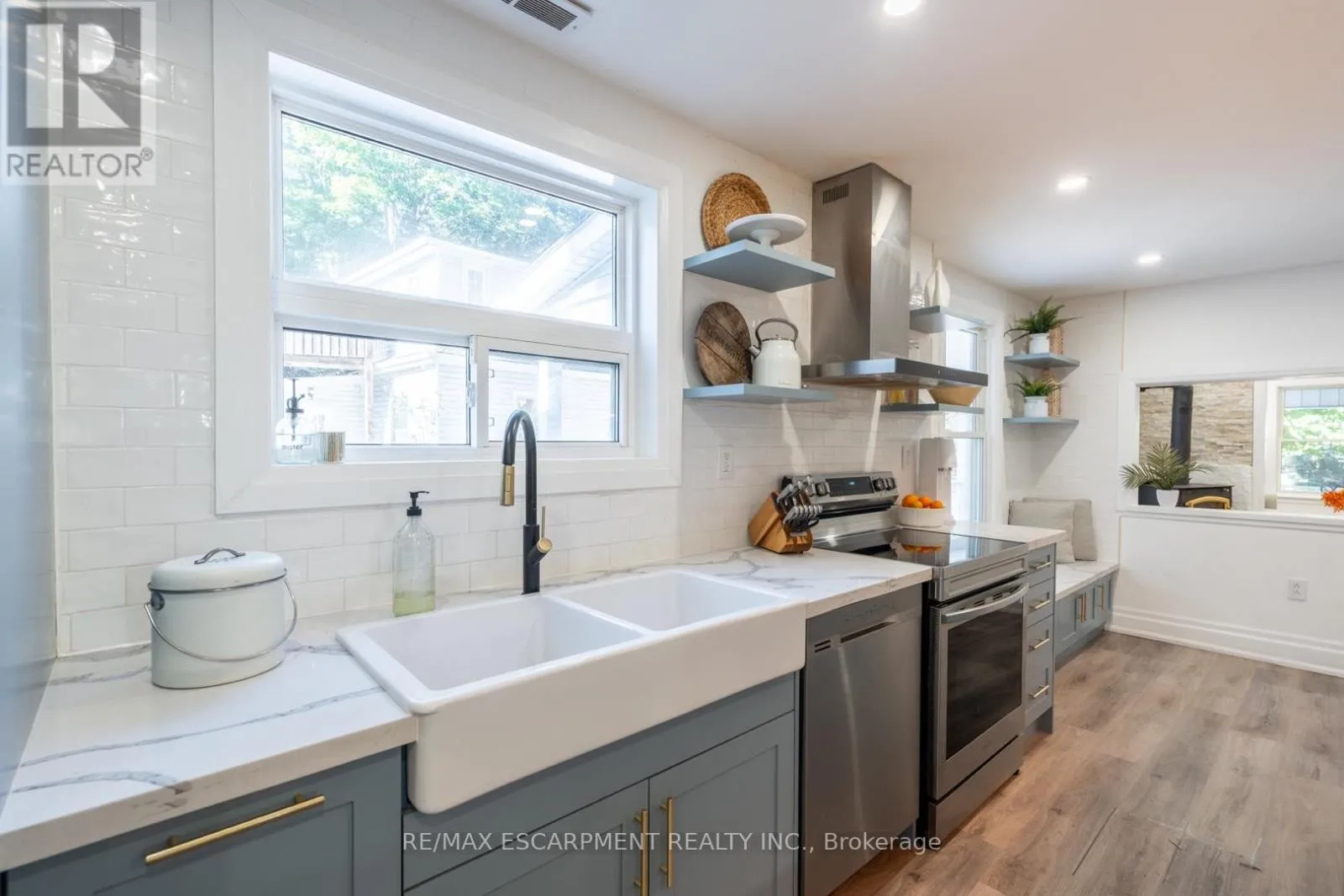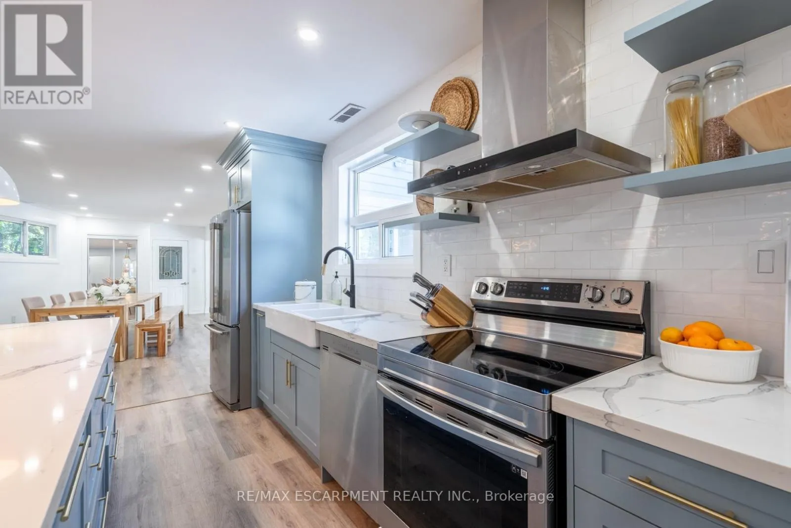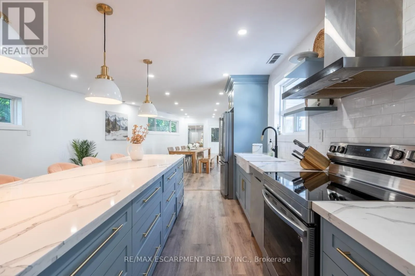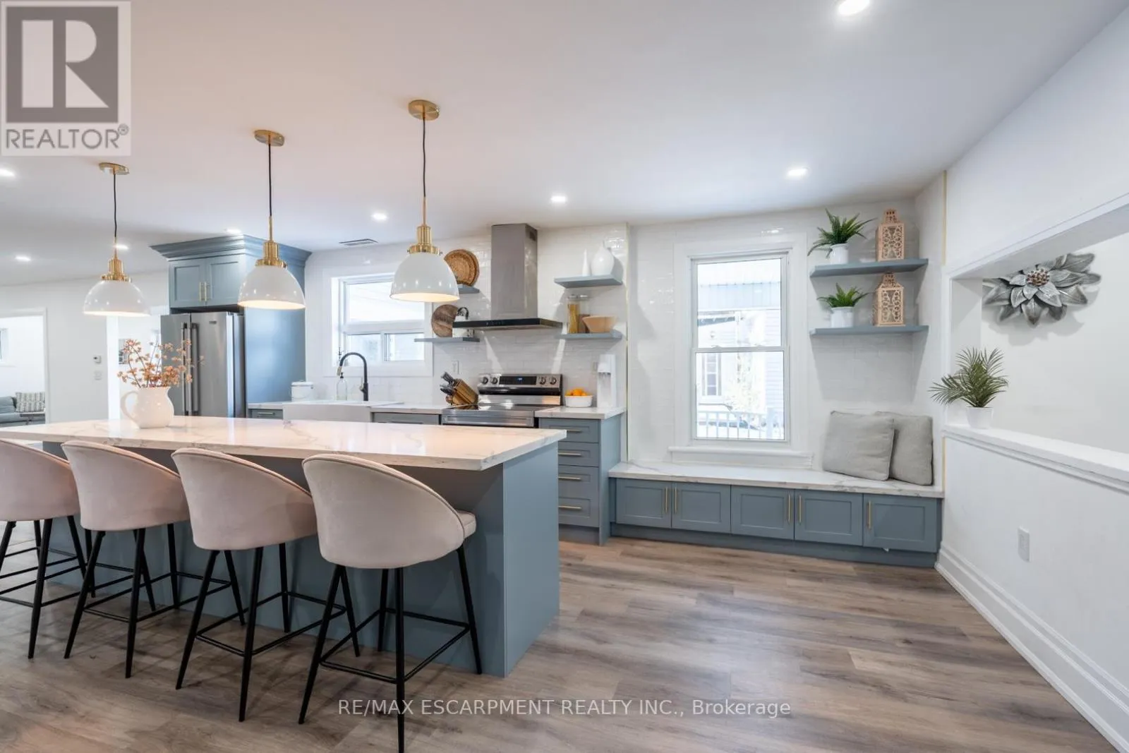 Cross Streets: -. ** Directions: QUEEN ST S TO HIGHWAY 8. Nestled in the cozy community of Greensville, this updated beauty is sure to impress. Step inside to a bright and fresh vibe in this one-of-a-kind family home. The updated kitchen features a large island with quartz countertops, quiet close cabinets, apron sink, stainless steel appliances and chic pendant lights. Off the kitchen is a large dining area fit for large family dinners. The spacious family room is the perfect bonus space for family gatherings with its vaulted ceiling, pot lights, and plenty of windows creating a welcoming space. At the front of the house, the formal living room provides additional space for kids or great to unwind with a glass of wine and your favourite book. Enjoy the sitting area with gas fireplace and views into the kitchen and formal living room. The second level features two updated bedrooms and two full bathrooms. The third floor has the primary bedroom with plenty of space to create a home office or lounge area. Head outside via the wrap-around porch to your backyard where you'll find a large shop with future potential! Welcome home to 69 Highway 8. RSA. (id:27476)