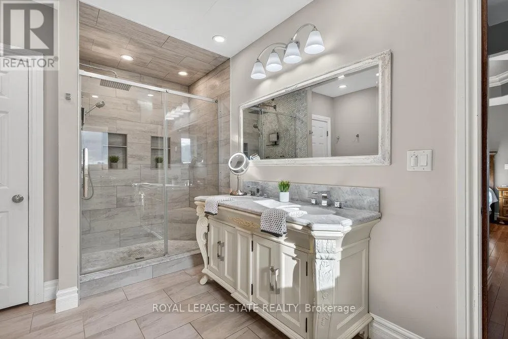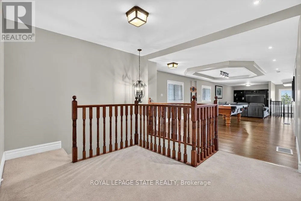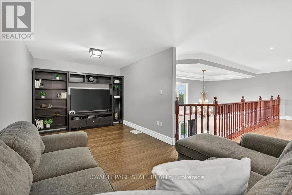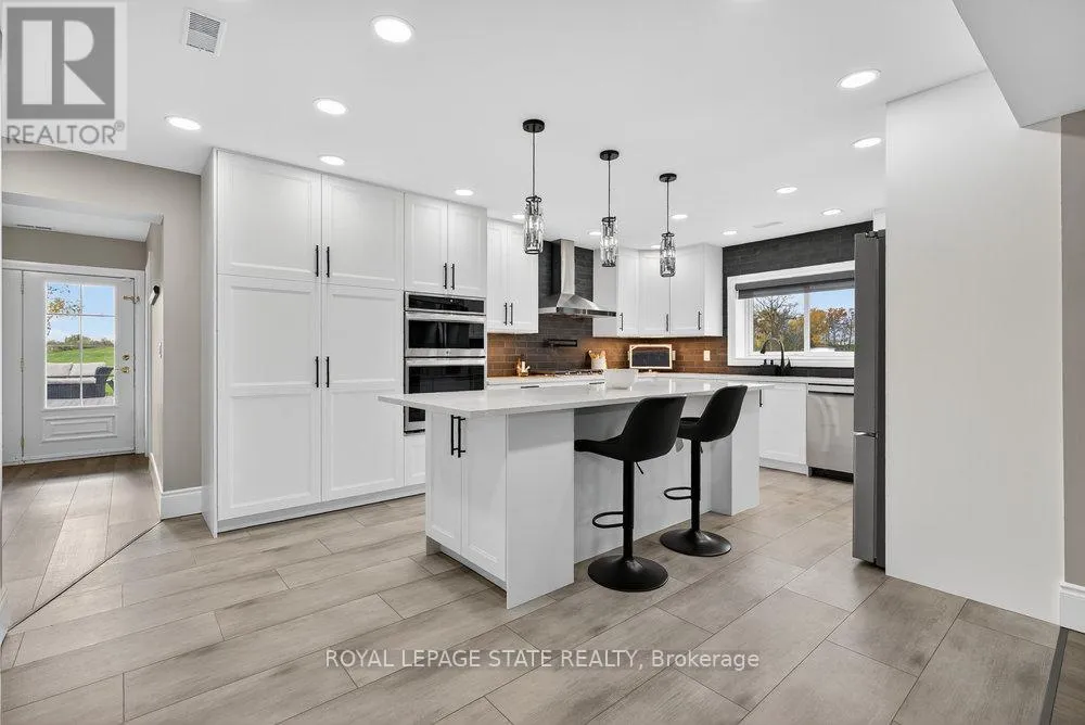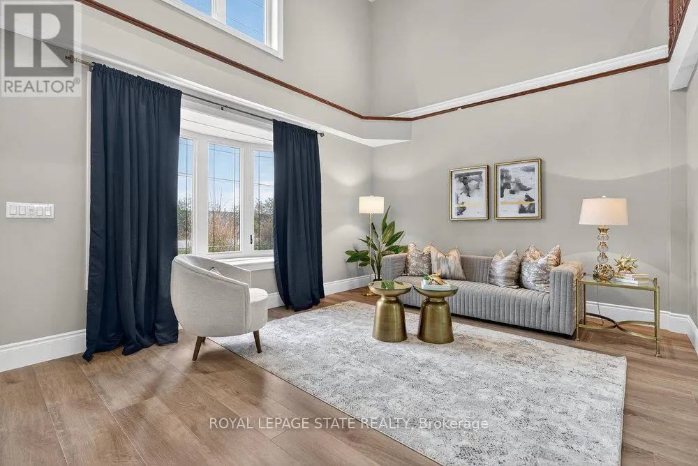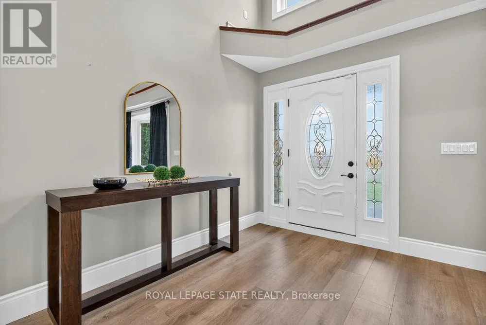 Cross Streets: Ridge Rd. ** Directions: south on Fruitland Rd - right onto Highway 8 - left on Dewitt Rd - right at Ridge Rd - left on First Rd E - right onto Green Mountain Rd E. Welcome to 74 Green Mountain Road where spacious country living meets city convenience! Discover the perfect blend of rural tranquility and modern comfort in this stunning 5,200 sq. ft. two-story home, ideally located just minutes from city amenities. Designed for those who value space and versatility, it's perfect for large families, multigenerational living, or anyone needing room for hobbies, vehicles, or a home business. Step inside to a bright, open-concept layout featuring a grand two-story front sitting room, spacious living and dining areas with a two-sided gas fireplace, and a beautifully updated kitchen (2024) with quartz counters, built-in appliances, a large island, and breakfast bar. Enjoy main and second-floor offices, a generous mudroom with custom built-ins, and flexible living and storage spaces. Entertainment options abound with a games room, theatre room, and multiple gathering areas. Recent upgrades include luxury vinyl and hardwood flooring (2024), designer ceilings, updated baths, new lighting, pot lights, and fresh paint. Outside, enjoy an attached drive-thru quad garage with double storage addition (six roll-up doors), extensive concrete driveways, patios, and 55 privacy cedars for a peaceful retreat. Relax with morning coffee or sunset views from the south-facing primary balcony. With updates to the roof, furnace, and AC, this move-in ready home offers comfort, abundance, and connection to both nature and convenience. (id:27476)