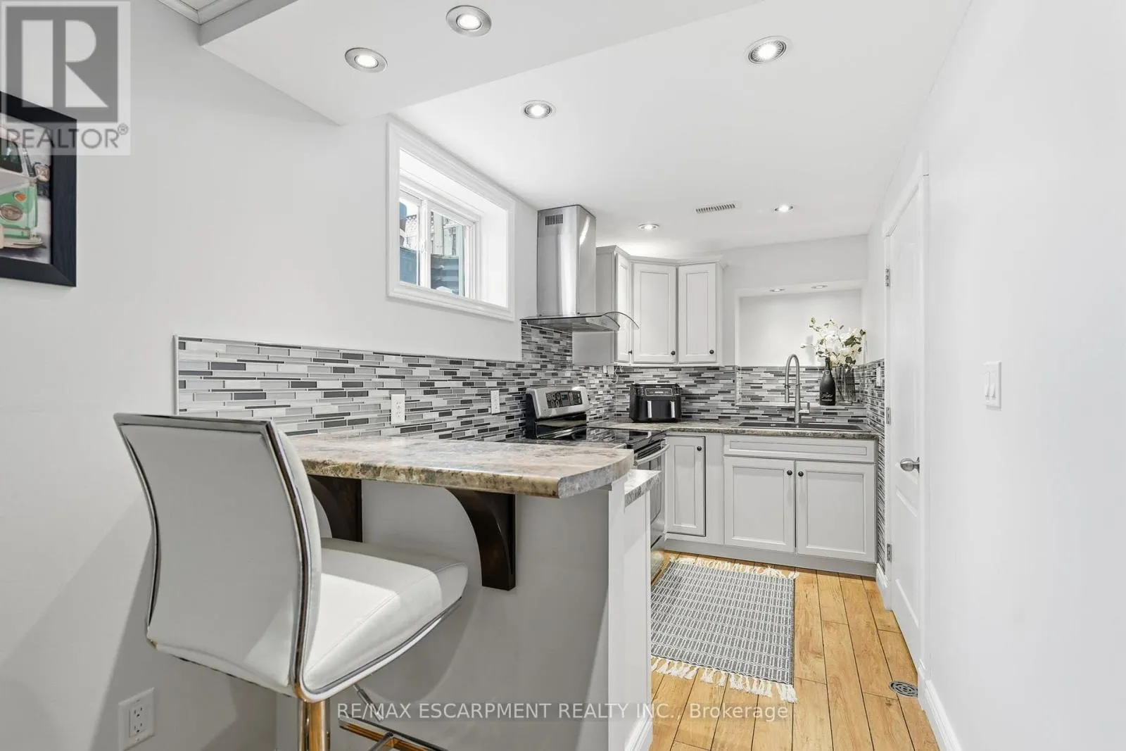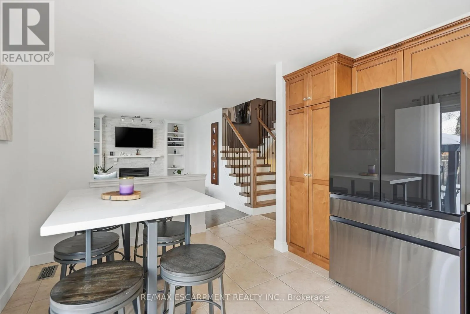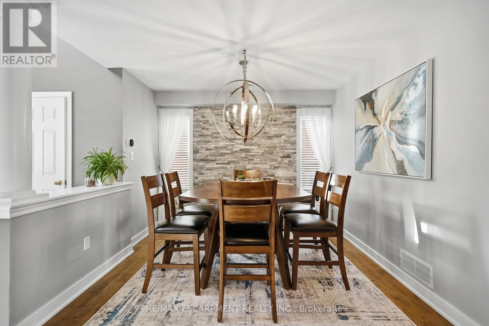 Cross Streets: Wills Crescent. ** Directions: Tanglewood Drive Wills Crescent Wilbur Drive. This John Bruce Robinson quality-built home is located on a wide, quiet, tree-lined street in one of Binbrook's established neighbourhoods. The exterior includes an interlock stone driveway with front, side, and rear walkways, landscaped gardens, a gazebo, shed, raspberry bushes, a vegetable garden, and a natural gas garage heater. The main floor offers a functional layout with a separate dining room featuring a feature wall, a living room with gas fireplace and feature wall, an eat-in kitchen with quartz countertops, backsplash, and backyard access, as well as a main-floor laundry room and 2-piece bath. The upper level includes three bedrooms, with the primary bedroom featuring a walk-in closet and 4-piece ensuite, while the secondary bedroom also includes a walk-in closet and quartz countertops in all upper-level bathrooms. The finished basement provides additional living space with a second kitchen, 2-piece bathroom, storage areas, and flexible rooms, and the home is carpet-free with hardwood, tile, laminate, engineered flooring and fresh paint. With proximity to parks, schools, shopping, conservation areas, and the Centennial GO Station. (id:27476)