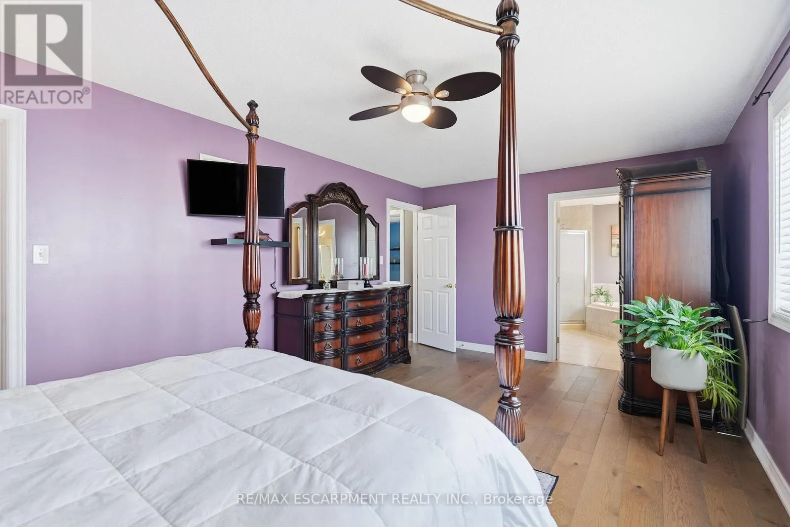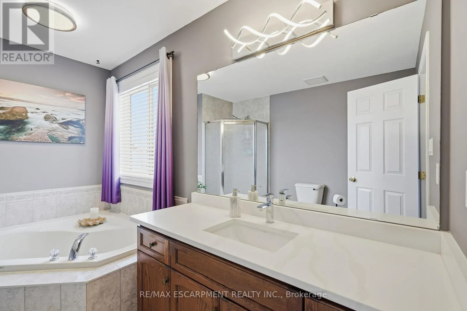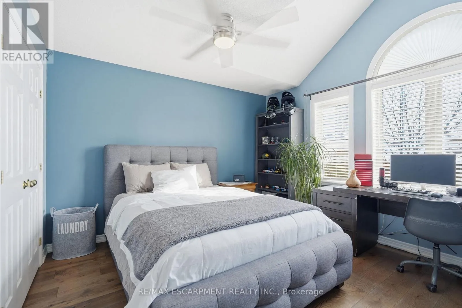 Cross Streets: Wills Crescent. ** Directions: Tanglewood Drive Wills Crescent Wilbur Drive. This John Bruce Robinson quality-built home is located on a wide, quiet, tree-lined street in one of Binbrook's established neighbourhoods. The exterior includes an interlock stone driveway with front, side, and rear walkways, landscaped gardens, a gazebo, shed, raspberry bushes, a vegetable garden, and a natural gas garage heater. The main floor offers a functional layout with a separate dining room featuring a feature wall, a living room with gas fireplace and feature wall, an eat-in kitchen with quartz countertops, backsplash, and backyard access, as well as a main-floor laundry room and 2-piece bath. The upper level includes three bedrooms, with the primary bedroom featuring a walk-in closet and 4-piece ensuite, while the secondary bedroom also includes a walk-in closet and quartz countertops in all upper-level bathrooms. The finished basement provides additional living space with a second kitchen, 2-piece bathroom, storage areas, and flexible rooms, and the home is carpet-free with hardwood, tile, laminate, engineered flooring and fresh paint. With proximity to parks, schools, shopping, conservation areas, and the Centennial GO Station. (id:27476)