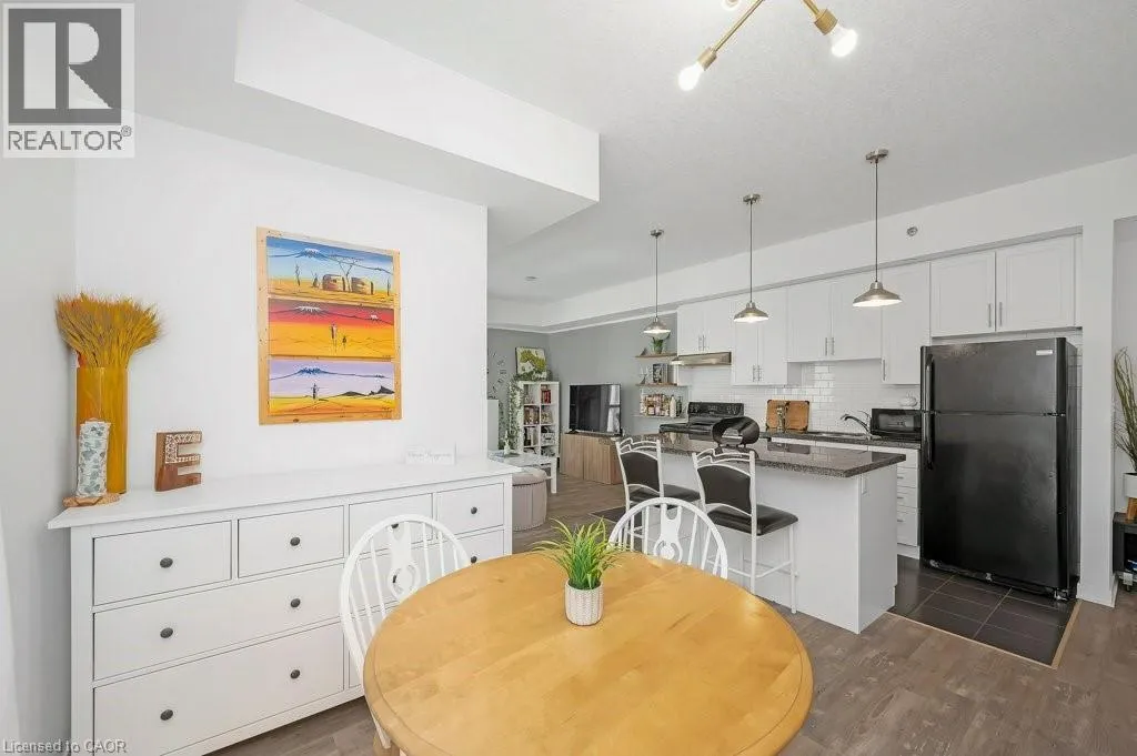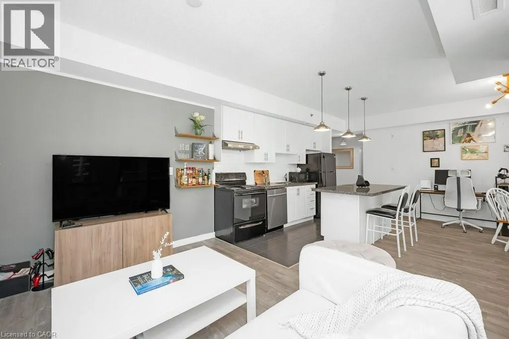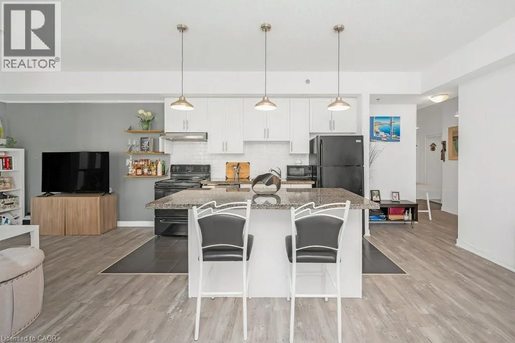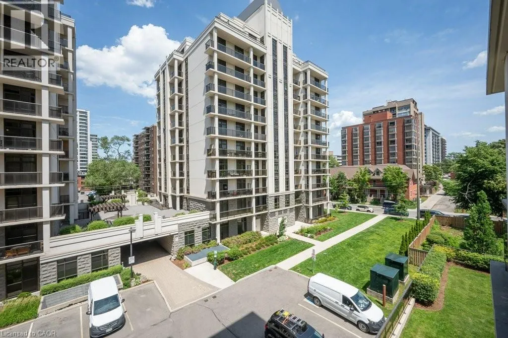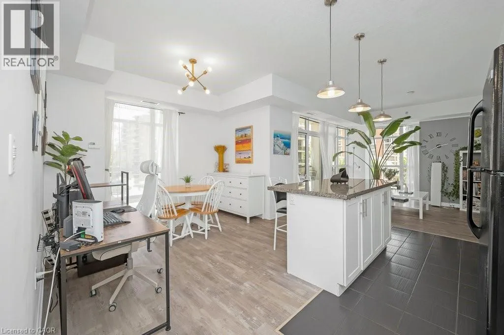 Charlton West of James and Bay Street South Welcome to City Square @ 90 Charlton Ave West, located in one of Hamiltonâs most sought-after neighbourhoods! This bright and stylish 1-bedroom + den corner unit offers 777 sq ft of thoughtfully designed living space with soaring 9'3 ceilings and a functional open-concept layout. Spacious kitchen complete with granite countertops, tile backsplash and large island w/ pendant lighting, perfect for entertaining or relaxing at home. Upgraded laminate and ceramic flooring throughout adds modern flair, while the generously sized bedroom and versatile den offer flexibility for work-from-home or guest space. Step out onto your private 97 sq ft balcony for morning coffee or an evening unwind. Convenience is key with in-suite laundry, a dedicated parking space, storage locker, and access to fantastic building amenities including a party room, fitness centre, and bike storage. Enjoy efficient year-round comfort with eco-friendly geothermal heating and cooling. Just minutes to highway access, GO Station, St. Josephâs Hospital, parks, schools, and all that downtown Hamilton has to offer. Ideal for first-time buyers, professionals, or downsizers. (id:27476)