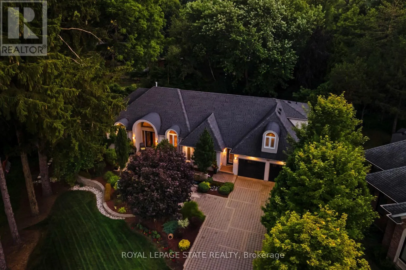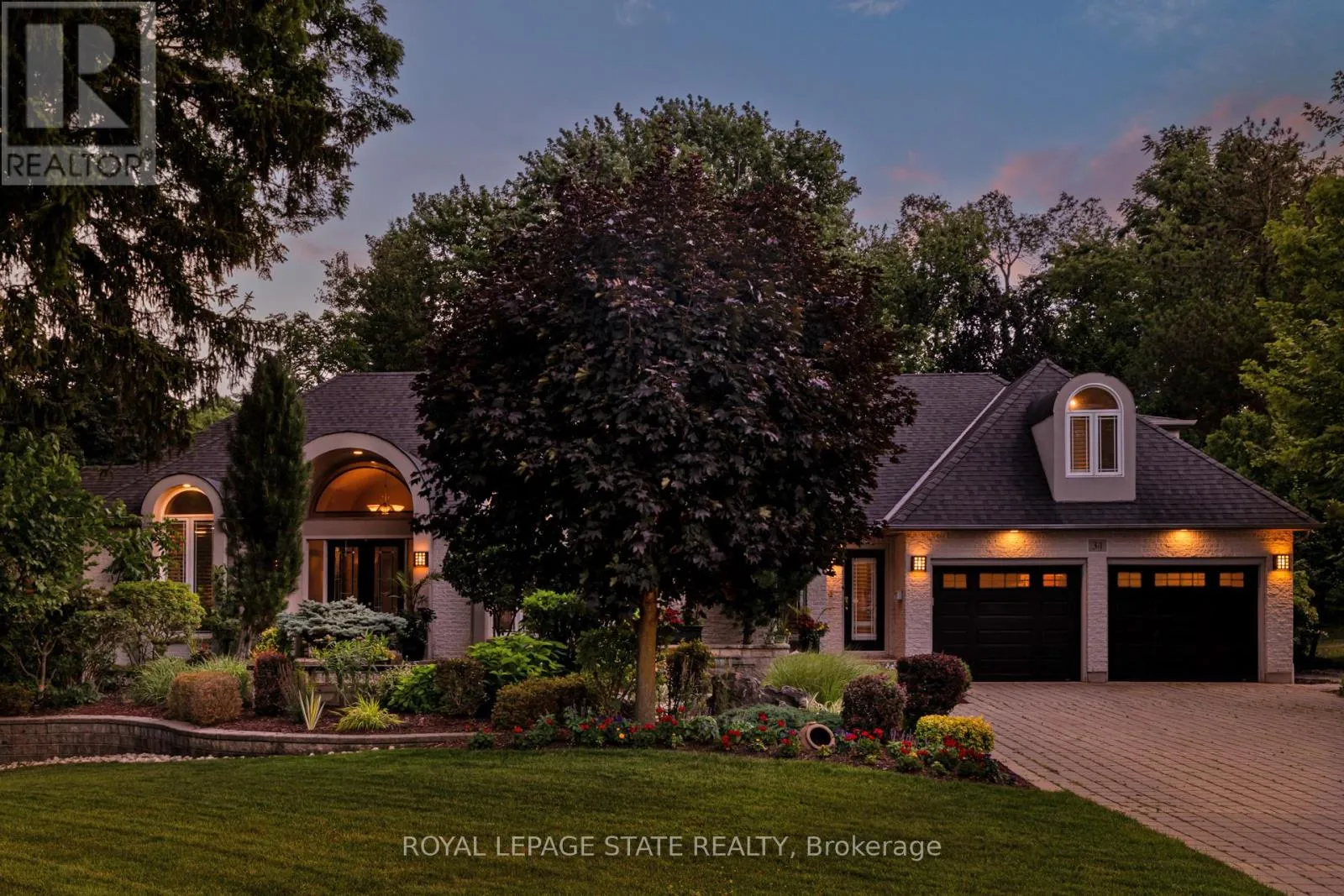 Cross Streets: Lovers Lane. ** Directions: Jerseyville Rd or Sulphur Springs to Lovers Lane - to Harrington Place (Court). Located on a quiet court in Ancaster's prestigious Oakhill neighbourhood, 34 Harrington Place is a one-of-a-kind bungaloft designed for elegant living and unforgettable entertaining. Set on a pie-shaped, nearly half-acre lot with an impressive 217 ft across the rear, this custom-built Atherton home is surrounded by estate properties and award-winning Trillium gardens that elevate the curb appeal and outdoor experience. Boasting almost 5,000 sqft of impeccably finished living space, this home offers 3+1 bedrooms, 4 full baths, and a layout that perfectly blends everyday comfort with timeless sophistication. The main floor features a gourmet eat-in kitchen with custom cabinetry, cathedral ceiling, and access to a covered porch, flowing into a striking 12-ft great room with gas fireplace and floor-to-ceiling windows overlooking the oasis backyard. A formal dining room provides the ideal setting for hosting family gatherings and elegant dinner parties. The luxurious main-floor primary suite includes a cozy gas fireplace, an oversized walk-in dressing room, and a 5-pc spa-inspired ensuite. Also on the main level: a large private office, a full laundry room, and a stylish guest bath with direct outdoor access-perfect for rinsing off after a dip in the custom-designed hot and cold soaker pool spa or post-garden clean-up. Upstairs, two well-appointed bedrooms, a full bath, and a versatile loft area offer space for teens, guests, or a second home office. The bright walk-out basement features a 3-sided gas fireplace, spacious recreation room, kitchenette/bar, 4th bedroom, full spa bath, gym area, and abundant storage-ideal for in-laws or extended family. The backyard is a showstopper: private, lush, and tailored for gatherings large or small. Multiple seating and dining areas, a covered porch, and the signature pool spa create an outdoor sanctuary you'll enjoy in every season. This is more than a home-it's a statement of lifestyle in one of Ancaster's most exclusive enclaves. (id:27476)