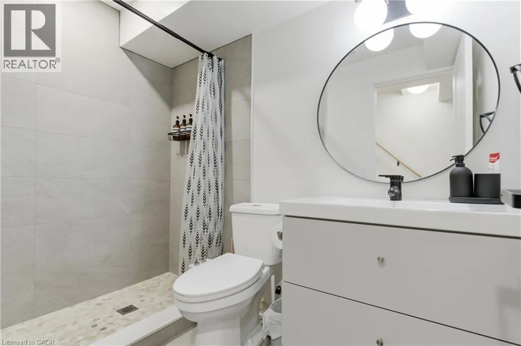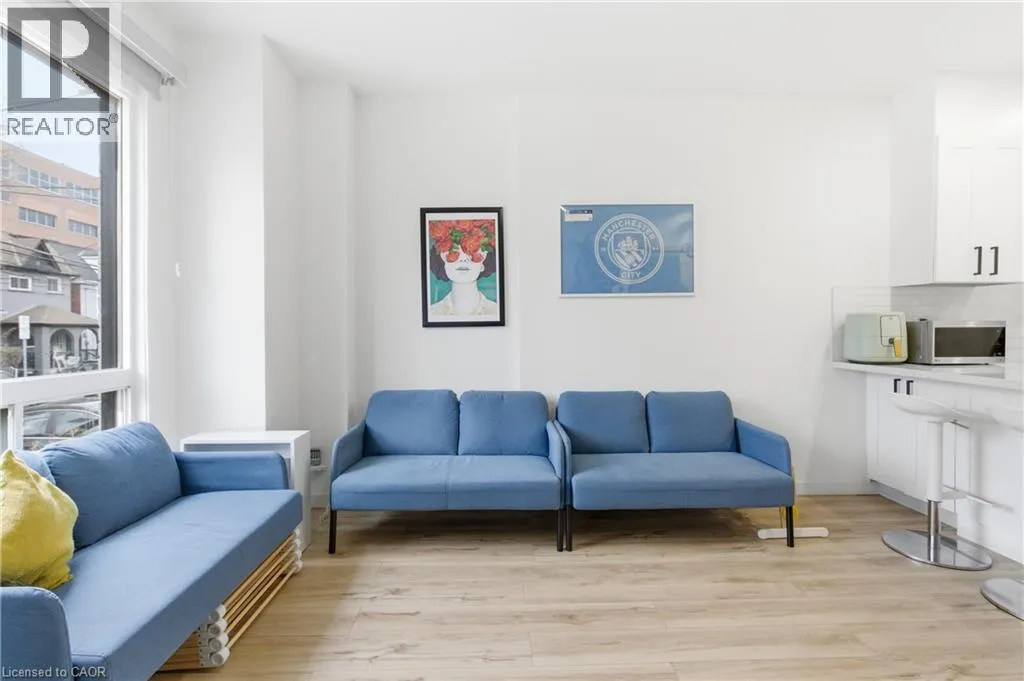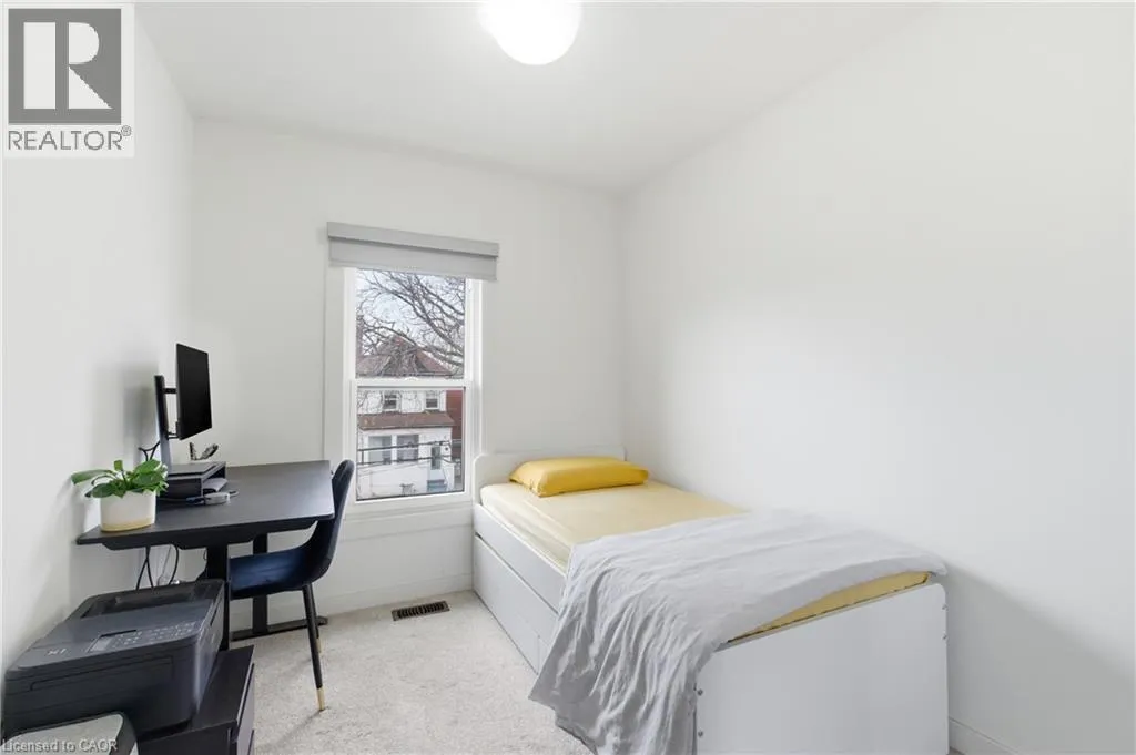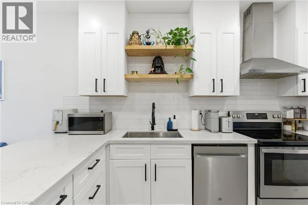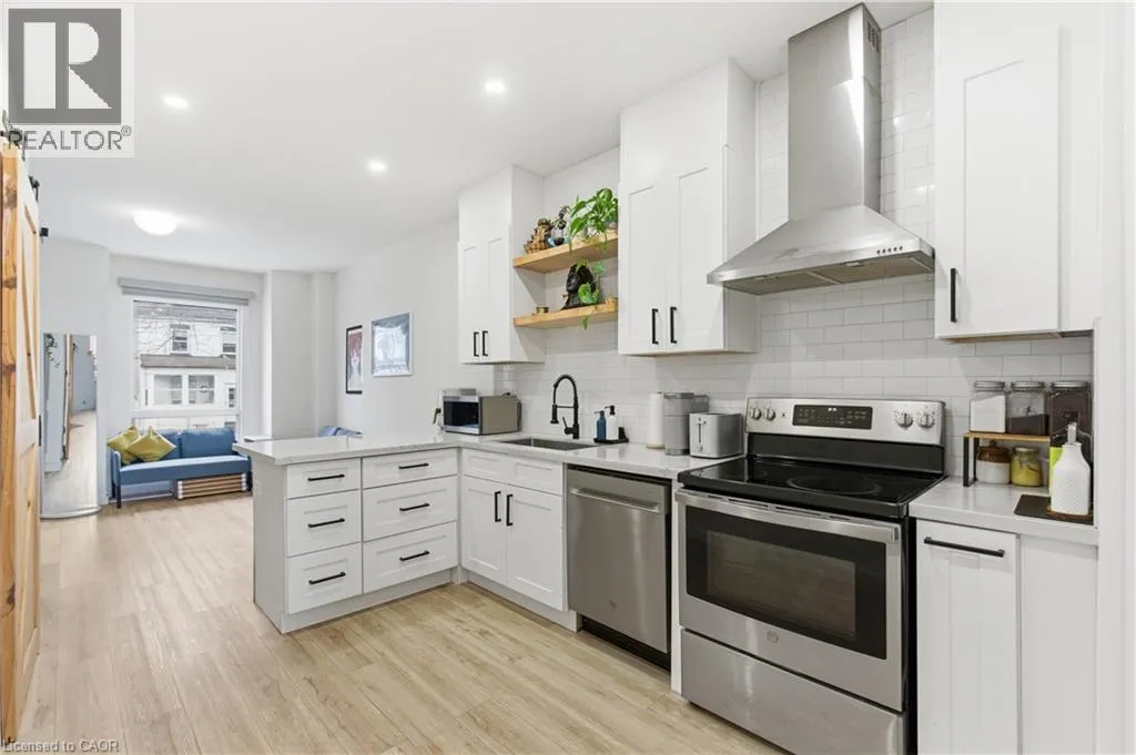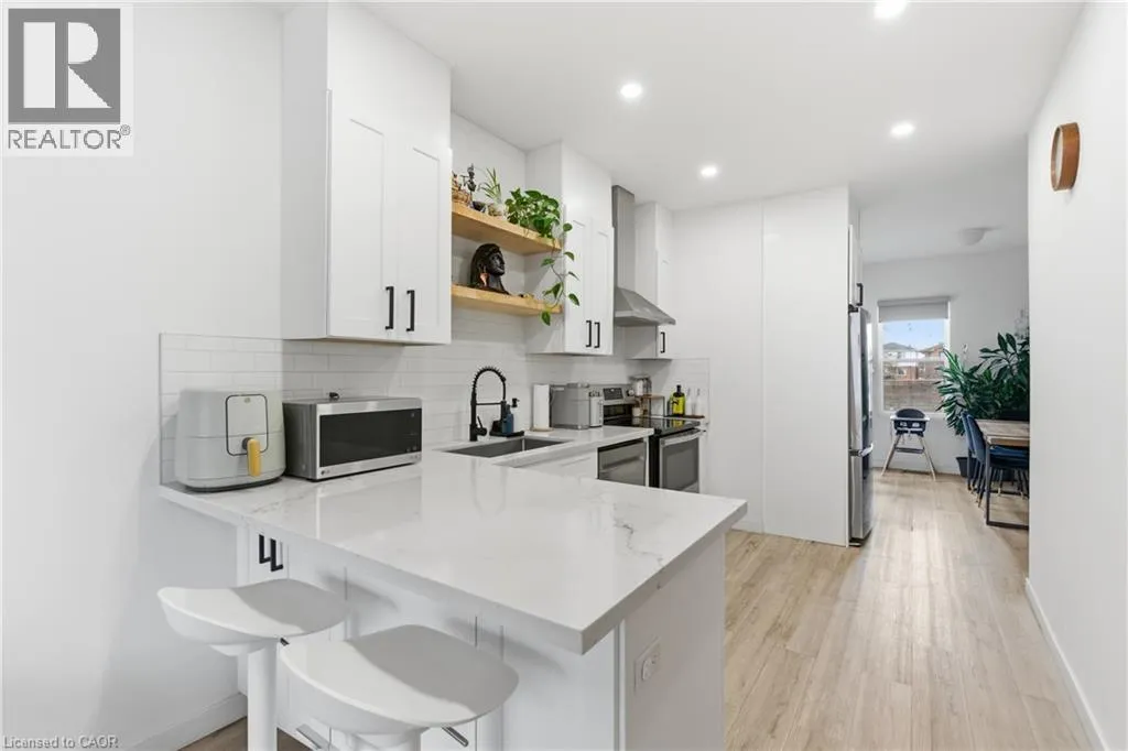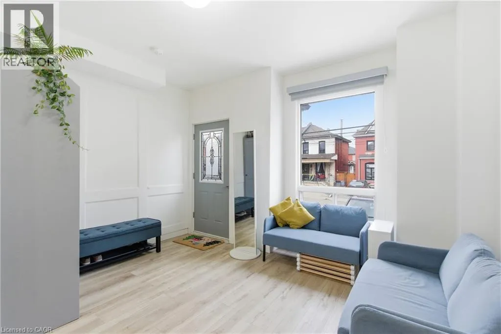 Fullerton and Barton Step into this beautifully updated home offering a bright and modern space perfect for comfortable living. The open-concept main level features a welcoming living area with a large window, a stylish kitchen with white cabinetry, quartz counters, breakfast bar seating, stainless steel appliances, and a sleek tile backsplash. The dining area showcases exposed brick and opens directly to the backyard. Upstairs, youâll find two sunny bedrooms with great closet space and a refreshed 4-piece bathroom. The finished lower level adds a cozy rec room, a full 3- piece bath with a walk-in shower, laundry with LG machines, and an additional den thatâs ideal for storage or a quiet workspace. The fully fenced backyard backs onto Birch Park, offering a peaceful setting and extra privacy. Parking is available at the front, with an additional rear space on a concrete pad. Located close to transit, shopping, schools, and some of Hamiltonâs favourite amenities, this home is ready for its next great tenant. (id:27476)