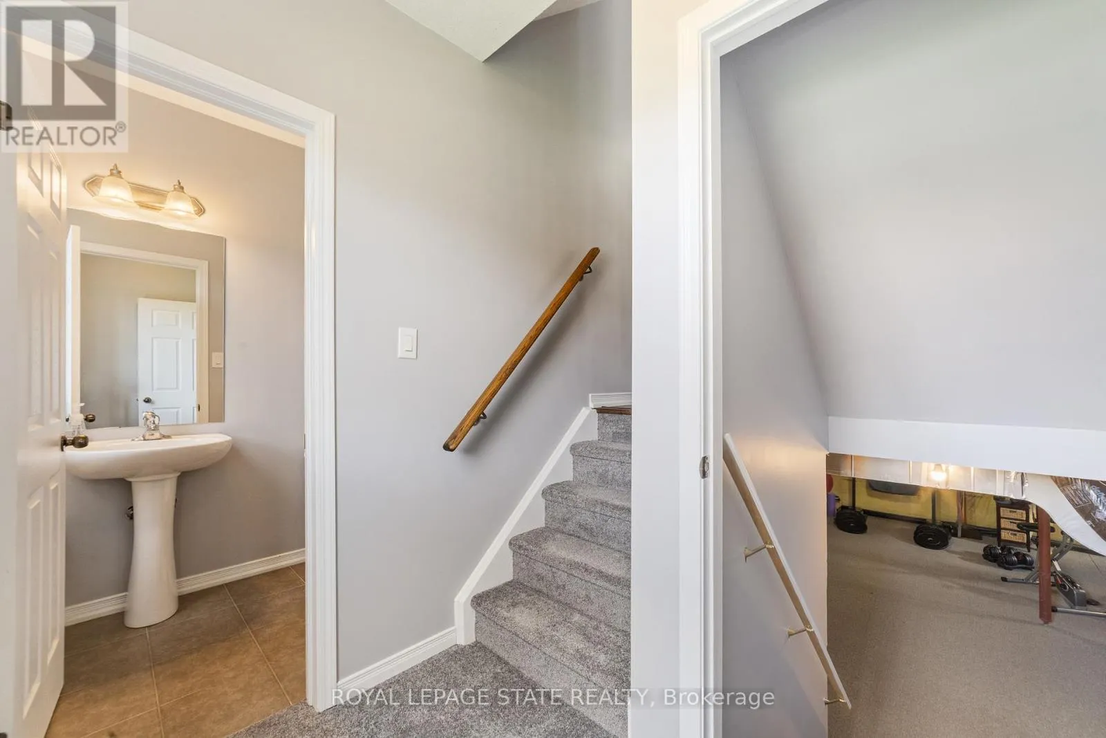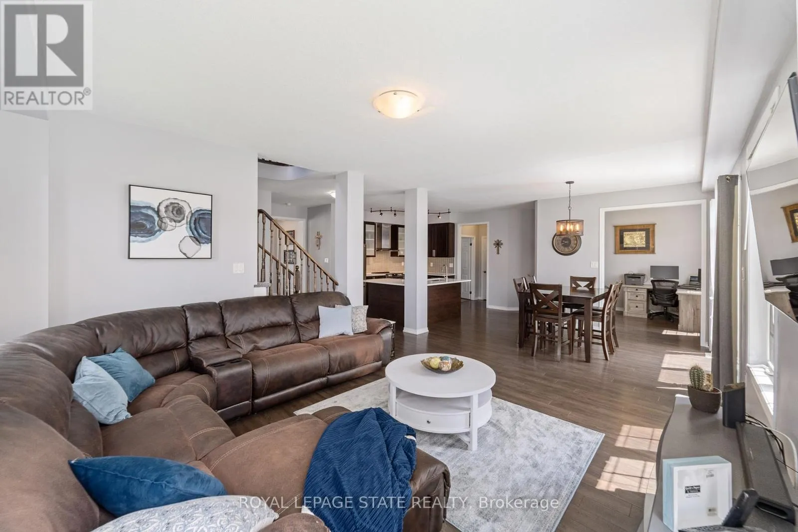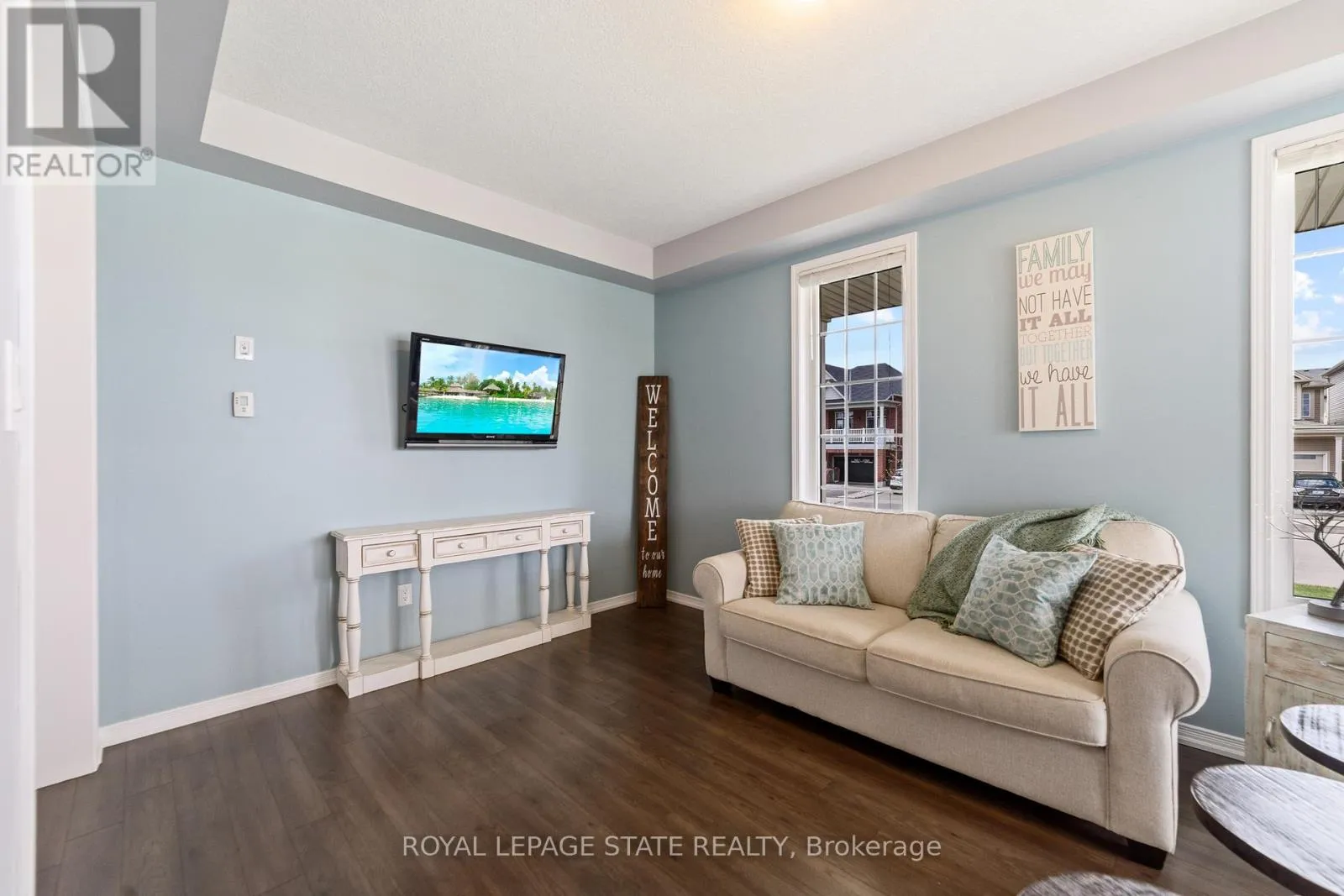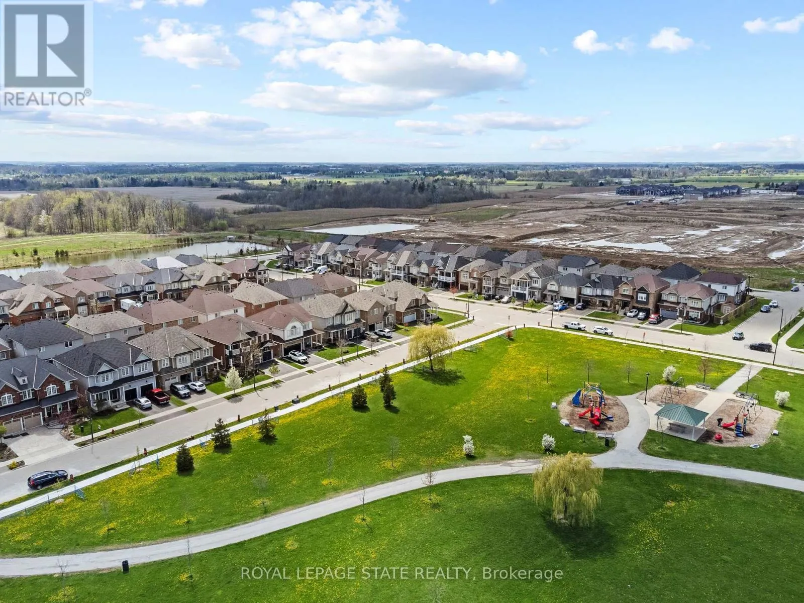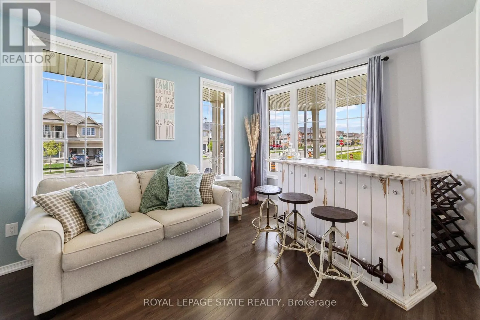 Cross Streets: Binhaven & Tinlin Dr. ** Directions: Binbrook Road to Binhaven to Tinlin. Welcome to this beautifully maintained & charming four-bedroom, three-bathroom home, ideally situated on a spacious corner lot, highlighted by a classic wrap-around porch. From the moment you arrive, the striking double front-door entry sets the tone for the warm & inviting interior. Inside, a bright open-concept main level flows seamlessly, creating a cohesive & functional layout ideal for modern family living. Neutrally painted throughout, the home features stylish laminate flooring across the main level & updated carpet installed in 2025 on the upper floor, adding comfort & continuity throughout. A versatile dining room provides flexibility to serve as a secondary family room or play area, while a dedicated office provides the perfect space for working from home. The heart of the home is the sleek, contemporary kitchen, complete with quartz countertops(2025), a walk-in pantry, & a built-in coffee nook. Large sliding glass doors extend the living space outdoors to a spacious, unspoiled backyard-a blank canvas with endless potential for entertaining or gardening. Interior access to the two-car garage from the kitchen adds everyday convenience. Upstairs, 4 bedrooms feature comfort & privacy for the entire family. The spacious primary bedroom is a true retreat, featuring two walk-in closets & a well-appointed ensuite with a soaker tub, double sinks, & a separate shower. The 1,200+ sq. ft. unfinished bsmt provides outstanding future potential & is already equipped with an entertainment system including a projector, screen, & sound system. Additional valuable features throughout the home include a built in central vacuum, an air exchanger, & a wired-in alarm system, providing both comfort & peace of mind. Ideally located close to schools, parks, & shopping, this exceptional home combines thoughtful upgrades, functional design, & a prime location. This is a fantastic opportunity to own a truly move-in-ready family home in one of the area's most sought-after communities. (id:27476)