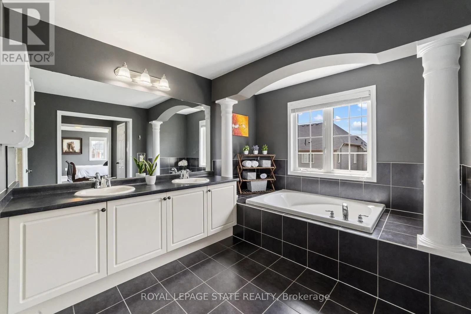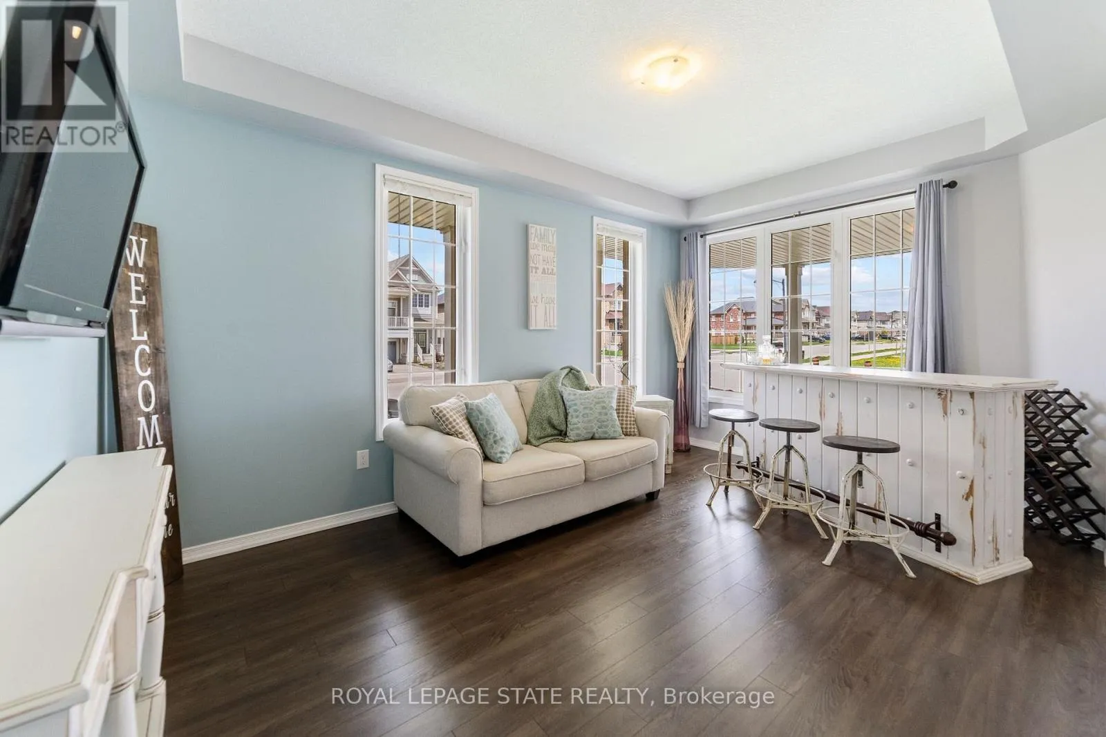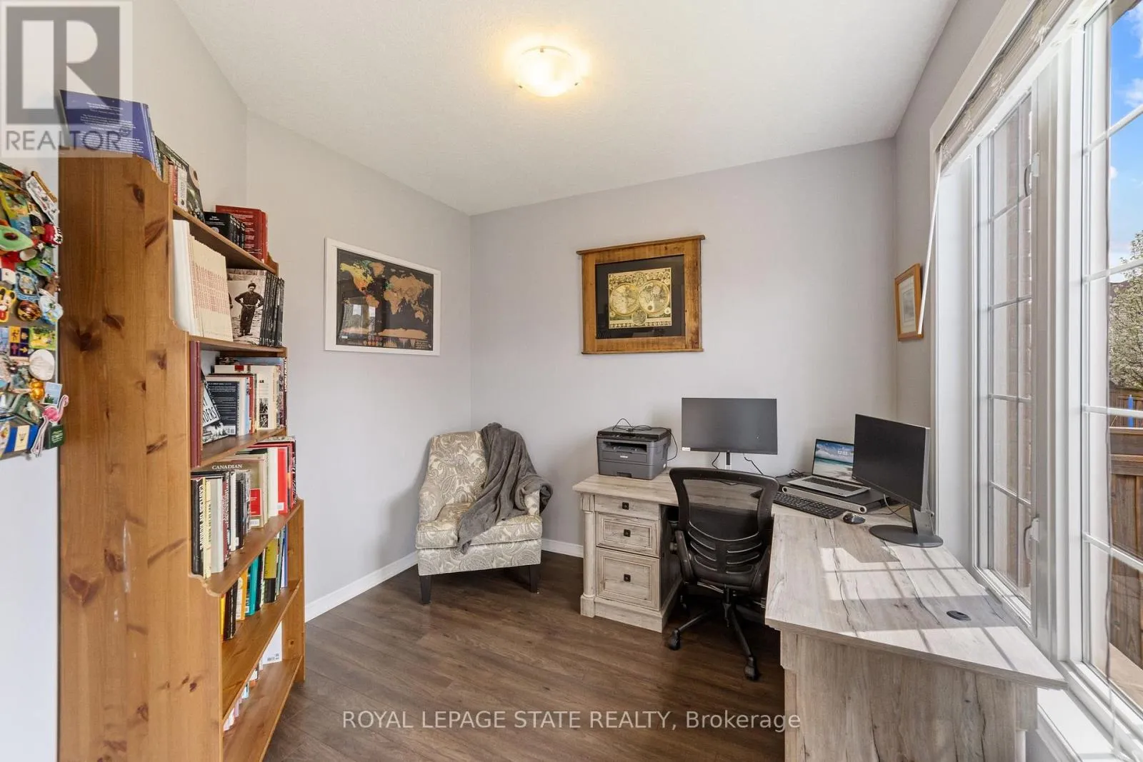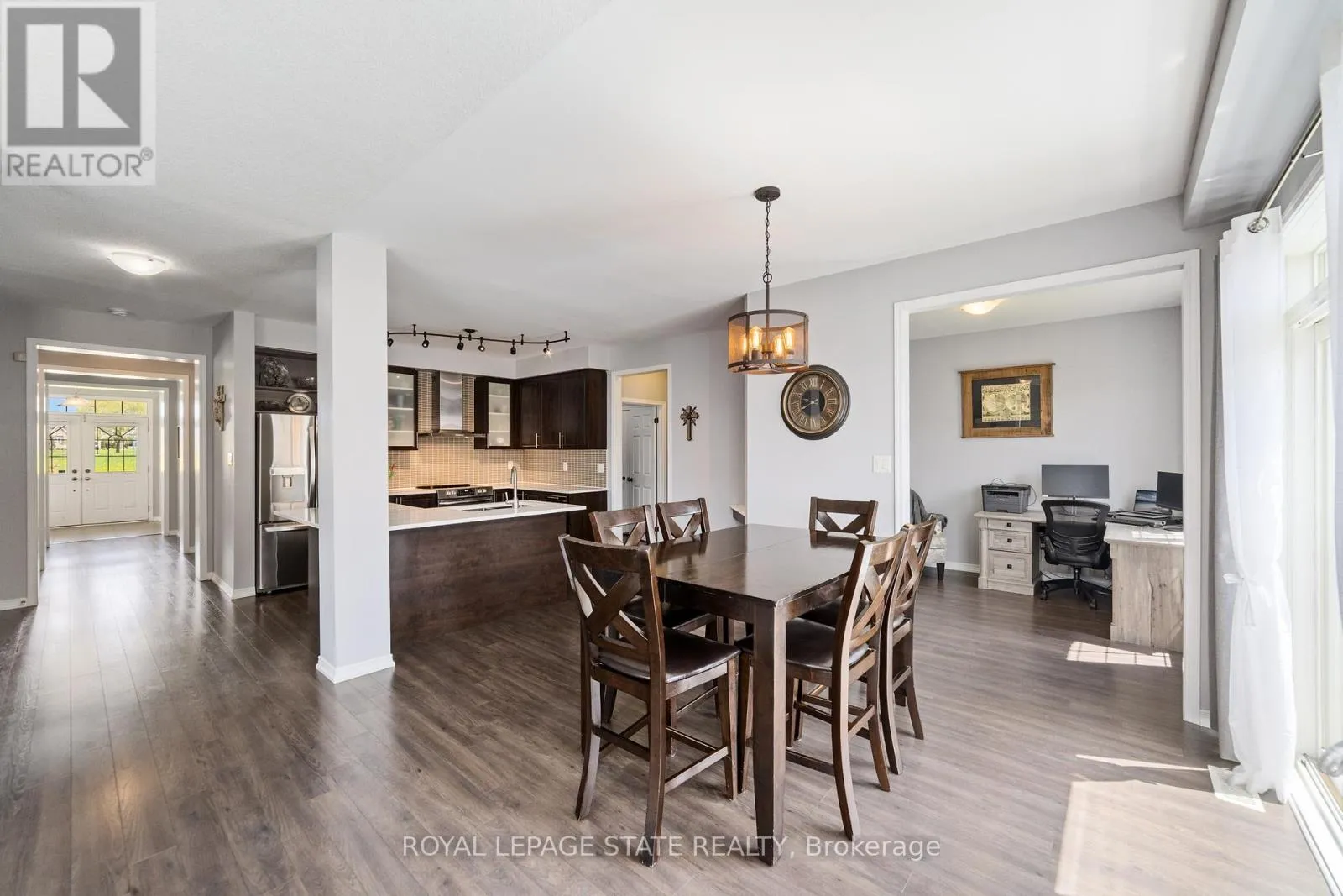 Cross Streets: Binhaven & Tinlin Dr. ** Directions: Binbrook Road to Binhaven to Tinlin. Welcome to this beautifully maintained & charming four-bedroom, three-bathroom home, ideally situated on a spacious corner lot, highlighted by a classic wrap-around porch. From the moment you arrive, the striking double front-door entry sets the tone for the warm & inviting interior. Inside, a bright open-concept main level flows seamlessly, creating a cohesive & functional layout ideal for modern family living. Neutrally painted throughout, the home features stylish laminate flooring across the main level & updated carpet installed in 2025 on the upper floor, adding comfort & continuity throughout. A versatile dining room provides flexibility to serve as a secondary family room or play area, while a dedicated office provides the perfect space for working from home. The heart of the home is the sleek, contemporary kitchen, complete with quartz countertops(2025), a walk-in pantry, & a built-in coffee nook. Large sliding glass doors extend the living space outdoors to a spacious, unspoiled backyard-a blank canvas with endless potential for entertaining or gardening. Interior access to the two-car garage from the kitchen adds everyday convenience. Upstairs, 4 bedrooms feature comfort & privacy for the entire family. The spacious primary bedroom is a true retreat, featuring two walk-in closets & a well-appointed ensuite with a soaker tub, double sinks, & a separate shower. The 1,200+ sq. ft. unfinished bsmt provides outstanding future potential & is already equipped with an entertainment system including a projector, screen, & sound system. Additional valuable features throughout the home include a built in central vacuum, an air exchanger, & a wired-in alarm system, providing both comfort & peace of mind. Ideally located close to schools, parks, & shopping, this exceptional home combines thoughtful upgrades, functional design, & a prime location. This is a fantastic opportunity to own a truly move-in-ready family home in one of the area's most sought-after communities. (id:27476)