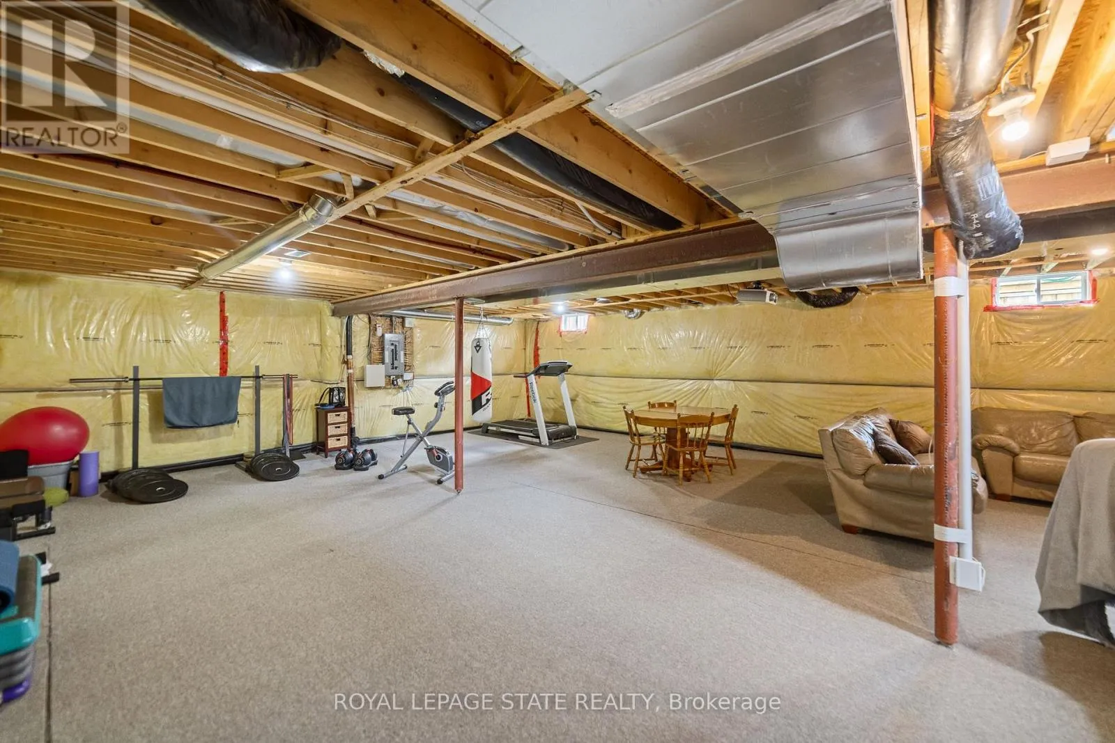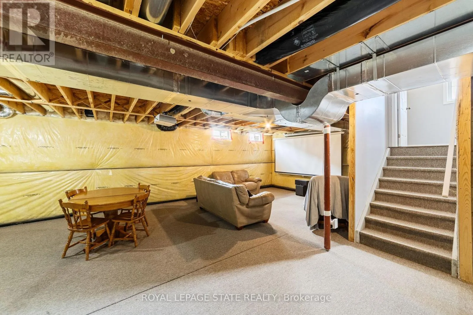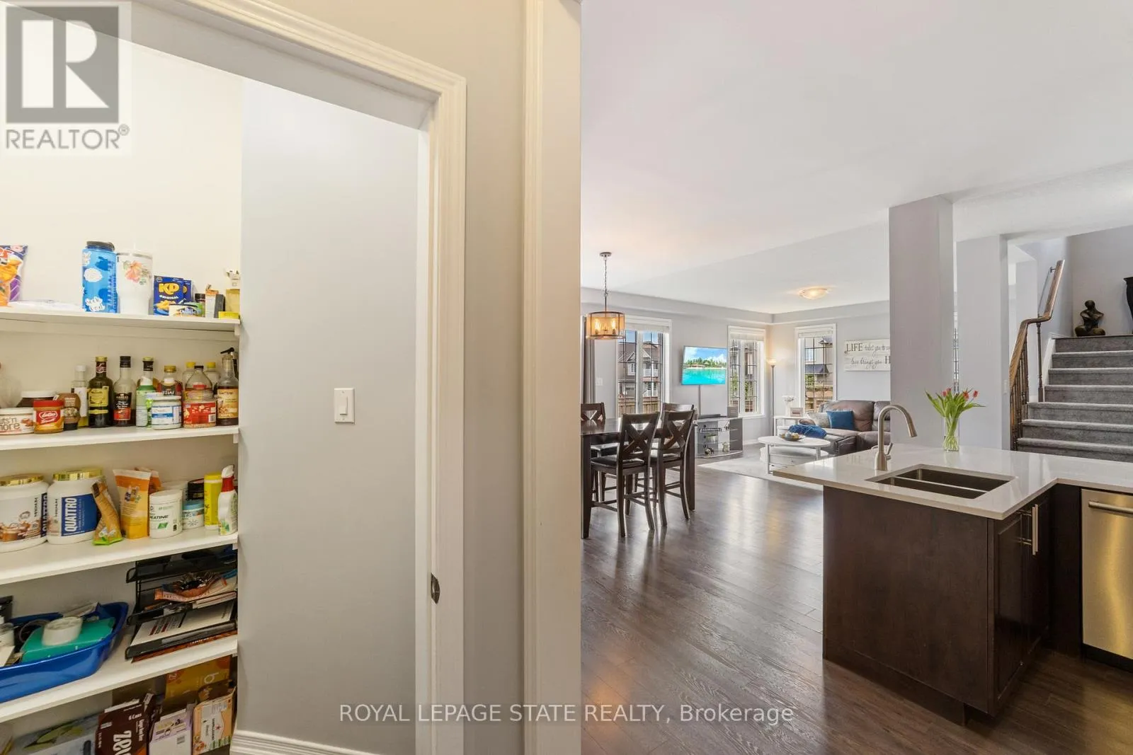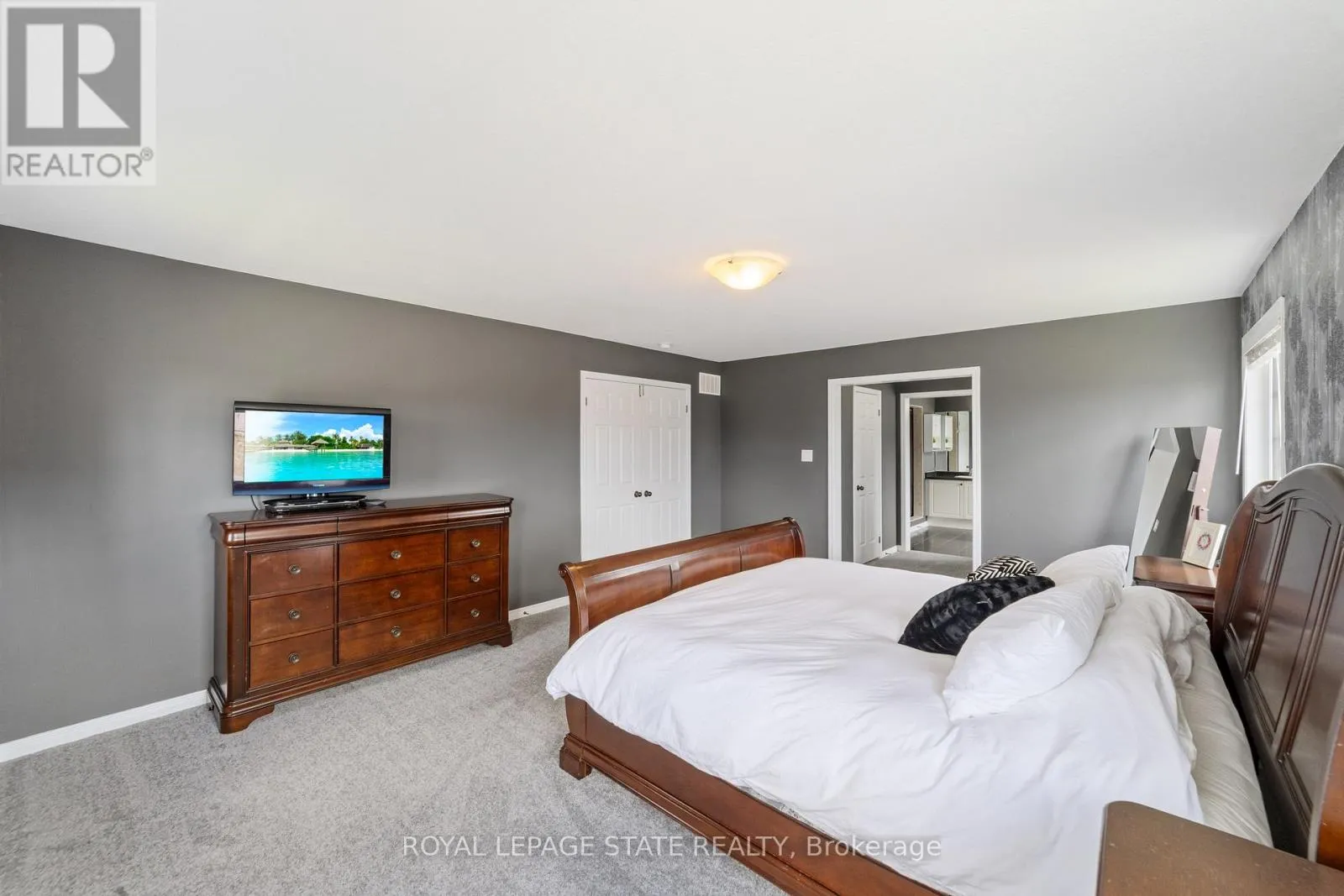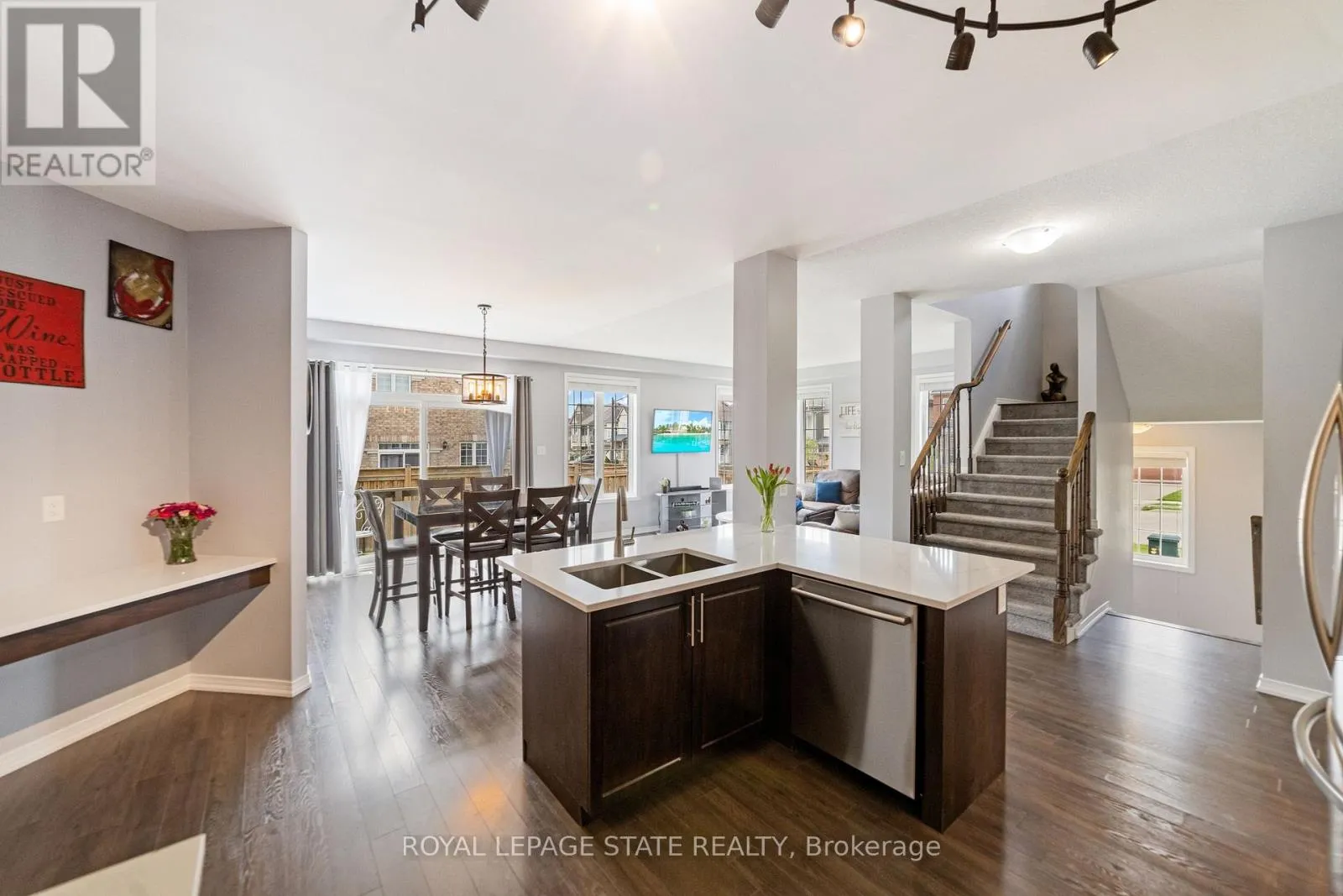Cross Streets: Binhaven & Tinlin Dr. ** Directions: Binbrook Road to Binhaven to Tinlin. Welcome to this beautifully maintained & charming four-bedroom, three-bathroom home, ideally situated on a spacious corner lot, highlighted by a classic wrap-around porch. From the moment you arrive, the striking double front-door entry sets the tone for the warm & inviting interior. Inside, a bright open-concept main level flows seamlessly, creating a cohesive & functional layout ideal for modern family living. Neutrally painted throughout, the home features stylish laminate flooring across the main level & updated carpet installed in 2025 on the upper floor, adding comfort & continuity throughout. A versatile dining room provides flexibility to serve as a secondary family room or play area, while a dedicated office provides the perfect space for working from home. The heart of the home is the sleek, contemporary kitchen, complete with quartz countertops(2025), a walk-in pantry, & a built-in coffee nook. Large sliding glass doors extend the living space outdoors to a spacious, unspoiled backyard-a blank canvas with endless potential for entertaining or gardening. Interior access to the two-car garage from the kitchen adds everyday convenience. Upstairs, 4 bedrooms feature comfort & privacy for the entire family. The spacious primary bedroom is a true retreat, featuring two walk-in closets & a well-appointed ensuite with a soaker tub, double sinks, & a separate shower. The 1,200+ sq. ft. unfinished bsmt provides outstanding future potential & is already equipped with an entertainment system including a projector, screen, & sound system. Additional valuable features throughout the home include a built in central vacuum, an air exchanger, & a wired-in alarm system, providing both comfort & peace of mind. Ideally located close to schools, parks, & shopping, this exceptional home combines thoughtful upgrades, functional design, & a prime location. This is a fantastic opportunity to own a truly move-in-ready family home in one of the area's most sought-after communities. (id:27476)