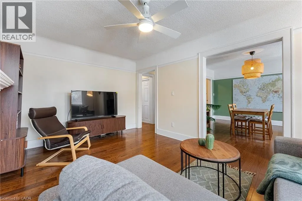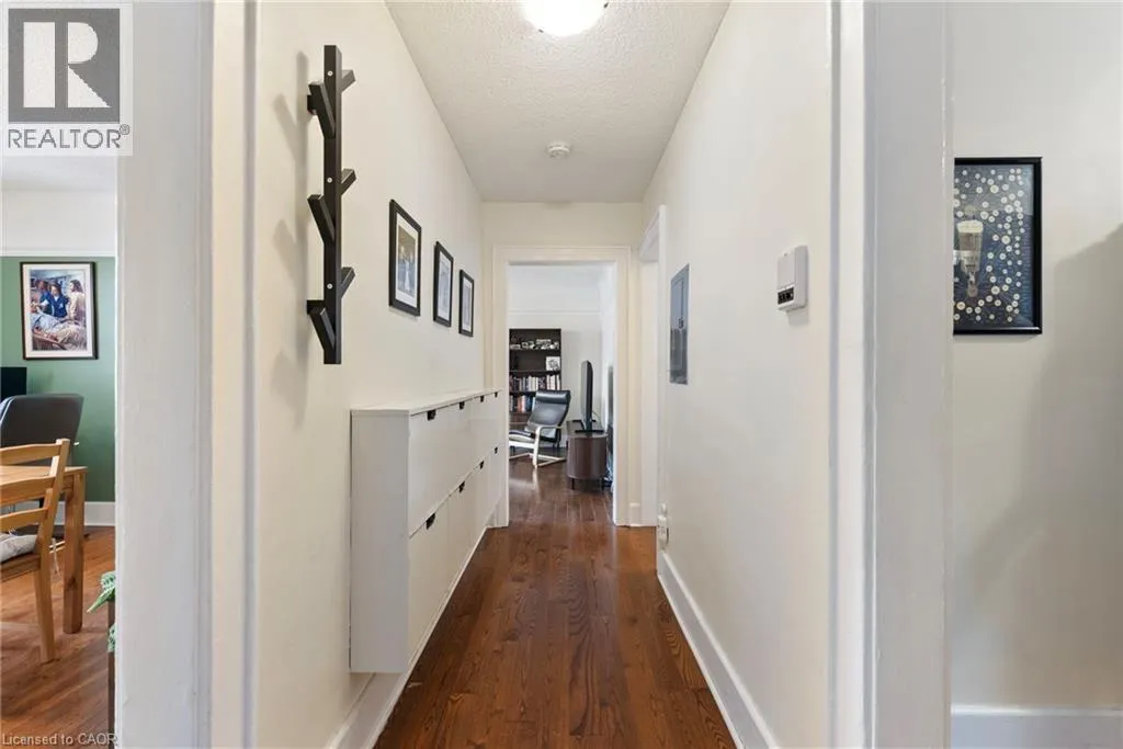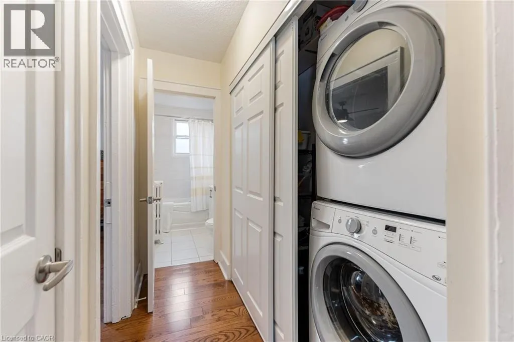 Arkledun Ave to John St S Nestled at the base of the Hamilton Escarpment and within walking distance to St. Josephâs Hospital, this beautifully maintained 1-bedroom, 1-bathroom condo is situated in a prime downtown location and offers 832 sq ft of bright, thoughtfully designed living space. The layout feels warm, inviting, and refreshingly uniqueâthis is not a cookie-cutter apartment. Original character blends seamlessly with modern updates to create a space that truly feels like home. Hardwood floors flow throughout the spacious living and dining area, enhancing the open yet cozy atmosphere. The modern kitchen features stainless steel appliances, updated cabinetry, and a stylish backsplash, offering contemporary convenience while complementing the homeâs charm. Large windows in the living room fill the space with natural light and showcase scenic escarpment views, adding to the comfortable, airy feel. With easy access to downtown Hamiltonâs dining, shopping, and entertainment, this condo delivers the perfect balance of urban lifestyle and everyday comfort. An ideal opportunity for first-time buyers in a prime locationâschedule your showing today. (id:27476)