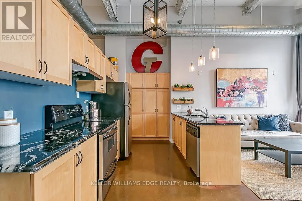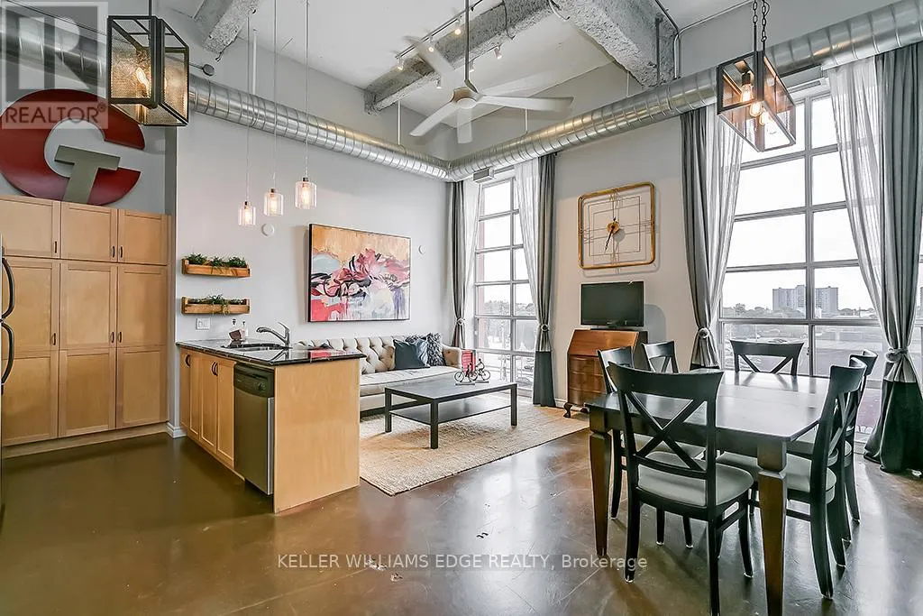Cross Streets: Rebecca St and James St N. ** Directions: 403 Hamilton to Main St E. Left on James St S, which then turns into James St N. Turn right onto Rebecca St. Welcome to the iconic Annex Lofts, one of Hamilton's most sought after boutique condo buildings. This impressive 2 bedroom, 1 bathroom loft delivers true urban living with soaring 14 ft ceilings, polished concrete floors, exposed ductwork, and striking industrial character throughout. The open concept kitchen and living area is flooded with natural light through oversized windows, creating a bright and inviting space that is perfect for everyday living or entertaining. The primary bedroom offers ample closet space and city views, while the generous second bedroom with a large closet works beautifully as a guest room or home office. A 4 piece bathroom and convenient in suite laundry complete the interior, and the unit includes a private owned parking space directly in front of the building, a rare and valuable feature for downtown living. Perfectly positioned just steps from James Street North, King William, and Hamilton's thriving food, arts, and entertainment scene, with easy access to transit, GO Station, shopping, hospitals, and downtown amenities. Whether you are a young professional, urban enthusiast, or savvy investor, this loft delivers on both lifestyle and location in one of the city's most vibrant neighbourhoods. (id:27476)