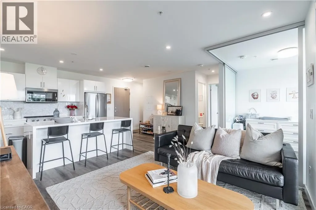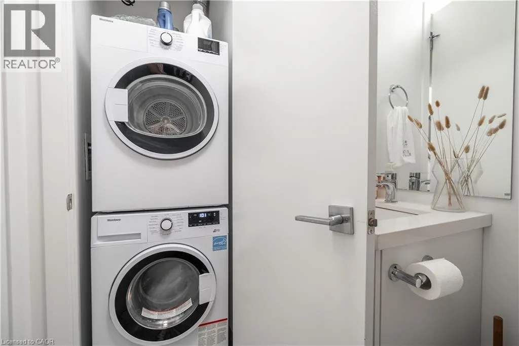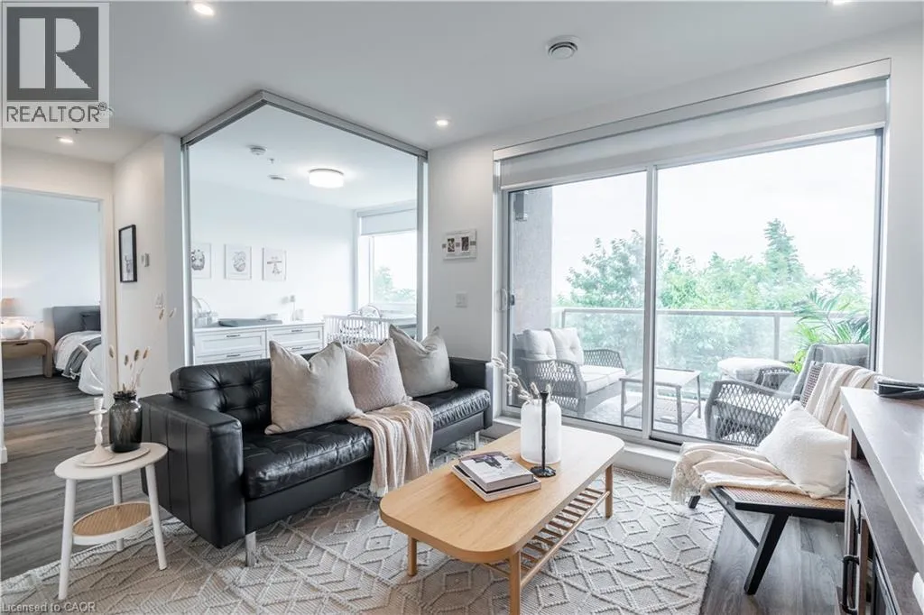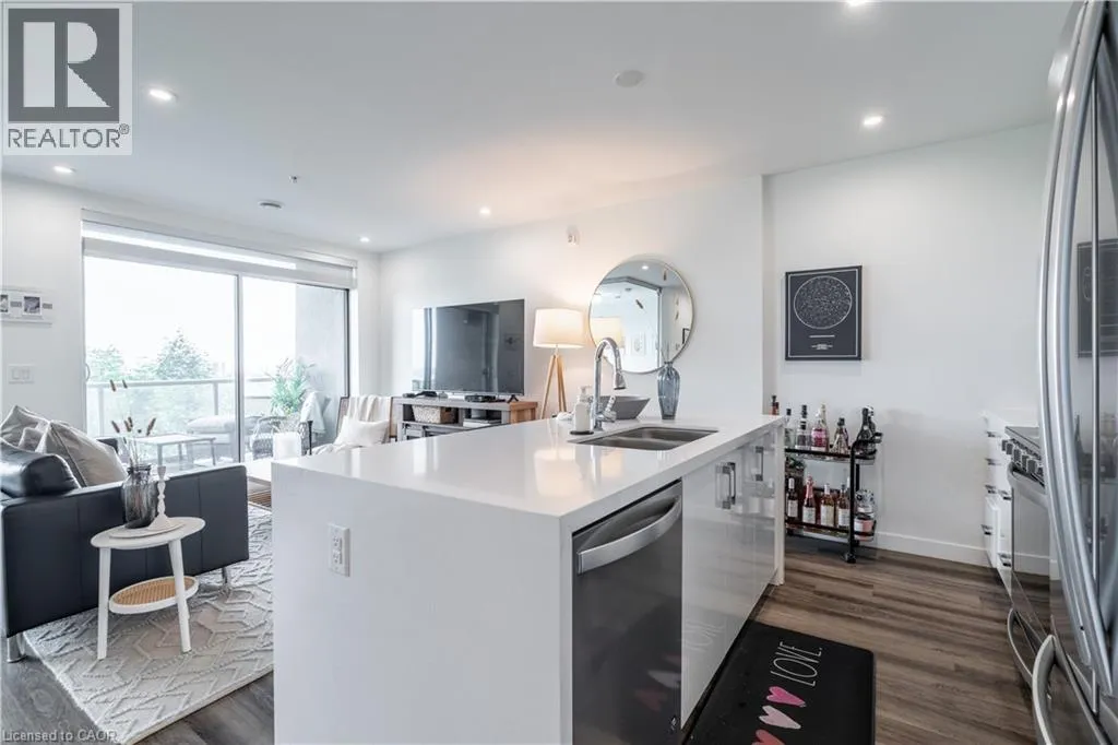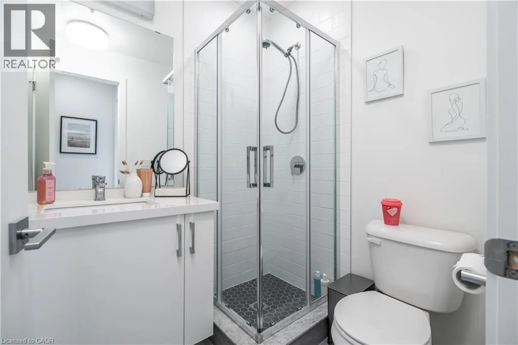 VICTORIA AVE S TO CHARLTON AVE E This beautifully finished âSpruceâ model in Vista 3 Condos offers a well-designed two-bedroom, two-bathroom layout in one of Hamiltonâs most sought-after locations. Nestled in the vibrant Stinson neighbourhood at the base of the escarpment, this unit combines modern comfort with everyday convenience. The open-concept living and dining area is bright and welcoming, anchored by a stylish kitchen featuring a white quartz island with a waterfall edge, stainless steel appliances, and ample cabinetry. Thoughtful upgrades throughout the unit include pot lights, a neutral and timeless colour palette, custom window coverings, durable laminate flooring, and in-suite laundry for added ease. Step out onto the covered balcony and take in sweeping city views, perfect for morning coffee or evening unwinding. The spacious primary bedroom offers a walk-in closet and a private four-piece ensuite, while the second bedroom is ideal for guests, a home office, nursery and more! Residents enjoy access to well-maintained building amenities including a fitness centre, party room, and visitor parking. The unit also comes complete with one underground parking space and a locker. Conveniently located close to major hospitals, public transit, parks, and local amenities, this is a fantastic opportunity to own a turnkey condo in a growing and desirable community! (id:27476)