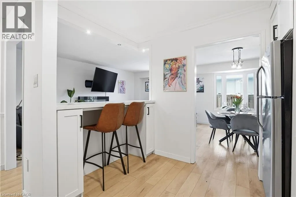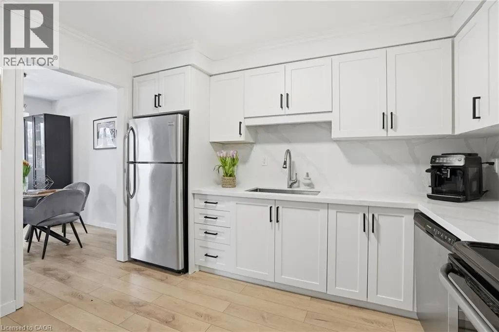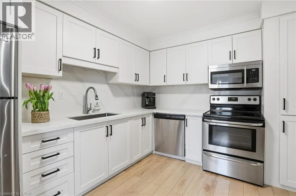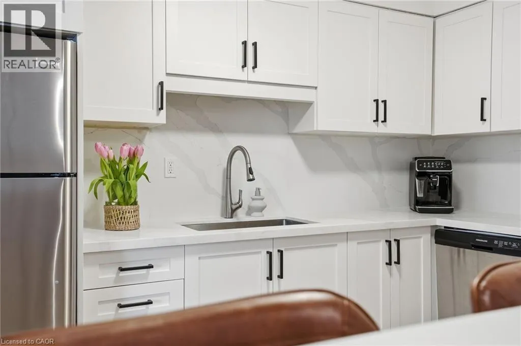 Stone Church Rd East & Upper Wentworth. South of Linc. Location, Location, Location! Quiet yet Close to Schools, Parks, Shopping (Grocery Stores & Limeridge Mall) and the Lincoln Alexander Parkway (Linc) is seconds away for Commuters and to Mountain Accesses. Welcome to Unit #63 at 391 Stone Church Road East on the Hamilton Mountain. Well Maintained 3 Bedrooms, 1.5 Baths Townhome with a Fully Finished Basement and Cozy/Entertaining Backyard. Updated Kitchen (2025) with Quartz Countertops/Backsplash and Custom made Doors as well as Furnace & A/C and Roof. Garage with Inside Entry & Driveway with plenty of Visitor Parking. Pot Lights, Gas Fireplace, Updated Flooring & Glass Stair Railing. Shows Very Well. Condo Fee covers a lot, including Rogers Digital Cable & High Speed Internet, Water, Roof, Windows, Doors and Fence, Landscape and Snow Removal etc. Great Home For Sale in Hamilton and One to Add to your Property Search. RSA. (id:27476)