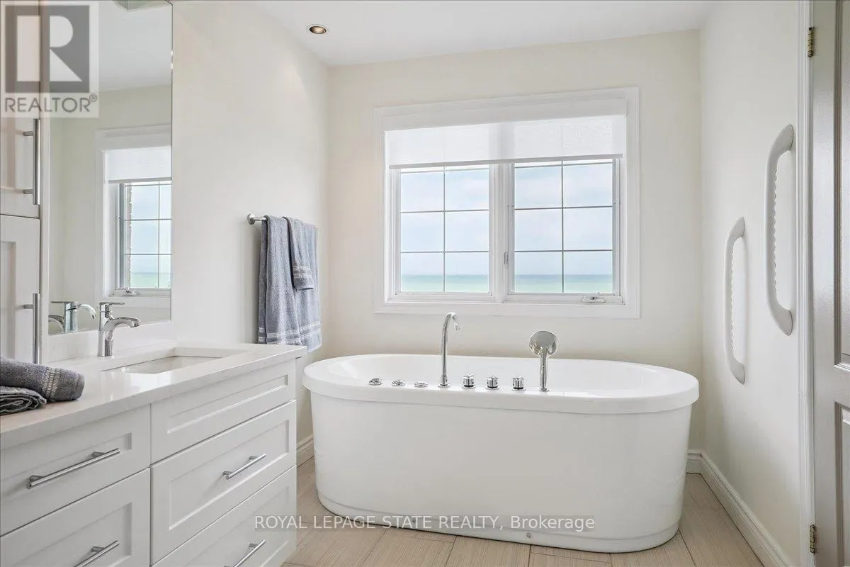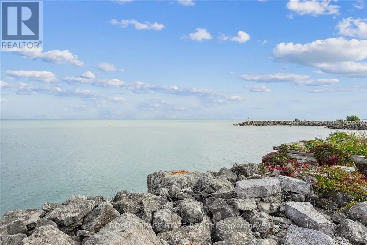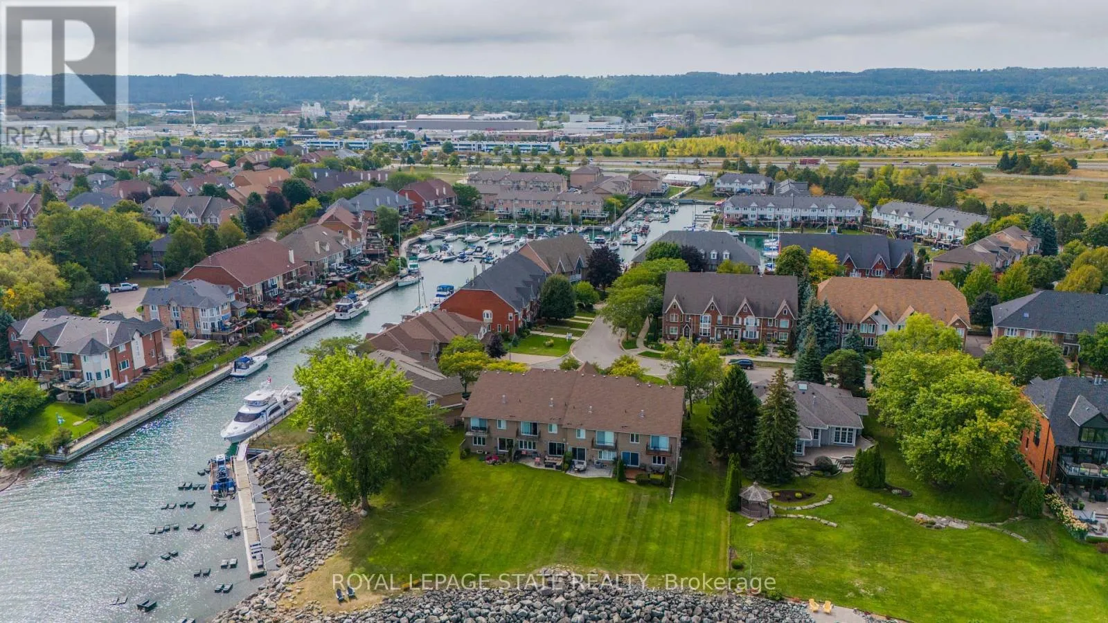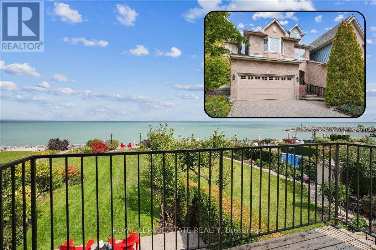 Cross Streets: Fruitland Rd. ** Directions: north on Fruitland Rd - right onto Harbour Dr - left at Edgewater Dr. Experience unparalleled lakefront living with this stunning Newport Yacht Club residence, offering breathtaking views from nearly every room. Perfectly situated for boating enthusiasts with private mooring just steps from your door, yet with effortless QEW access for commuting. This "linked" townhome lives like a detached home, sharing no common walls and features parking for six, including a full double garage. The open concept main level is designed for both style and comfort, boasting an updated kitchen with quartz counters, crown molding, hardwood floors, a gas fireplace, and a separate dining room. Sliding doors lead to an expansive patio and a beautifully landscaped 100-foot yard, flowing to a private waterfront patio, ideal for sunrise coffees or evening sunsets over Lake Ontario. Upstairs, find three generous bedrooms, a home office, bedroom-level laundry, two fully updated bathrooms, and a primary suite with a second gas fireplace and private balcony showcasing panoramic lake and Toronto skyline views. Recent upgrades include new counters, sinks, faucets, roof, furnace, AC, light fixtures, and window treatments. A finished lower level with walk-up access adds versatile living space. Rarely available, this exceptional home offers a true waterfront lifestyle where every day feels like a getaway. (id:27476)