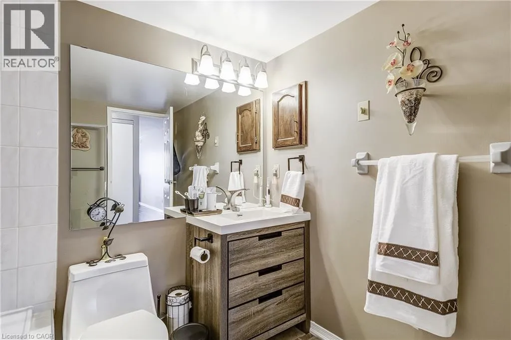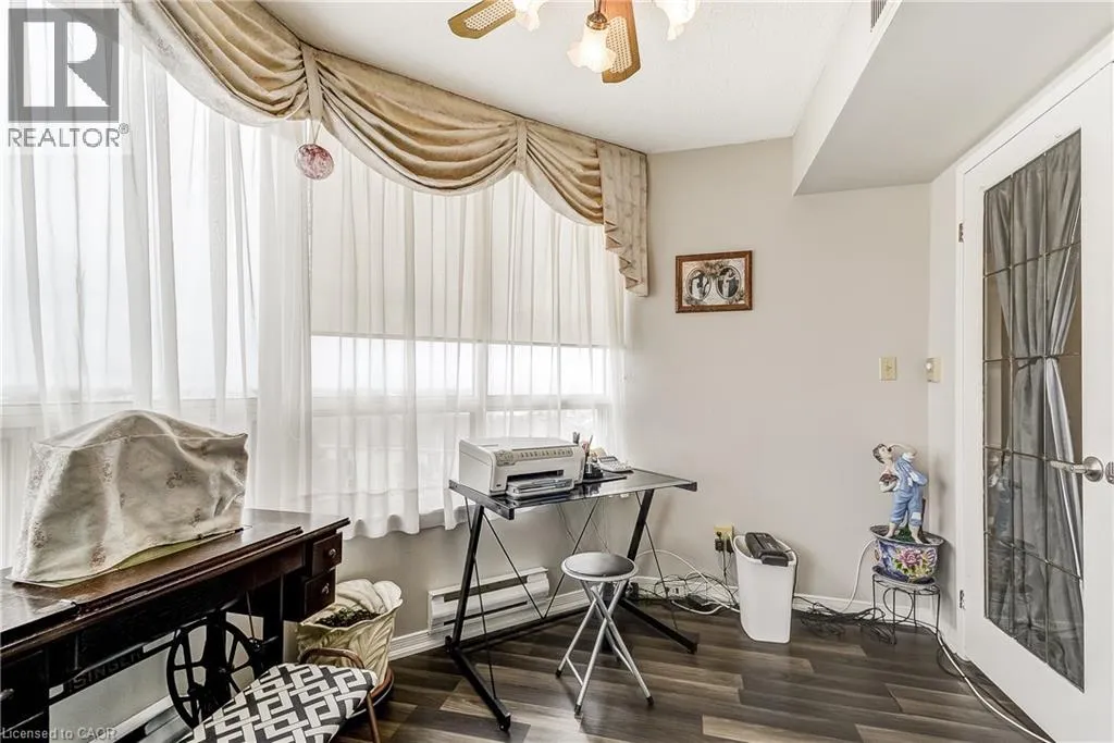 Dewitt & Hwy 8 Welcome to this spacious 2 bed, 2 bathroom condo at The Renaissance in Stoney Creek with stunning north-facing views of Lake Ontario and the Toronto skyline. Large windows provide picturesque views and abundant natural light. Primary bedroom includes a 4-piece ensuite bathroom, and two closets. Through the French doors, enjoy the sunroom, perfect for relaxation or to use as a den/office. Amenities include a party room, library, workshop, shuffleboard/billiards room, squash court, gym, change rooms, and saunas. This unit includes an underground parking spot, a locker for extra storage, and condo fees that COVERS ALL UTILITIES or a worry-free lifestyle. Easy access to shopping, trails, public transit, highways and more! (id:27476)