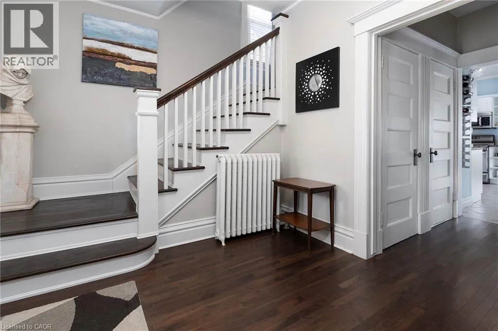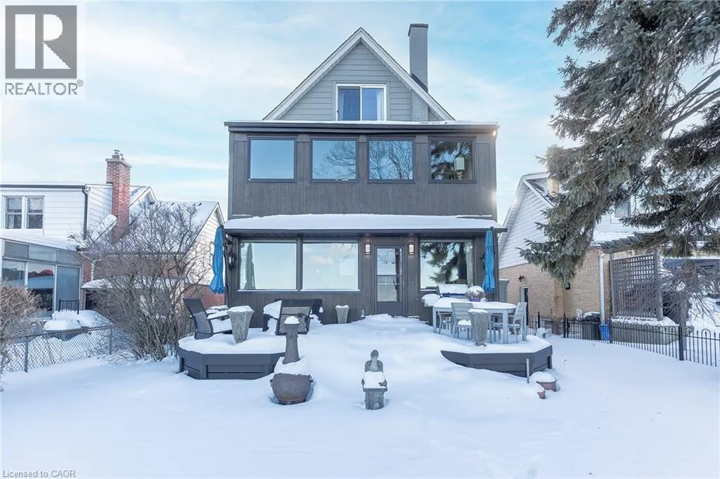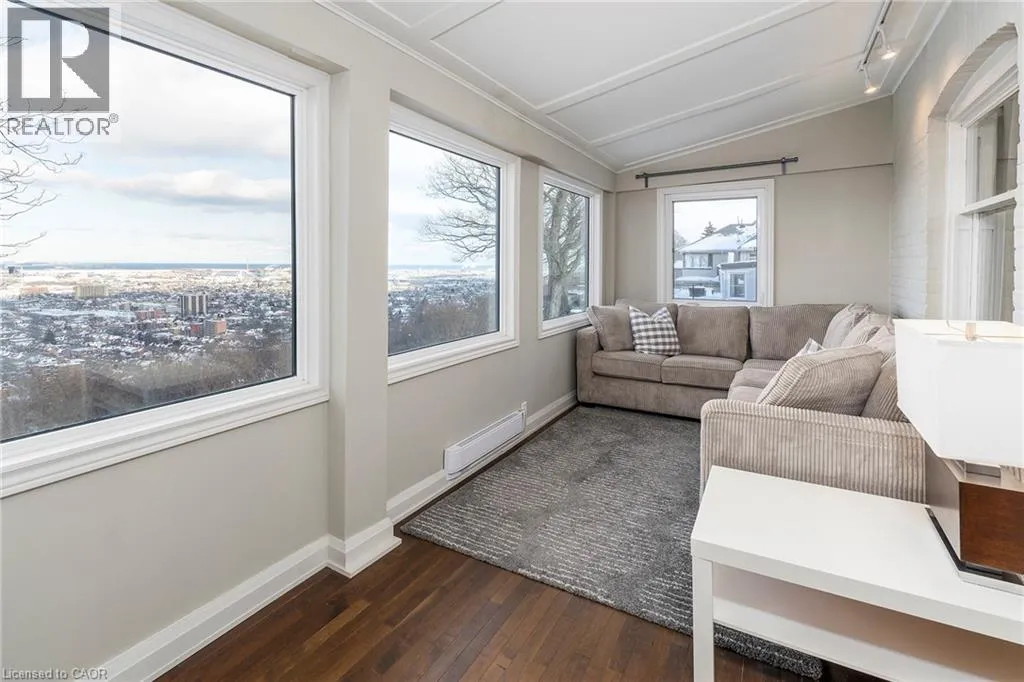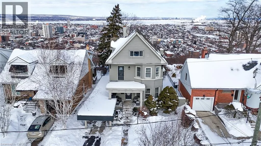 Concession to Belwood, Left onto Mountain Park EXCEPTIONAL CHARACTER, CENTURY HOME WITH EXCEPTIONAL MOUNTAIN TOP PRIVATE VIEWS OF THE CITY AND BEYOND. This AMAZING well maintained home sits at the brim of Hamilton Escarpment, with breathtaking views right out to Lake Ontario including magical sunsets, twinkling stars and the lights of the city from your home. Enjoy morning coffee or evening wine on the large covered porch. Prepare to be wowed when you step inside with the charm and character of this 1896 CIRCA home with all the right updates & conveniences to make it the perfect family home. This home exudes character and elegance with black walnut floors, wood beam ceilings, original banisters, tall baseboards, stained glass and beautiful door trim just to name a few. The main flr offers a Liv Rm w/bay window & FP open to the Din Rm which allows plenty of space for family gatherings or entertaining. The Kitch boasts S/S appliances, plenty of timeless white cabinets and counter space. This floor is complete with a sitting rm w/FP overlooking the breathtaking views & W/O to the backyard, a 3 pce bath and a mud rm with access from your covered parking. Upstairs offers 3 spacious beds, 4 pce bath & a beautiful den/liv rm combo overlooking the city and Lake Ontario. The front bedrm offers a bay window w/great views. The bath will make you feel like you are at the spa everyday with a soaker tub, double sinks and elegant lighting. BONUS 3rd flr could make a perfect master retreat, or an inspiring extra living for hobbies. Outstanding views here again, another 4 pce bath and a kitchenette make it perfect for adult children still at home or in-laws needing their own space. The backyard offers plenty of space to entertain and is another perfect place to enjoy all the views this home has to offer!!! This home checks ALL THE BOXES. It is located in a 10+ neighbourhood, on this exclusive Hamilton brow street, close to all conveniences, great walking. Inspiration, elegance & charm, all in one. MUST SEE!!!!! (id:27476)