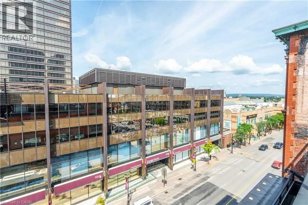 On James Street N just up from King Street Pristine office space available at the prestigious King James Building! This one-of-a-kind suite offers 2,800 square feet with soaring 16' hammered-tin ceilings, floor-to-ceiling arched windows, glass-enclosed boardroom, kitchen, in-suite washrooms (including one fully-AODA compliant), storage closets, exposed ductwork, post-and-beam construction, multiple glass-enclosed, private offices, and access to the fifth floor common area terrace! Serviced by a fob-secured elevator that opens directly into the suite, this newly-available office suite is one of the most sought-after units in city. The building itself has been completely redeveloped by Core Urban; known for their brilliant combination of preserved heritage features and character with modern features and building systems. Located in the heart of downtown Hamilton, this suite is literal steps away from the major banks, City Hall, the court houses, McMaster University's downtown campus, the James North Arts district, Jackson Square, the King William restaurant district, and so much more! Immediately available. (id:27476)