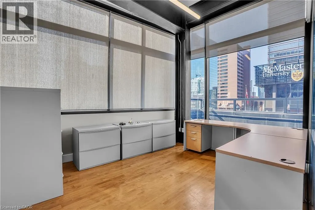 On James Street N just up from King Street Stunning and functional office space available at the prestigious King James Building! This impeccable suite offers 2,500 square feet of tastefully restored and renovated space, six private offices, private balcony, glass-enclosed boardroom, kitchen, in-suite washrooms (including one fully-AODA compliant), storage closets, exposed ductwork, post-and-beam construction, and access to the fifth floor common area terrace! Serviced by a fob-secured elevator that opens directly into the suite, this newly-available office is prodigious and practical. The building itself has been completely redeveloped by Core Urban; known for their brilliant combination of preserved heritage features and character with modern features and building systems. Located in the heart of downtown Hamilton, this suite is literal steps away from the major banks, City Hall, the court houses, McMaster University's downtown campus, the James North Arts district, Jackson Square, the King William restaurant district, and so much more! Available March 1 2026. (id:27476)