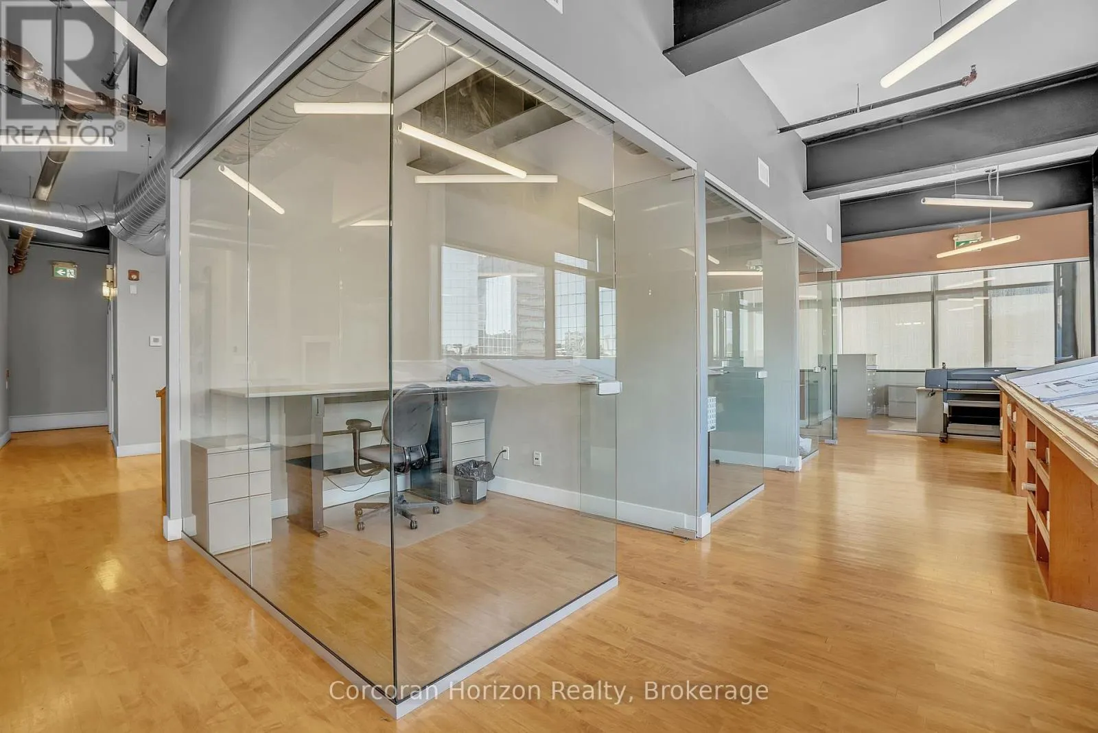 Cross Streets: James St N/King St E. ** Directions: On James Street N just up from King Street. Stunning and functional office space available at the prestigious King James Building! This impeccable suite offers 2,500 square feet of tastefully restored and renovated space, six private offices, private balcony, glass-enclosed boardroom, kitchen, in-suite washrooms (including one fully-AODA compliant), storage closets, exposed ductwork, post-and-beam construction, and access to the fifth floor common area terrace! Serviced by a fob-secured elevator that opens directly into the suite, this newly-available office is prodigious and practical. The building itself has been completely redeveloped by Core Urban; known for their brilliant combination of preserved heritage features and character with modern features and building systems. Located in the heart of downtown Hamilton, this suite is literal steps away from the major banks, City Hall, the court houses, McMaster University's downtown campus, the James North Arts district, Jackson Square, the King William restaurant district, and so much more! Available March 1 2026. (id:27476)