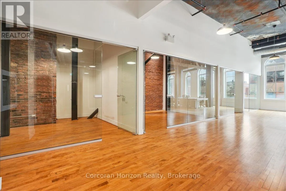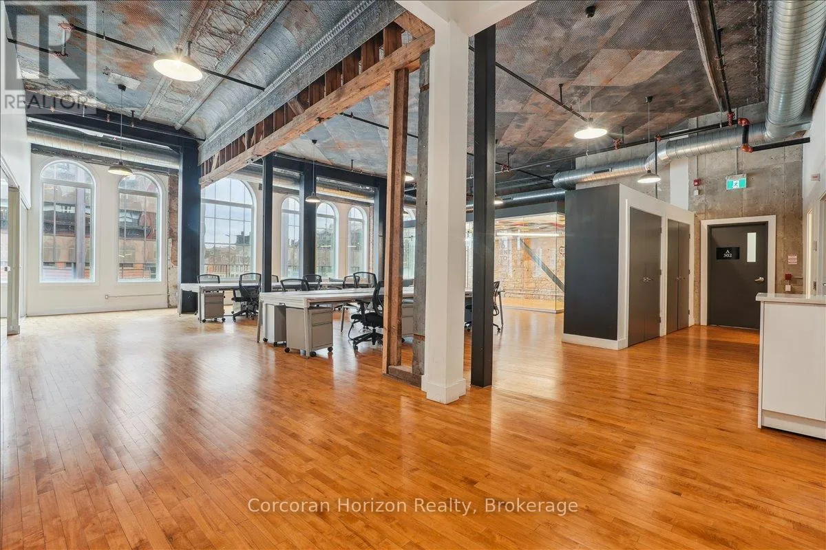 Cross Streets: James St N/King St E. ** Directions: NE corner of King and James. Pristine office space available at the prestigious King James Building! This one-of-a-kind suite offers 2,800 square feet with soaring 16' hammered-tin ceilings, floor-to-ceiling arched windows, glass-enclosed boardroom, kitchen, in-suite washrooms (including one fully-AODA compliant), storage closets, exposed ductwork, post-and-beam construction, multiple glass-enclosed, private offices, and access to the fifth floor common area terrace! Serviced by a fob-secured elevator that opens directly into the suite, this newly-available office suite is one of the most sought-after units in city. The building itself has been completely redeveloped by Core Urban; known for their brilliant combination of preserved heritage features and character with modern features and building systems. Located in the heart of downtown Hamilton, this suite is literal steps away from the major banks, City Hall, the court houses, McMaster University's downtown campus, the James North Arts district, Jackson Square, the King William restaurant district, and so much more! Immediately available. (id:27476)